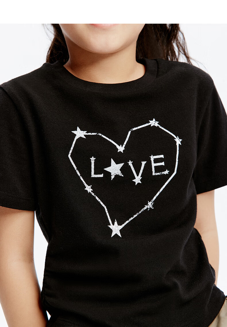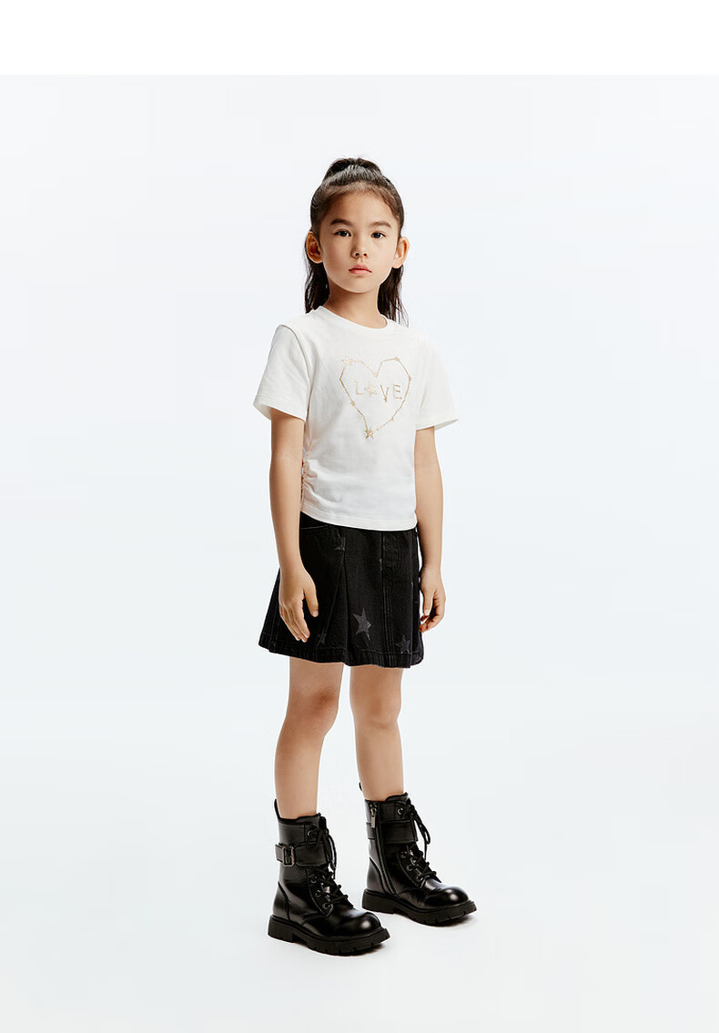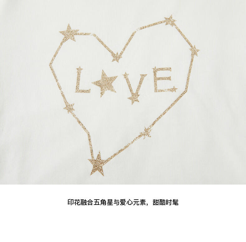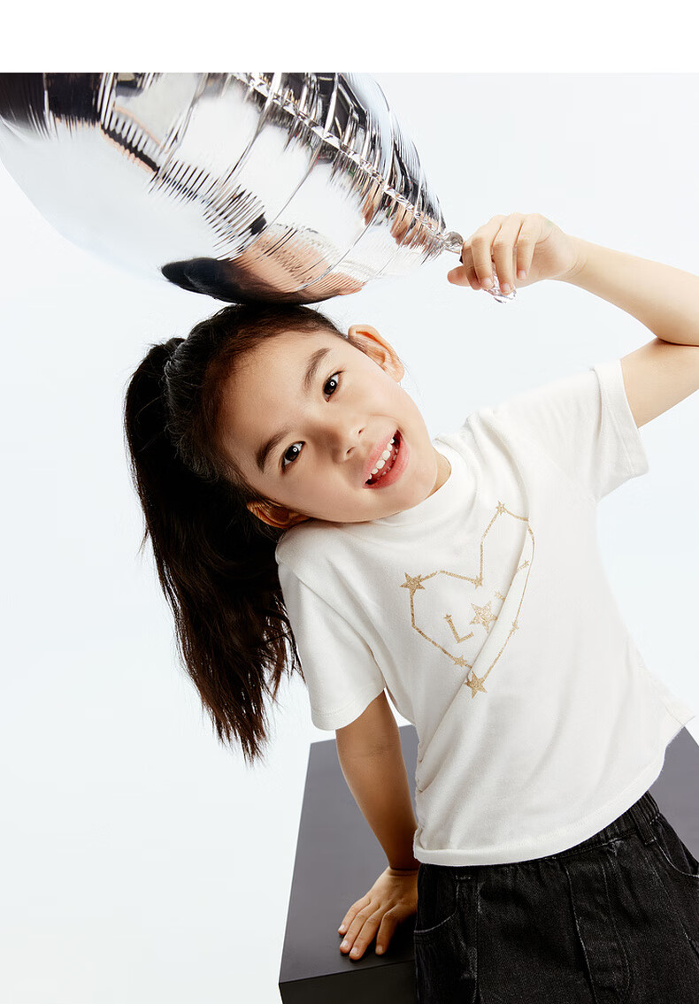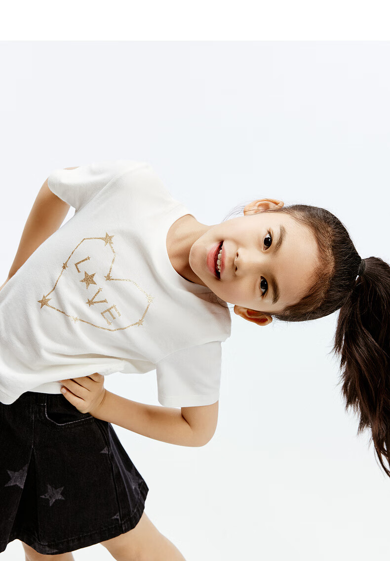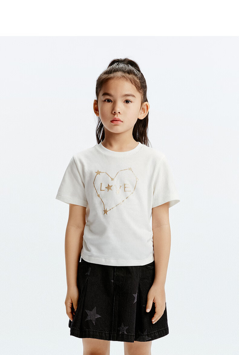 Little MO&Co. antibacterial children's clothing autumn new style girls love series simple elastic short-sleeved T-shirt white 110 110/56