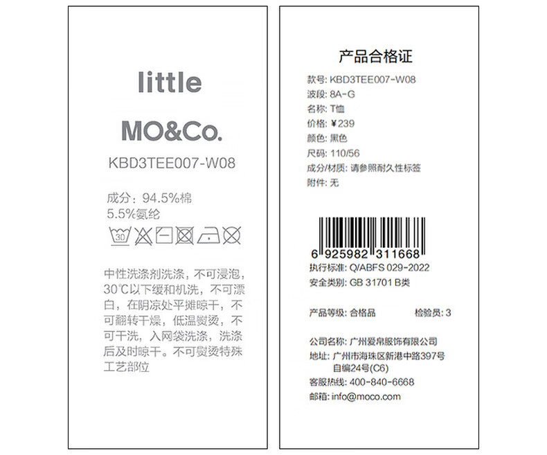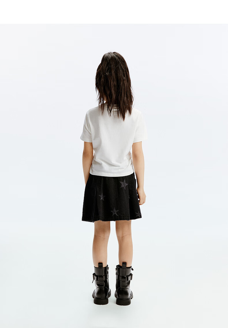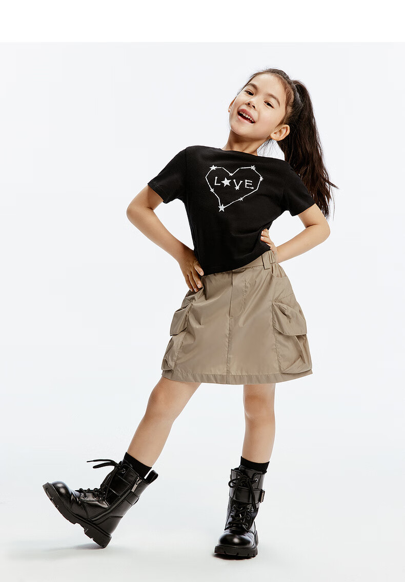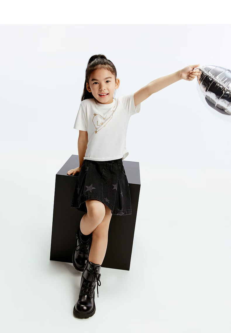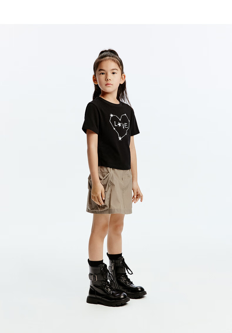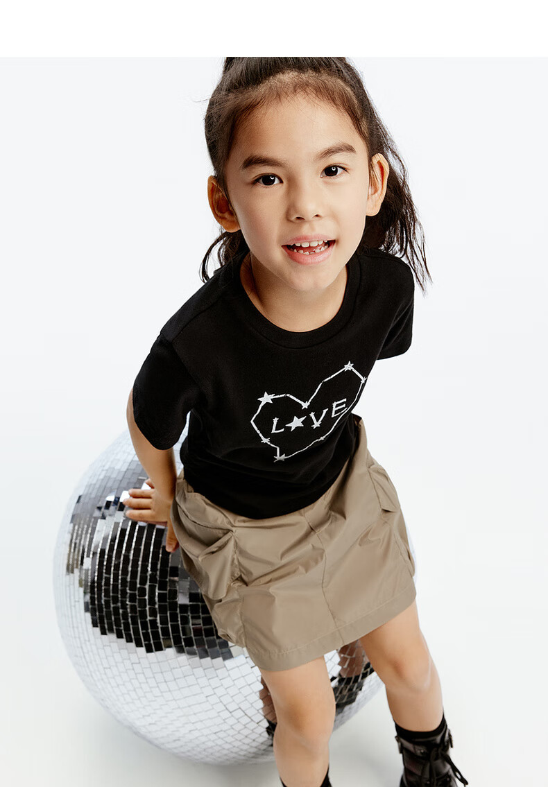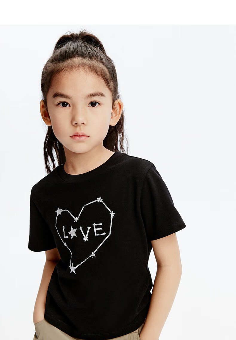 Little MO&Co. antibacterial children's clothing autumn new style girls love series simple elastic short-sleeved T-shirt white 110 110/56
