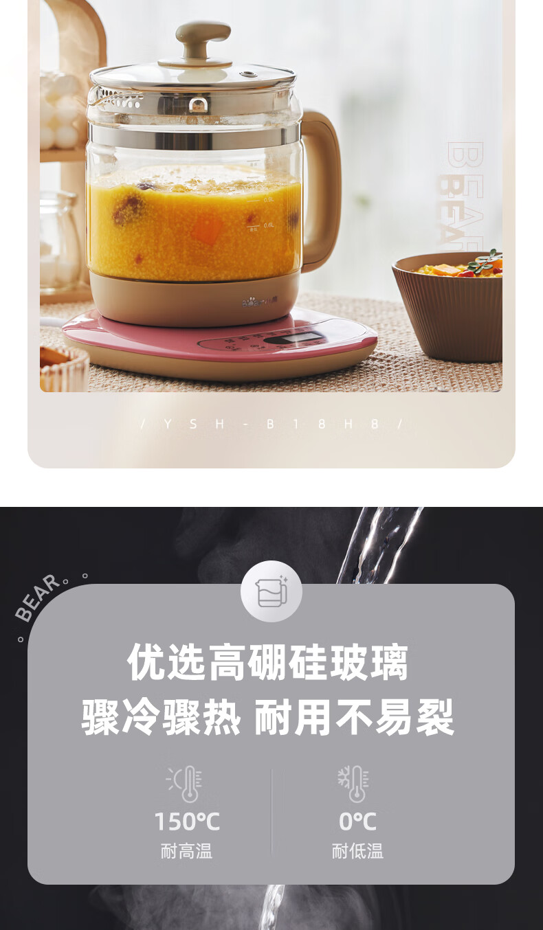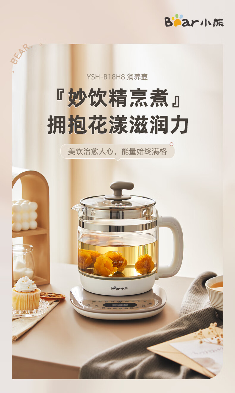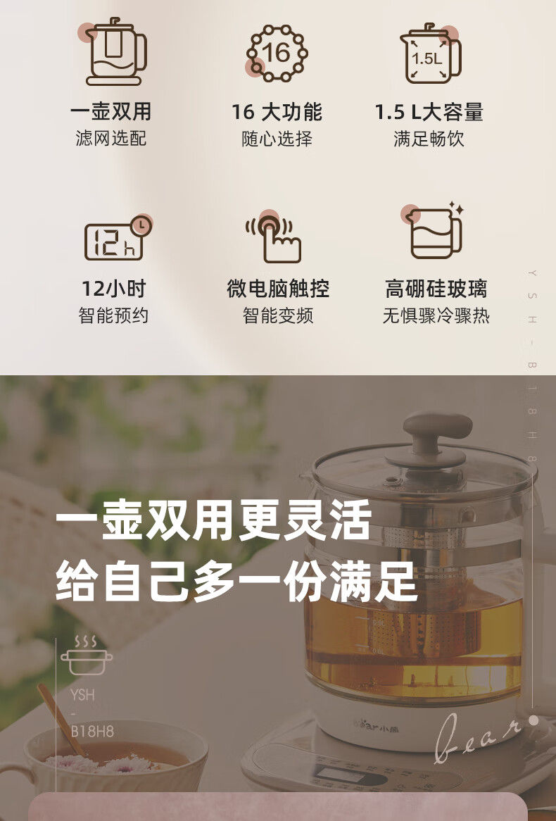 Bear health kettle electric kettle smart electric kettle 1.5L tea kettle insulated flower tea kettle office glass kettle kettle mini small household water boiling health kettle with filter one pot multi-purpose YSH-B18H8 1.5L
