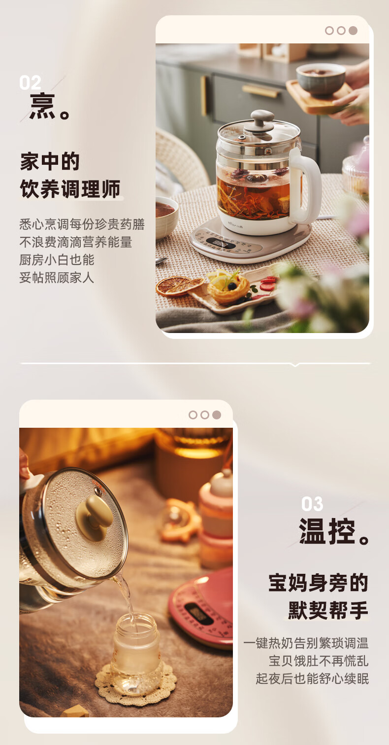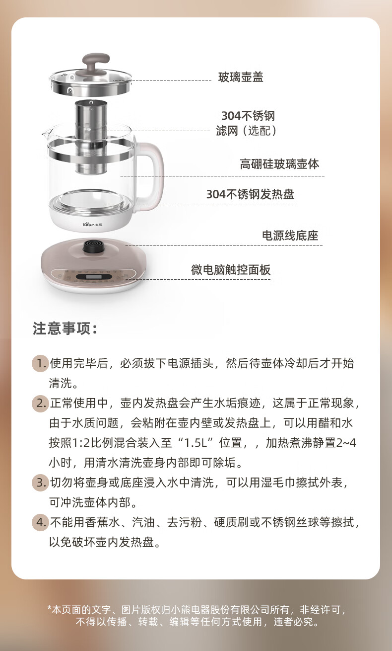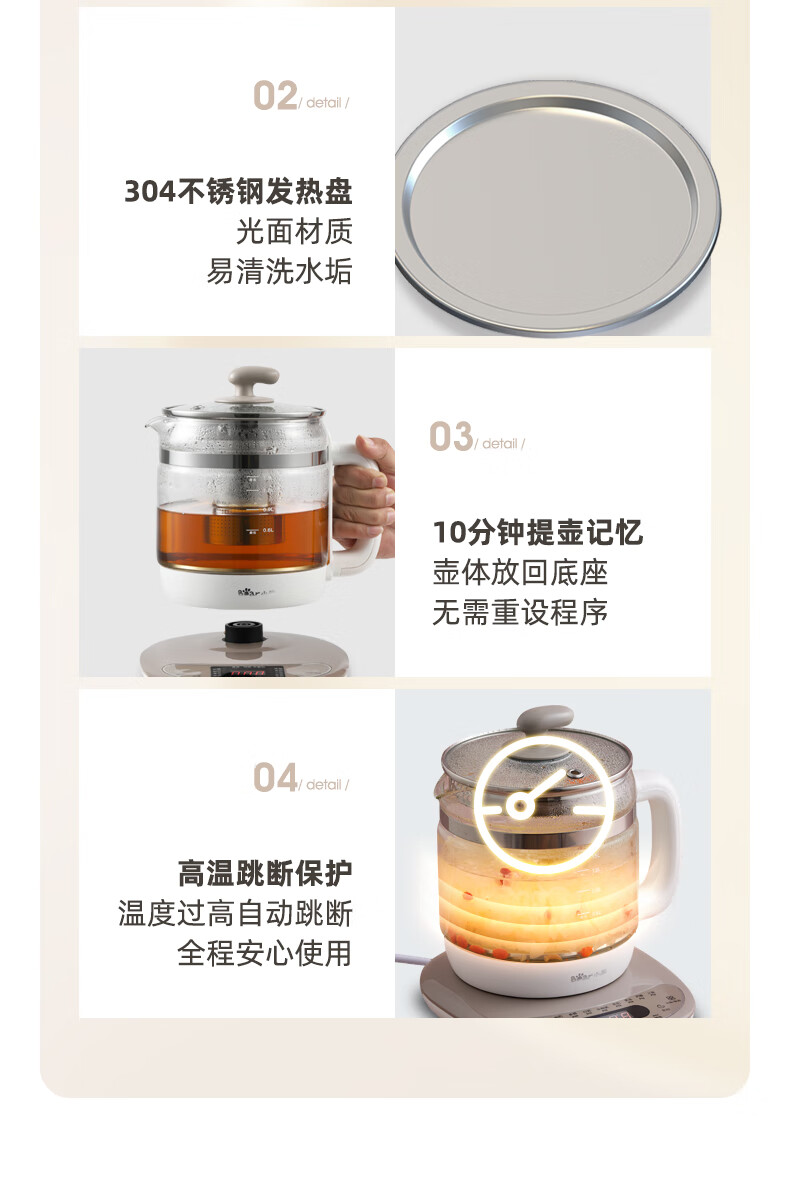Bear health kettle electric kettle smart electric kettle 1.5L tea kettle insulated flower tea kettle office glass kettle kettle mini small household water boiling health kettle with filter one pot multi-purpose YSH-B18H8 1.5L