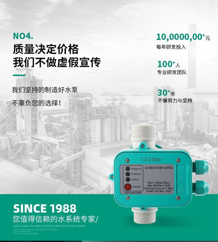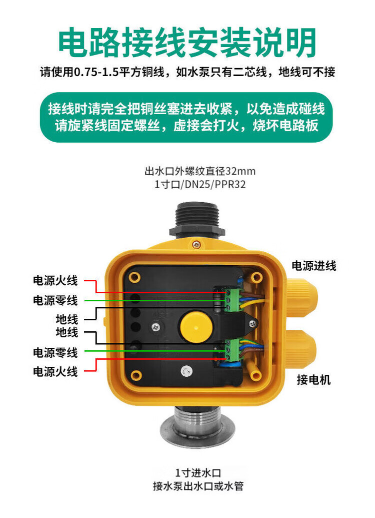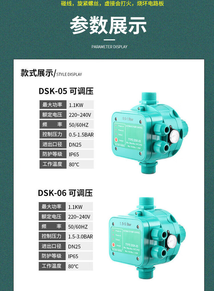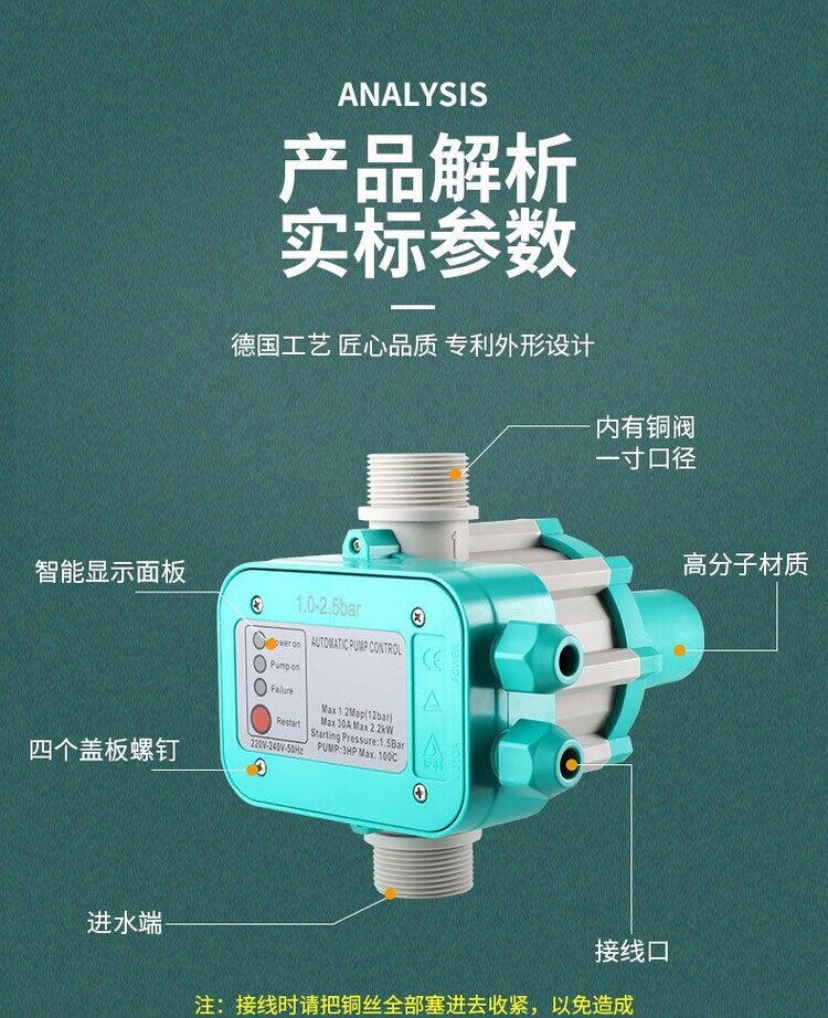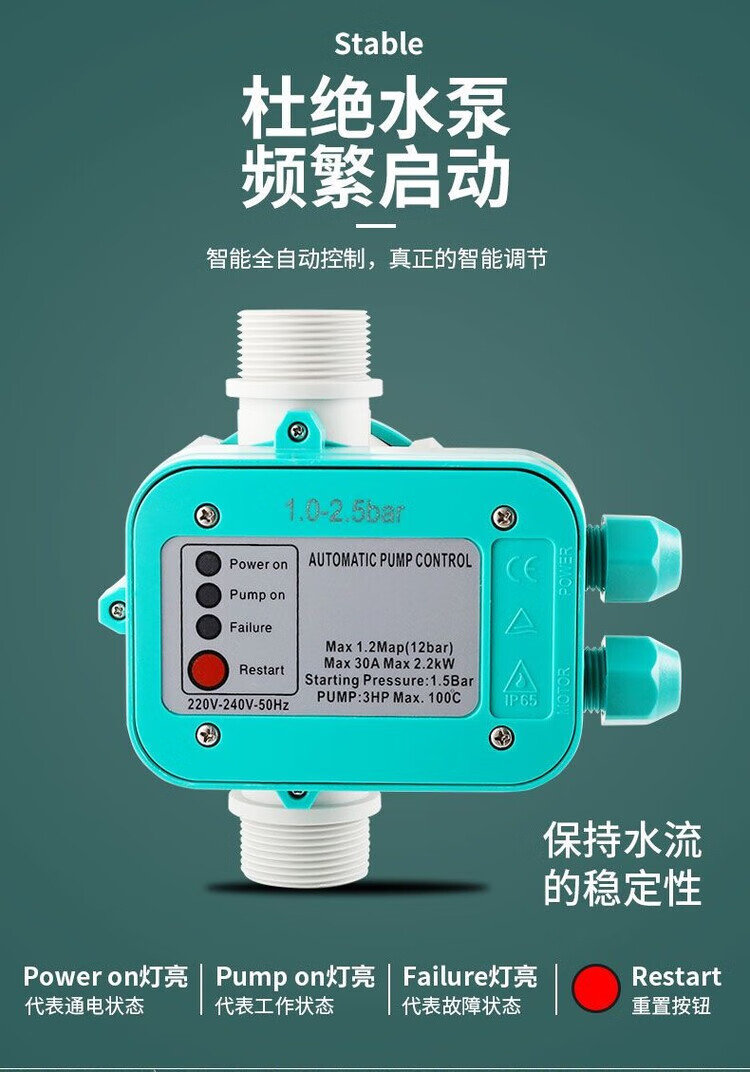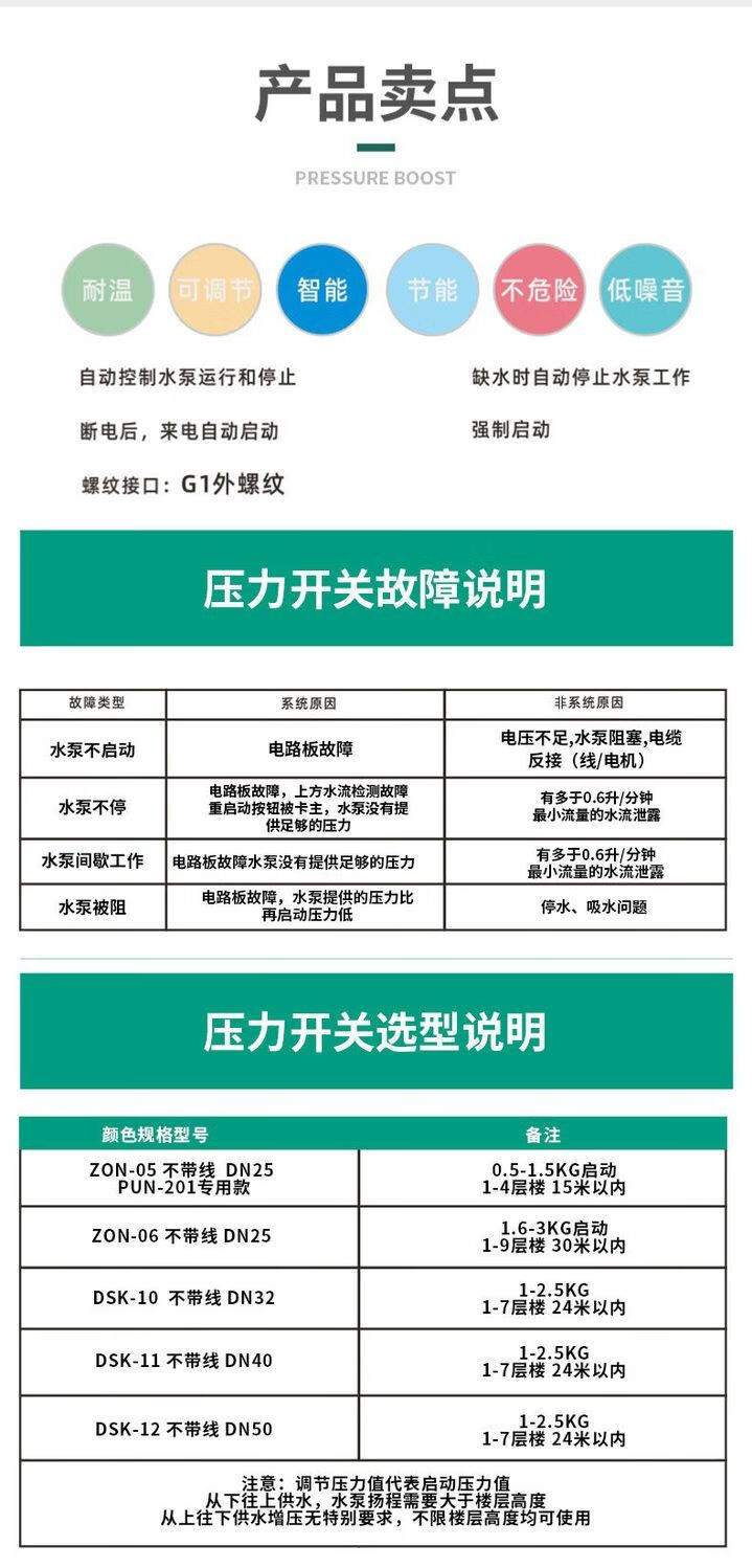 Water pump automatic start and stop switch controller intelligent pressure water flow sensor water shortage power outage DN40 outer diameter 45mm