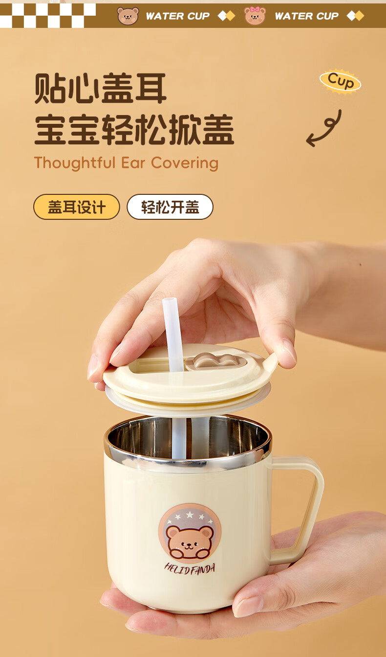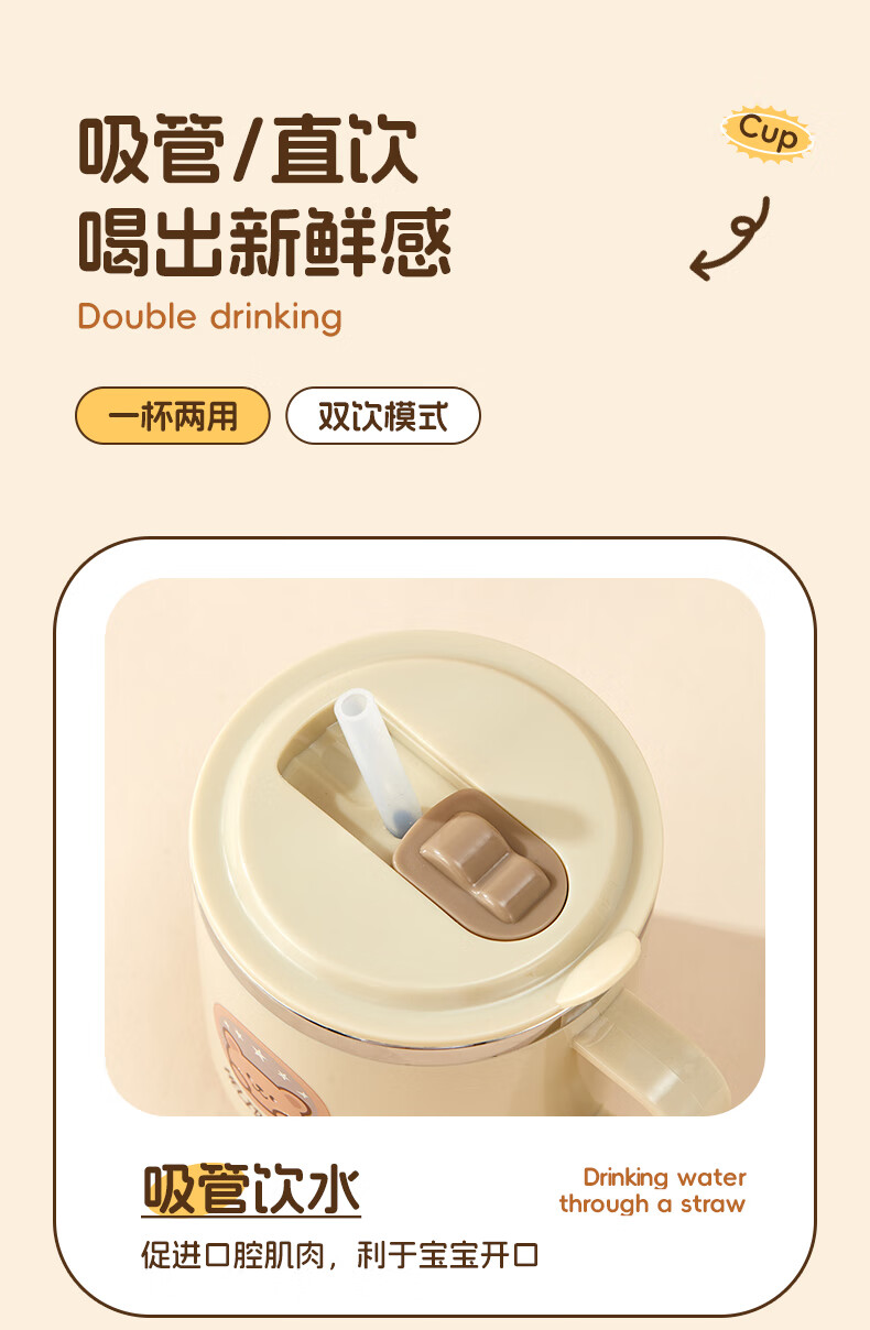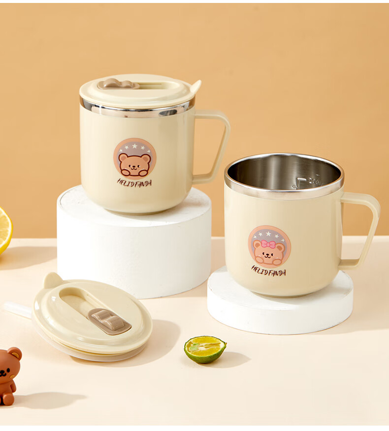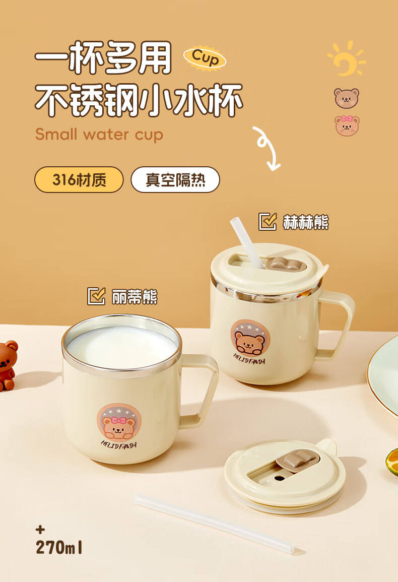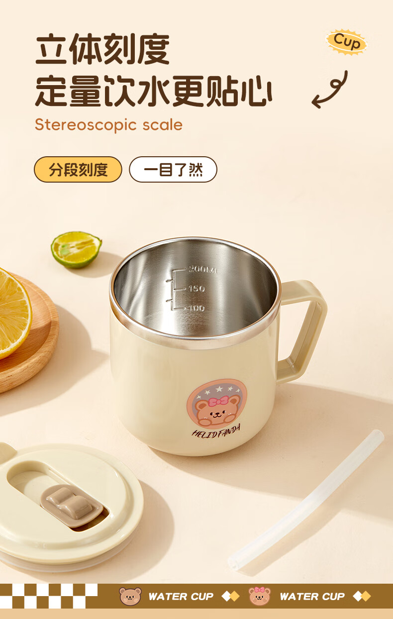 WORTHBUY children's water cup 316 stainless steel anti-fall straw cup open scale drinking cup milk cup baby learning cup 316 straw cup - Liddy Bear 1 piece 270ml