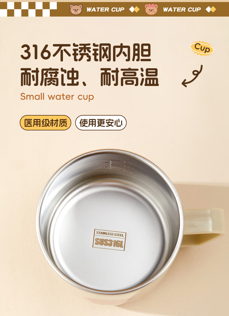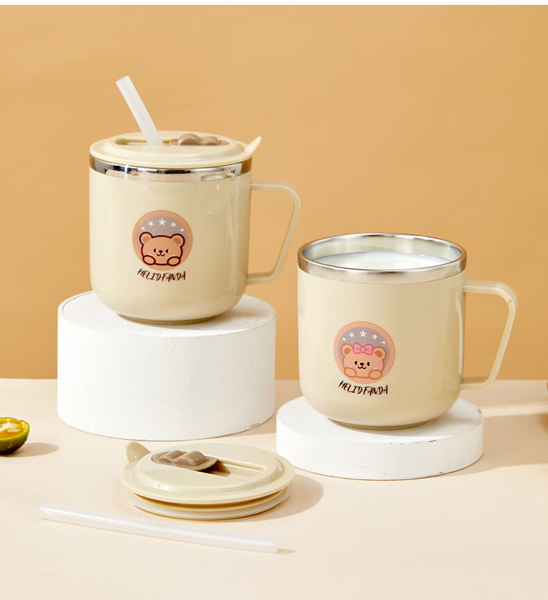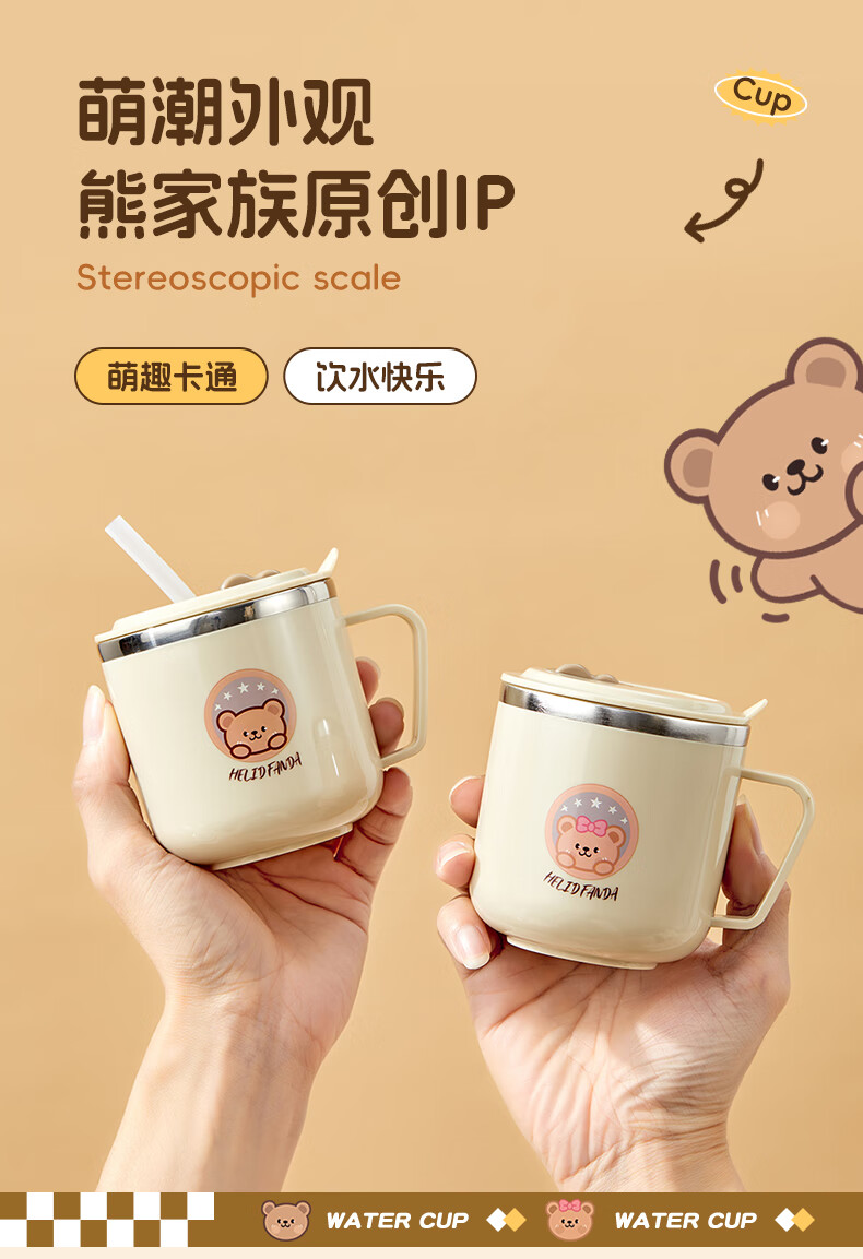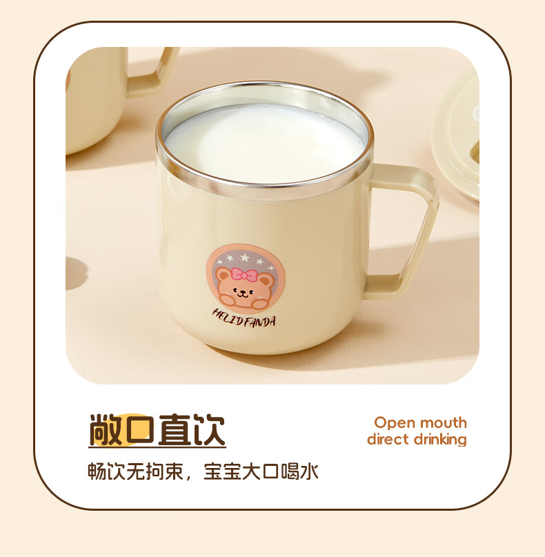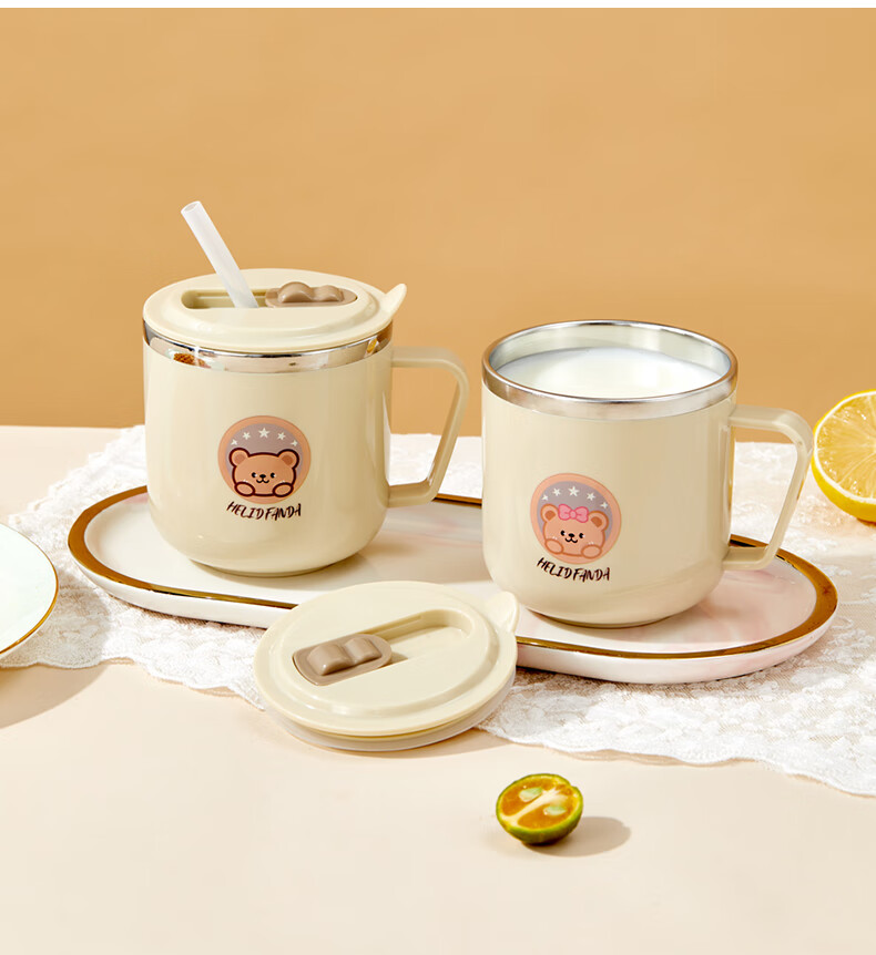 WORTHBUY children's water cup 316 stainless steel anti-fall straw cup open scale drinking cup milk cup baby learning cup 316 straw cup - Liddy Bear 1 piece 270ml
