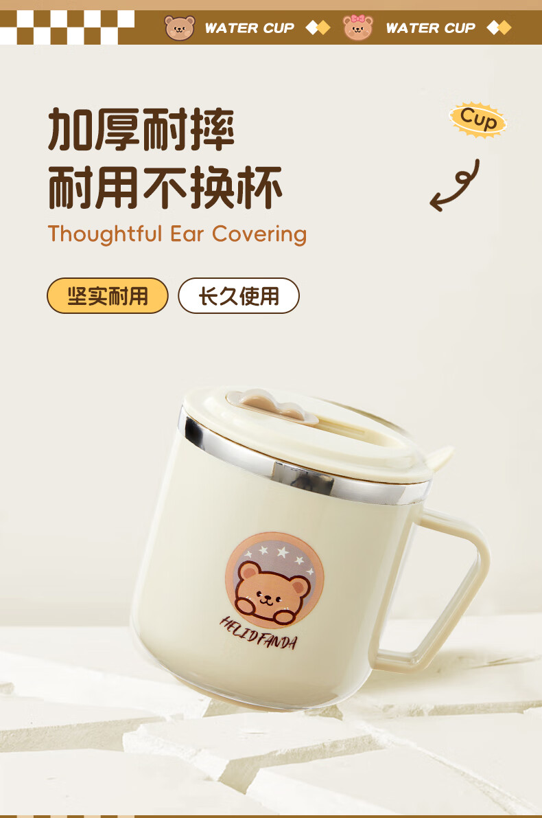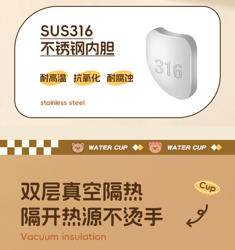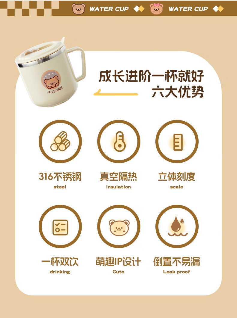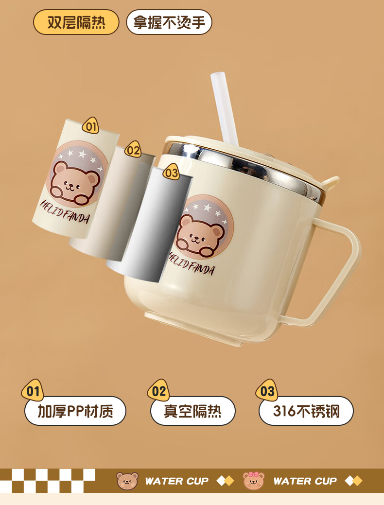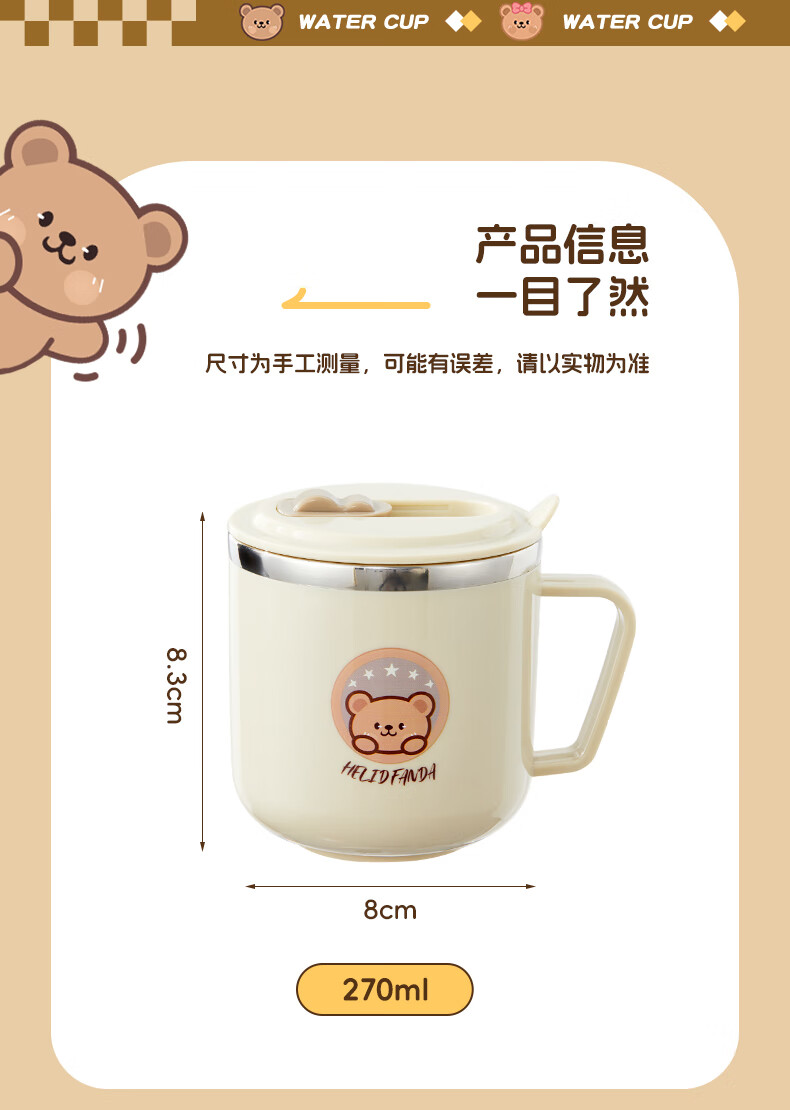 WORTHBUY children's water cup 316 stainless steel anti-fall straw cup open scale drinking cup milk cup baby learning cup 316 straw cup - Liddy Bear 1 piece 270ml