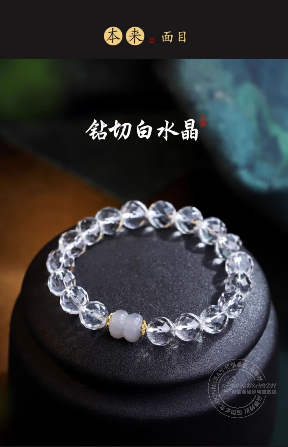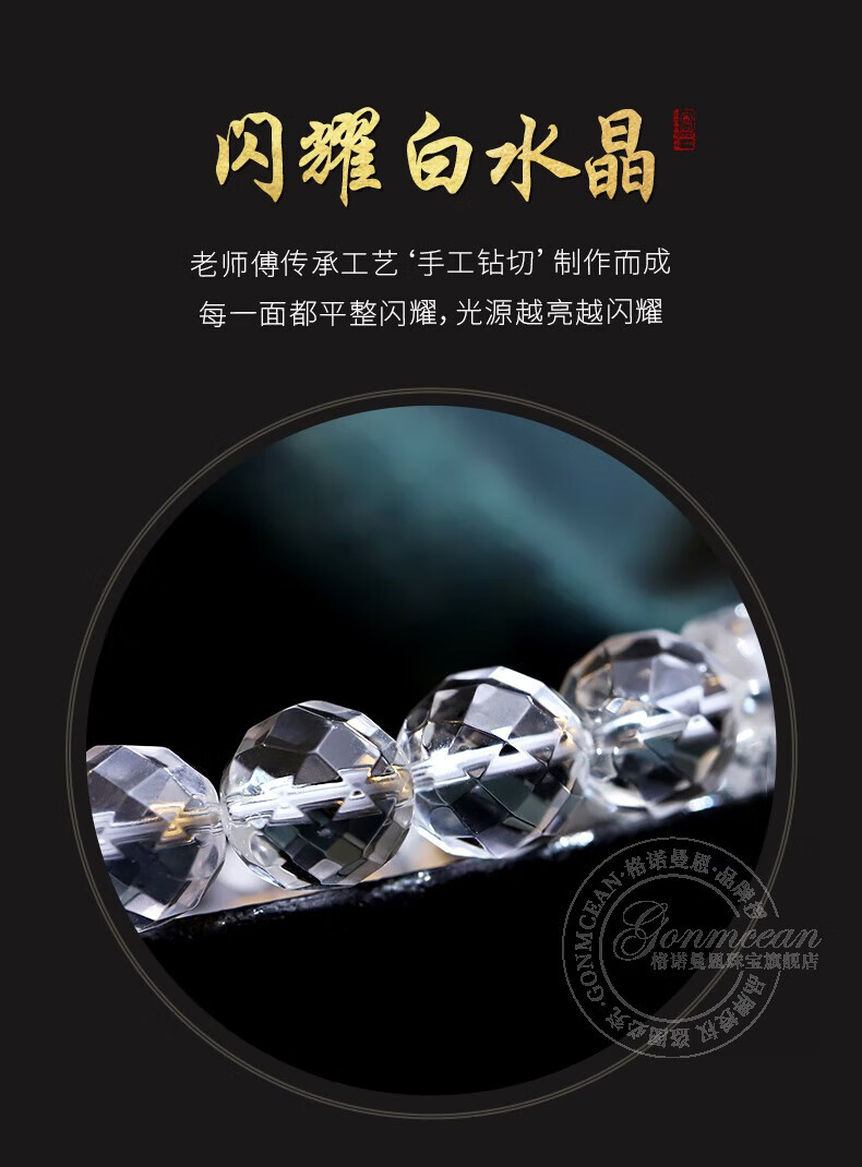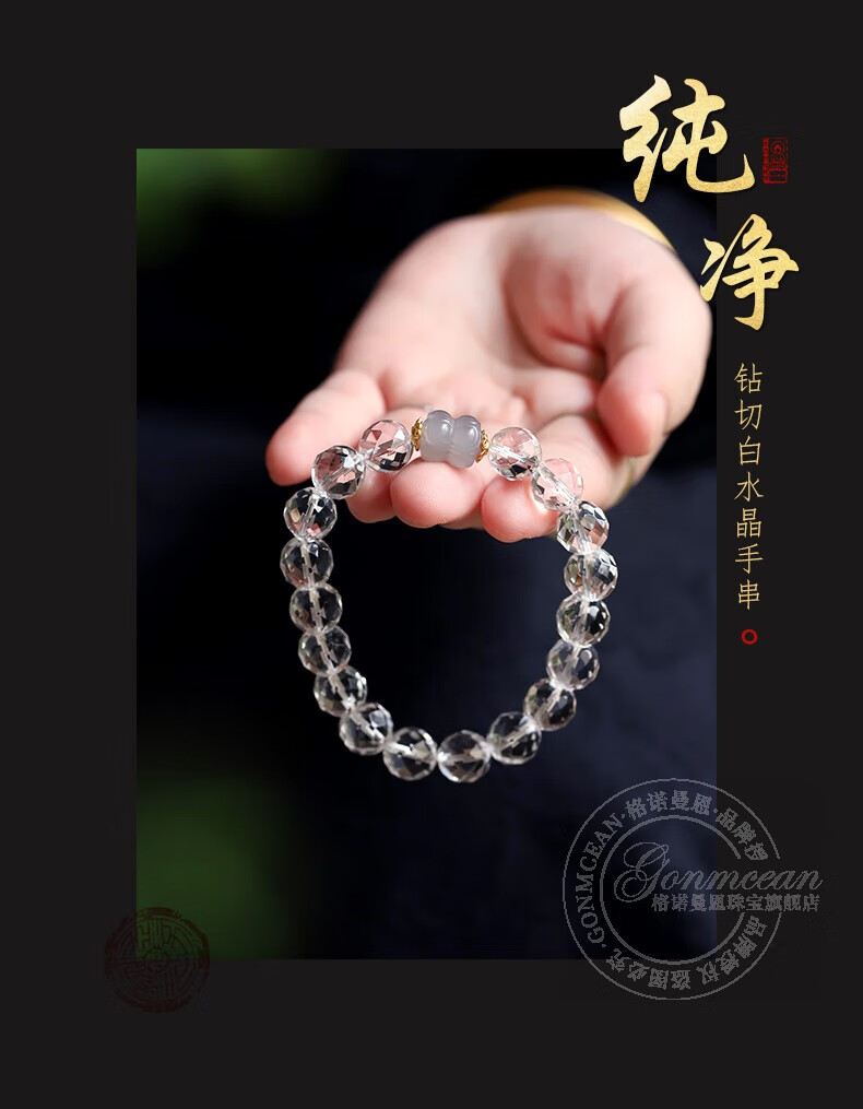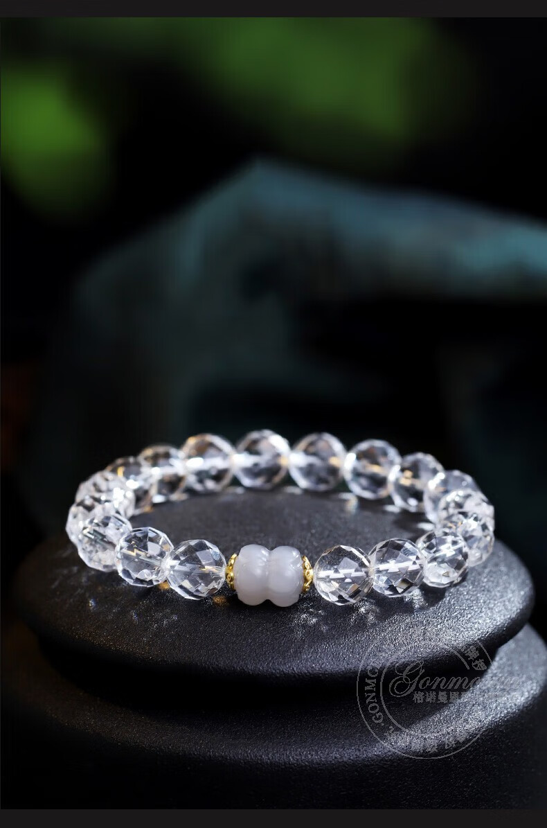 Gernoman Meet Collection Brazilian White Crystal Bracelet Women's Diamond Surface White Crystal Bead Smoky Purple Jade Bracelet Beads 10mm
