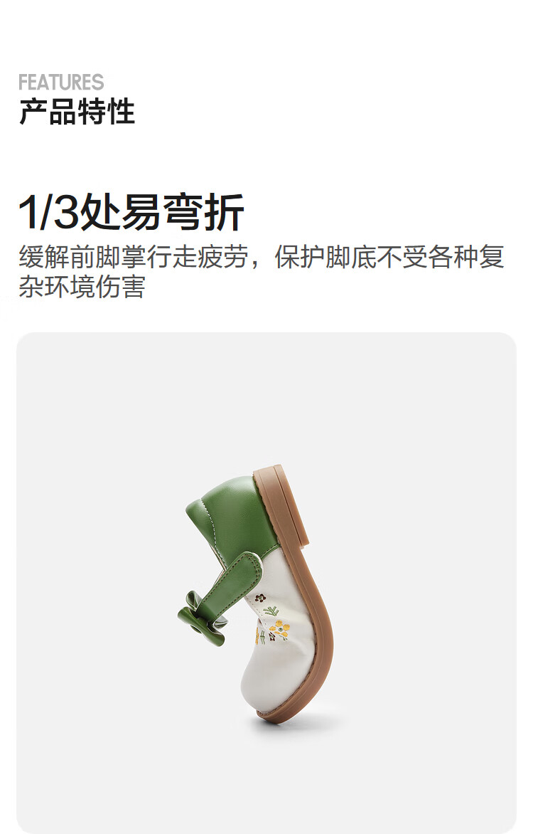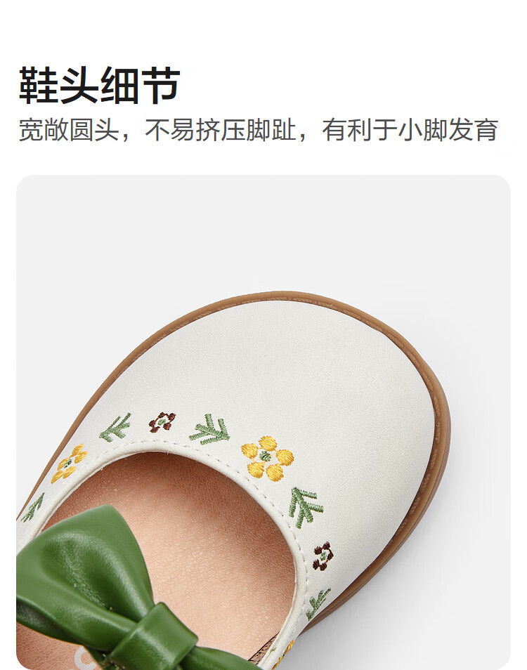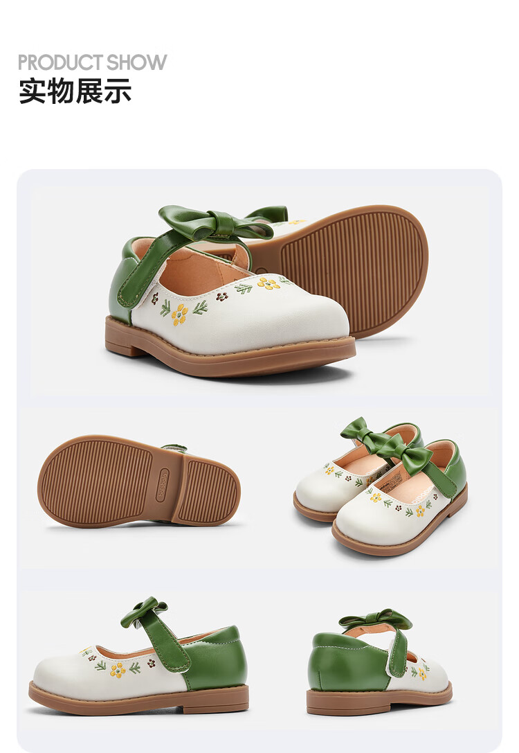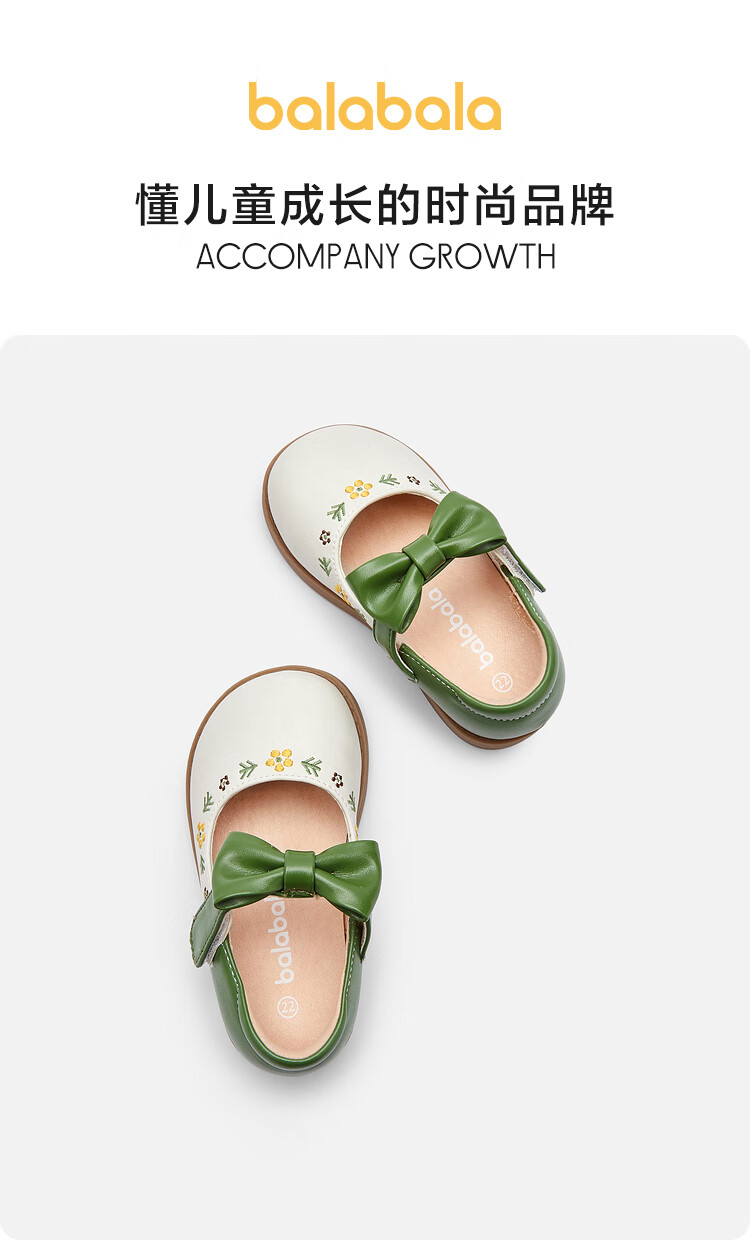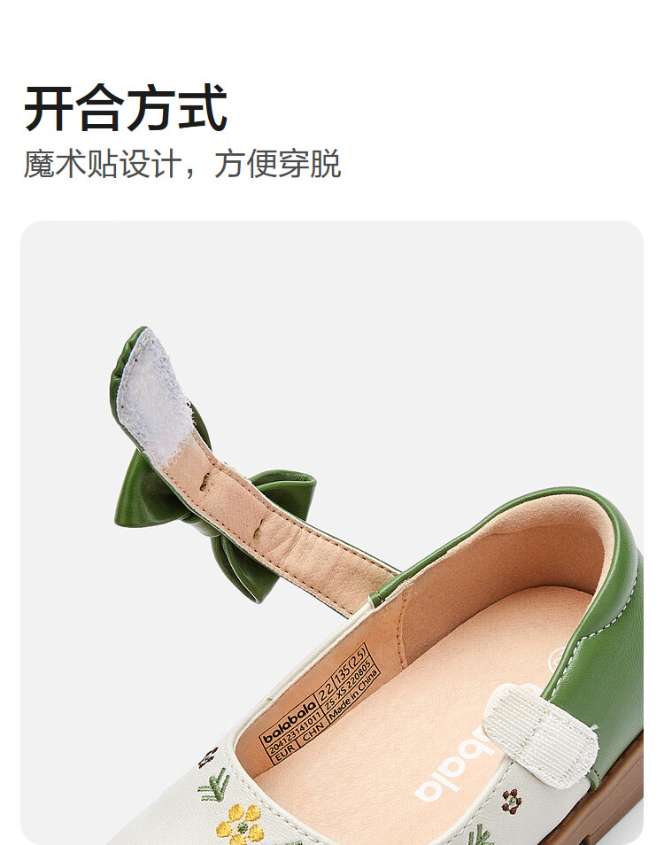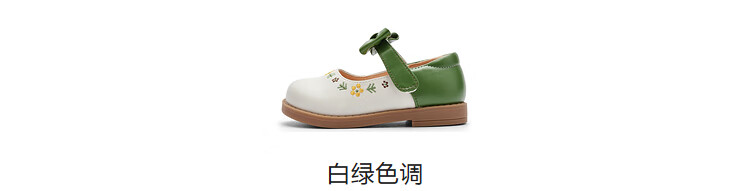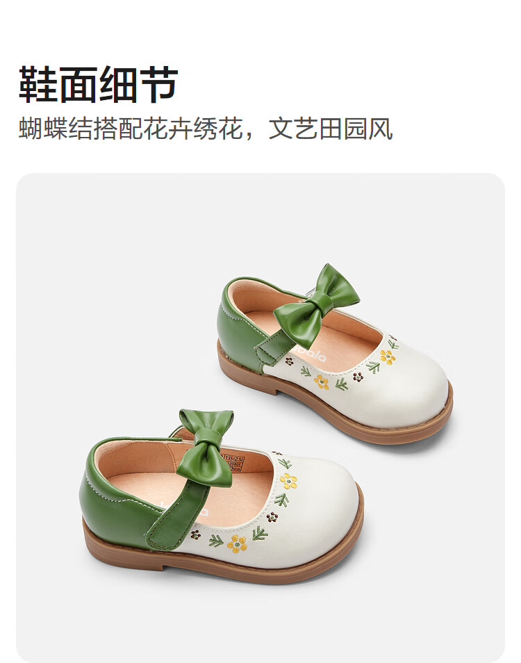 Balabala girls princess shoes children's small leather shoes artistic embroidered bow spring and autumn children's shoes baby shoes white green tone 00314 22 (foot length 13.3-13.7/inner length 14.6)