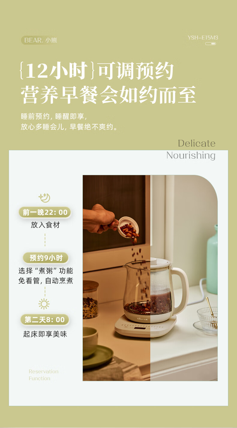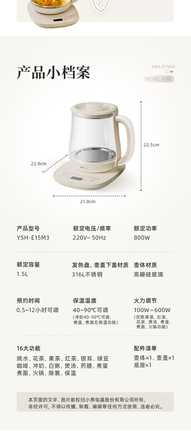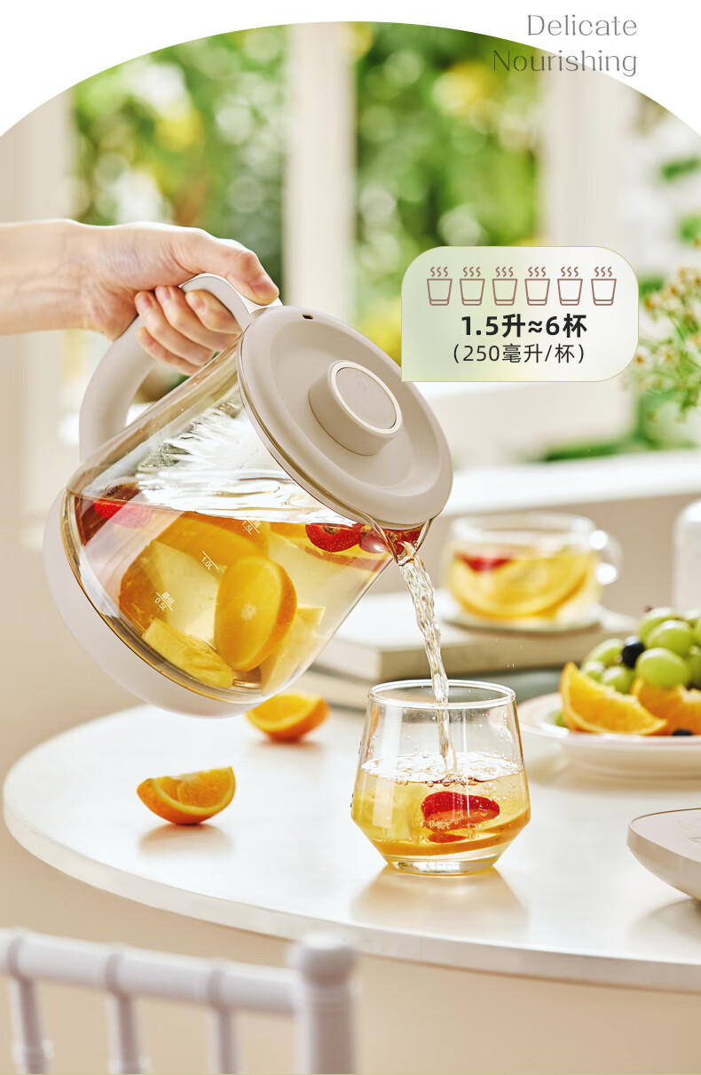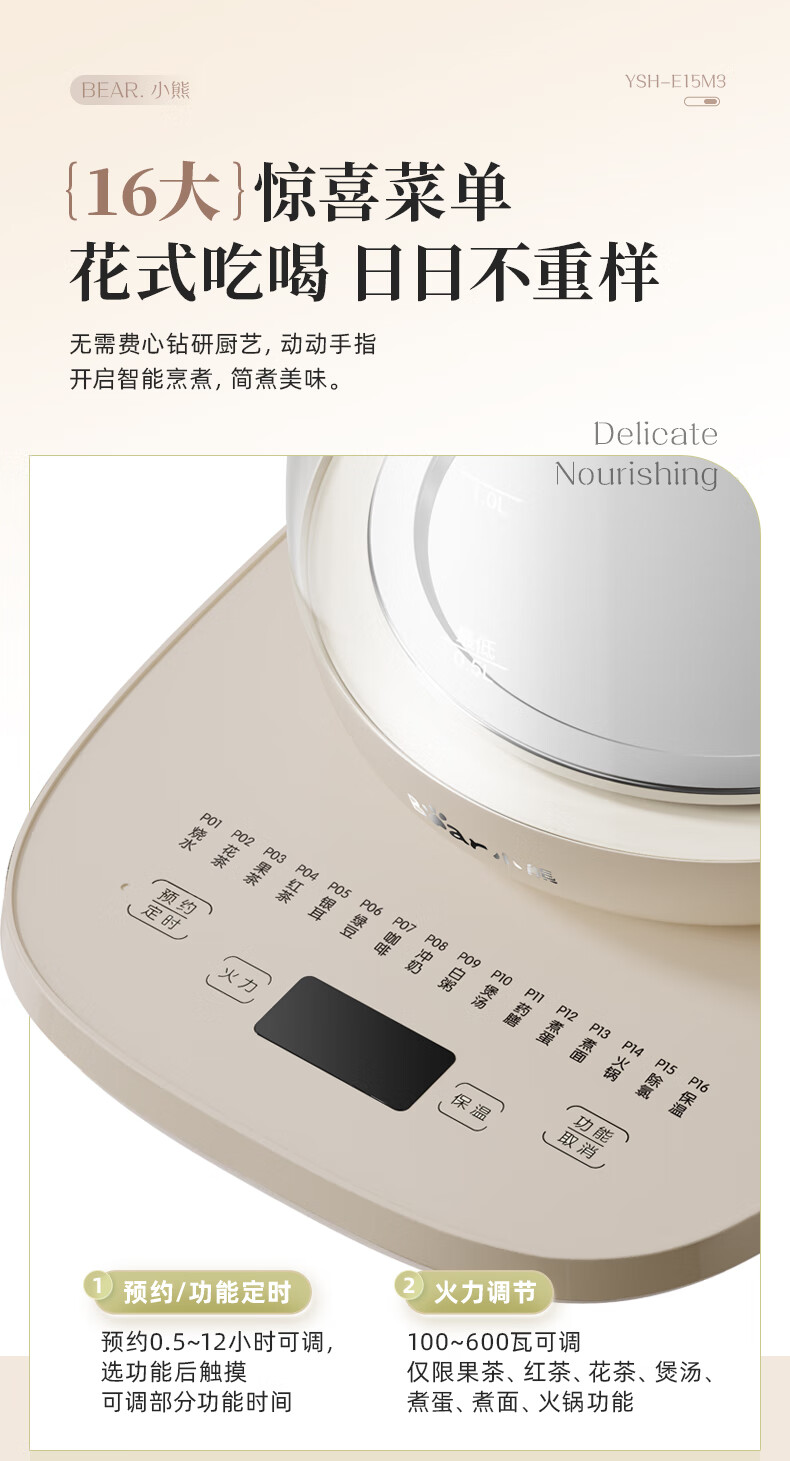 Bear health pot 1.5L tea maker small rice porridge kettle teapot 316L stainless steel multi-stage insulation mini glass flower teapot smart electric kettle without filter 316 stainless steel YSH-E15M3 1.5L