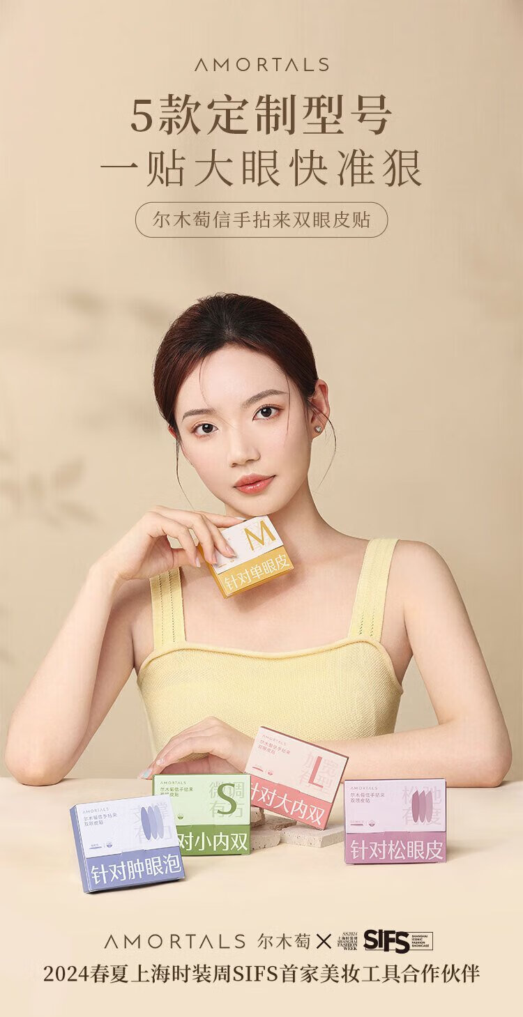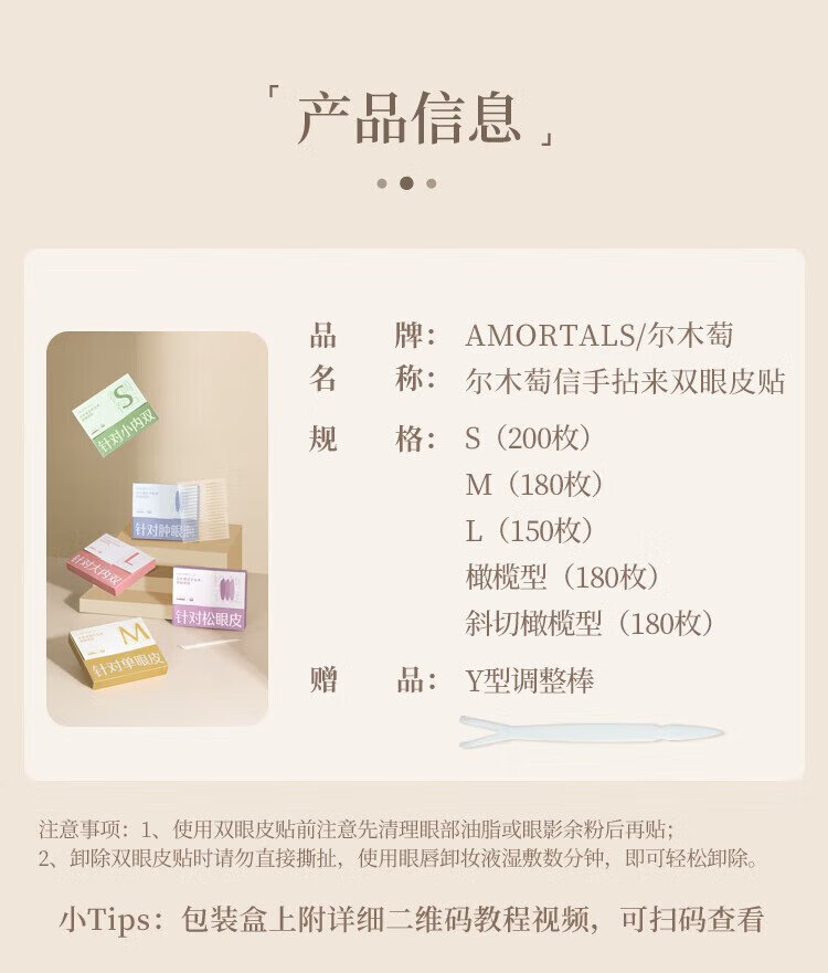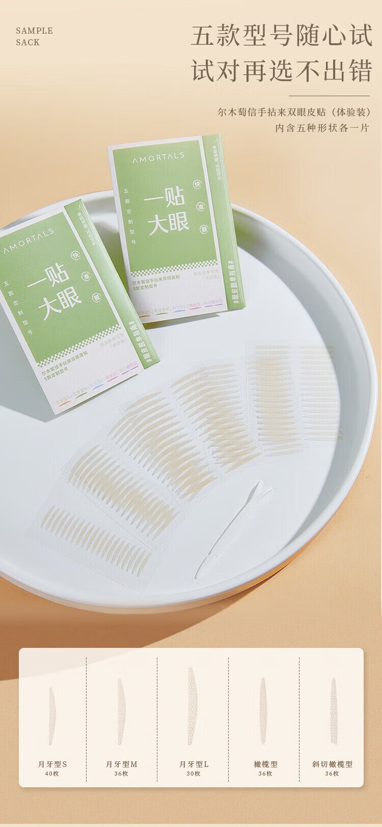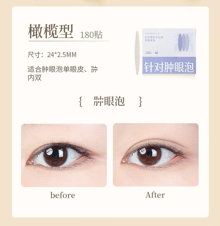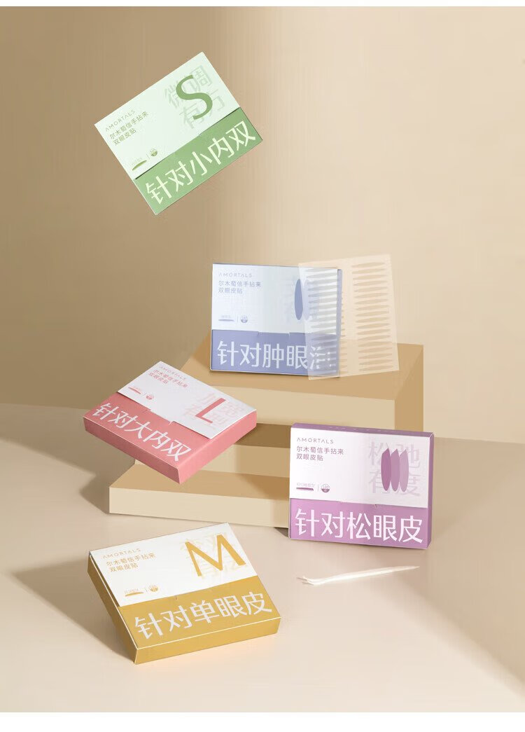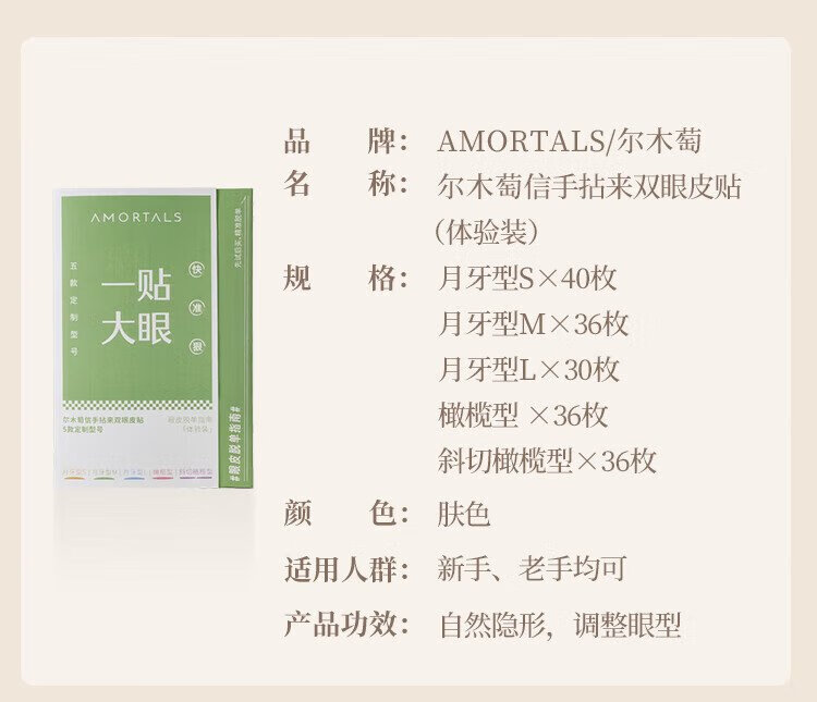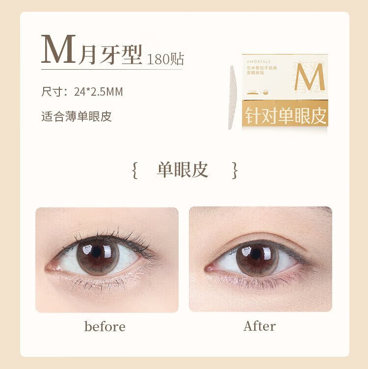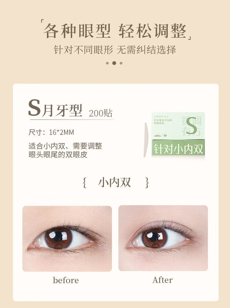 Ermutao double eyelid stickers, size S, crescent shape, 200 pieces, can be used for sensitive skin, invisible shaping, traceless, light and natural holiday gift, crescent shape, size S, 200 pieces