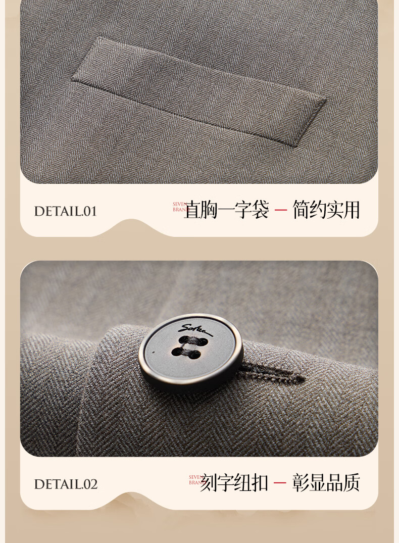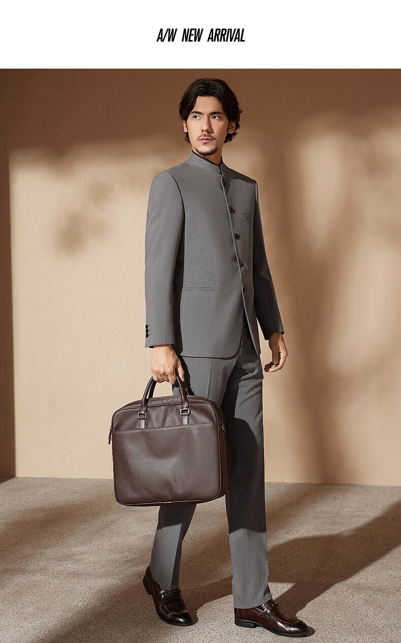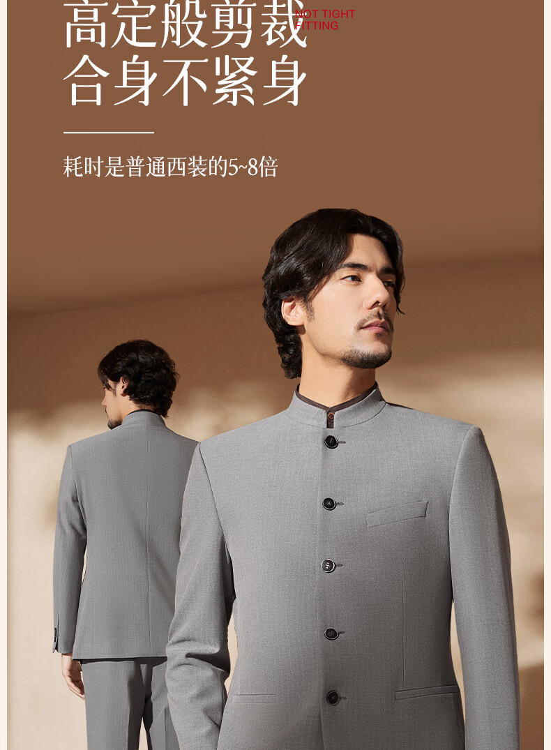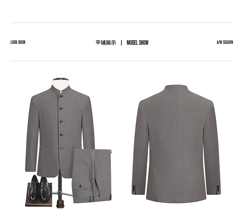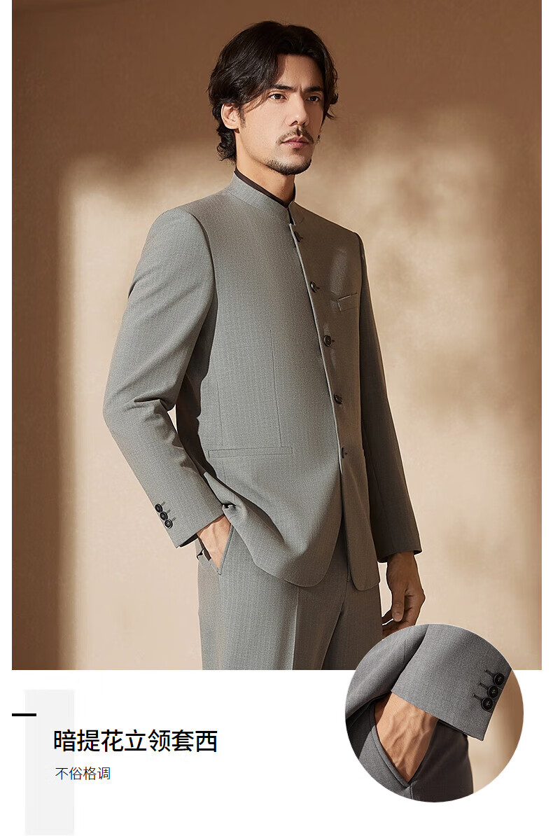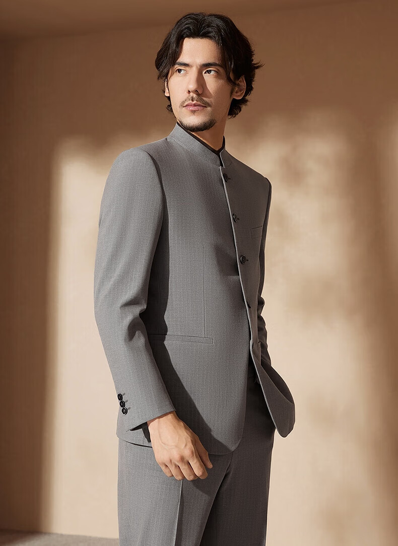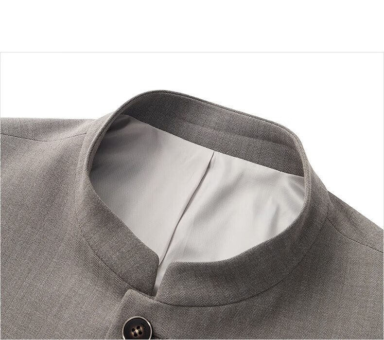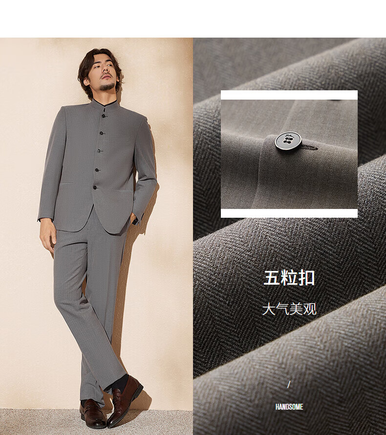 SEVEN suit men's 2025 autumn new herringbone jacquard five-breasted suit, Chinese stand-up collar, ash B44