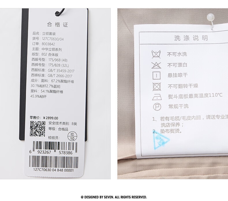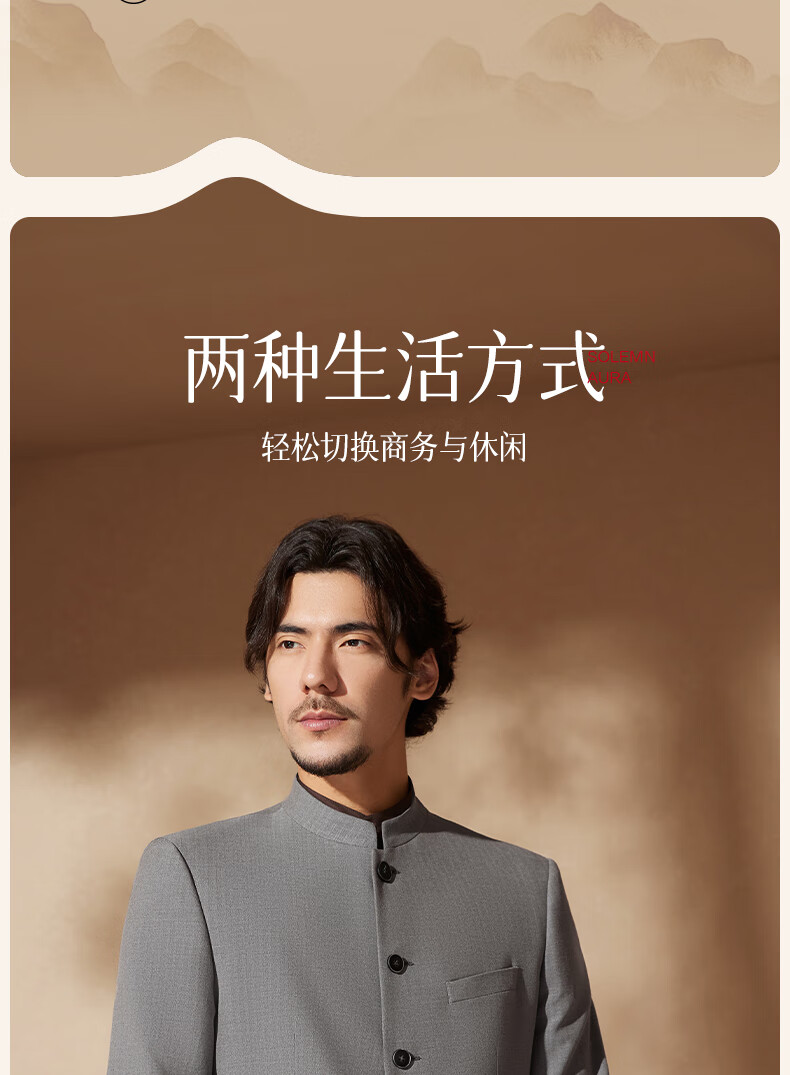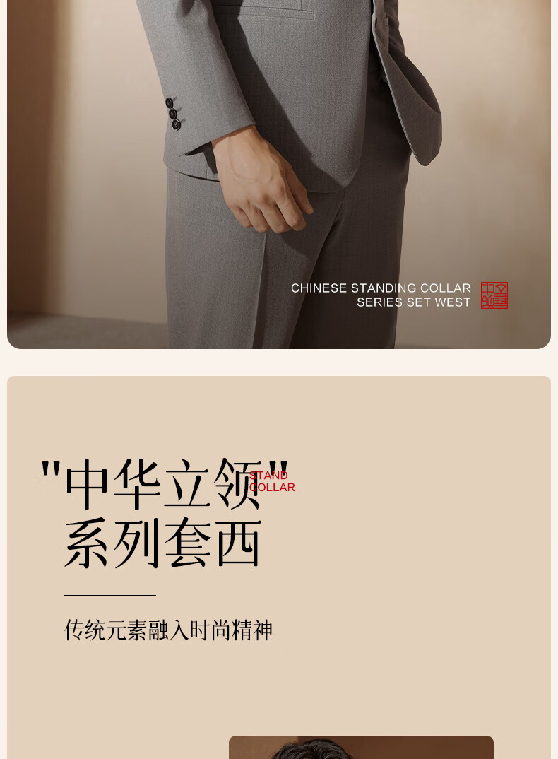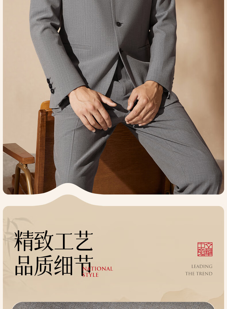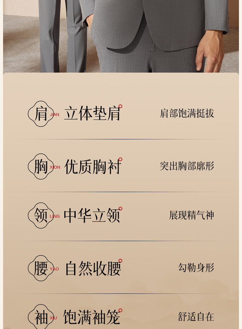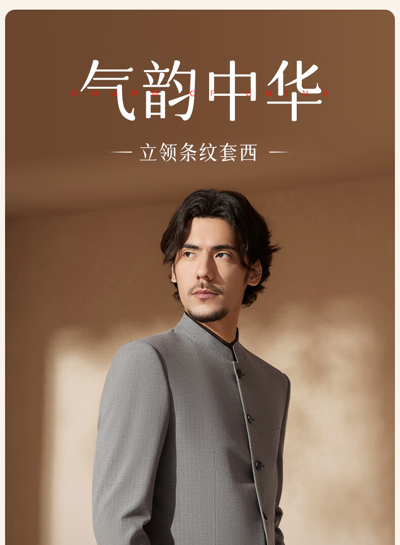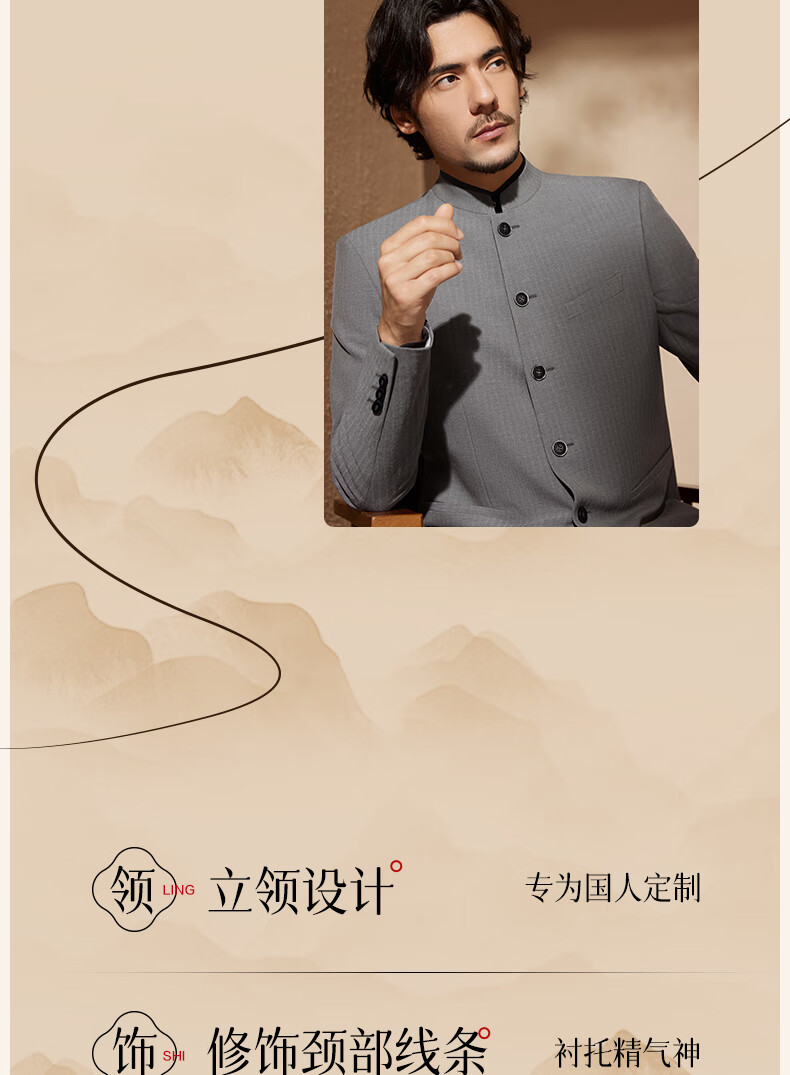 SEVEN suit men's 2025 autumn new herringbone jacquard five-breasted suit, Chinese stand-up collar, ash B44