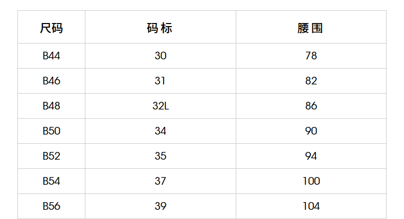 USA(inch) 28-30 30-32 32-34 34-38 38-42