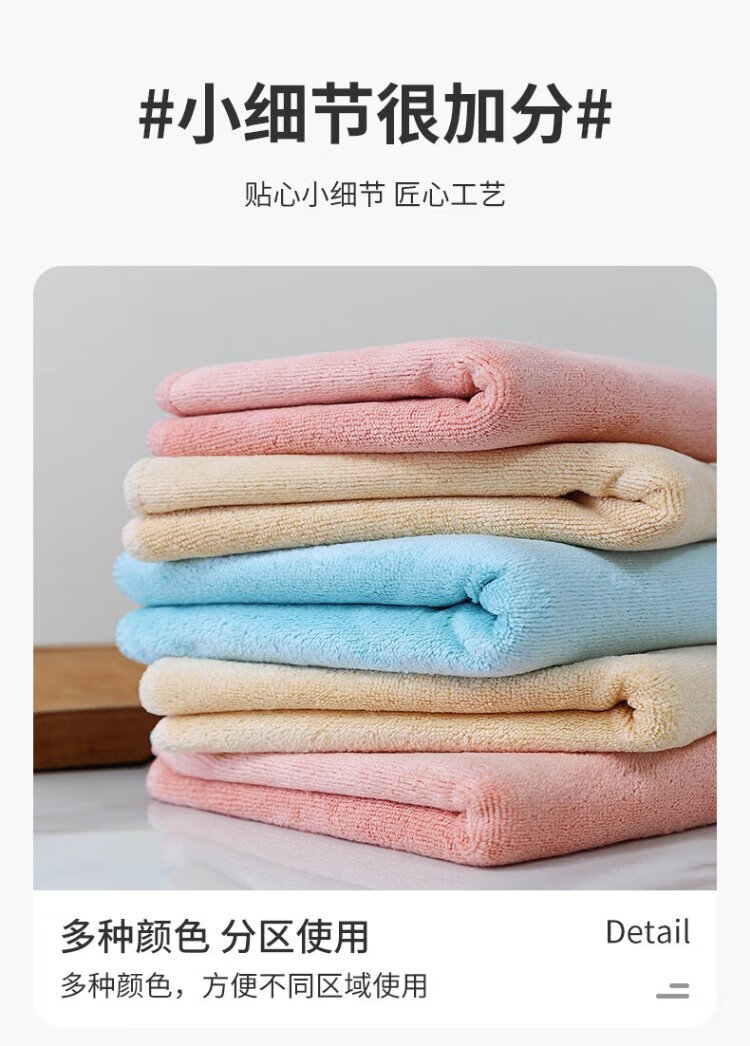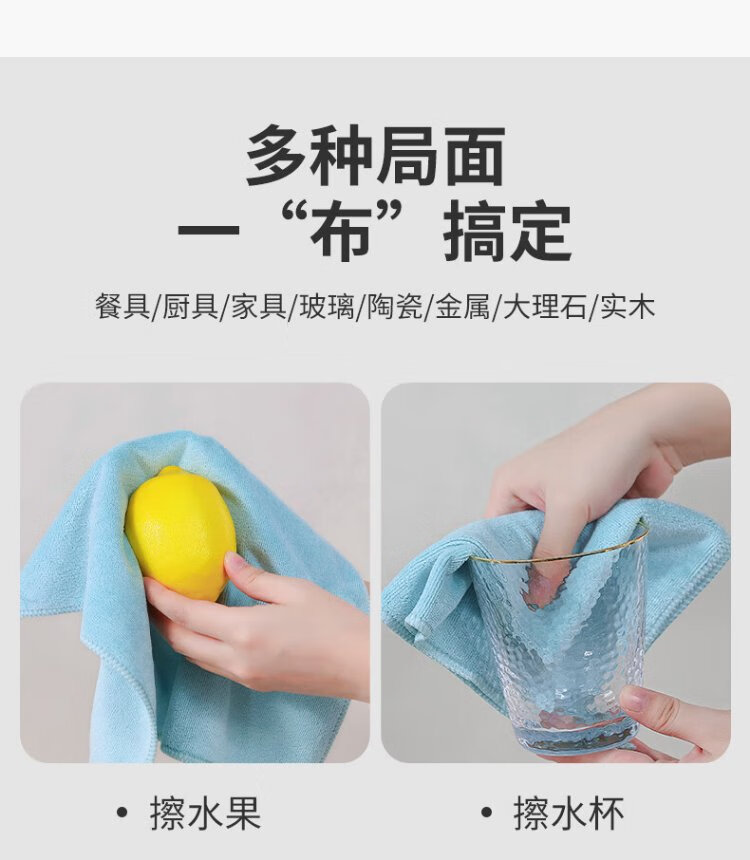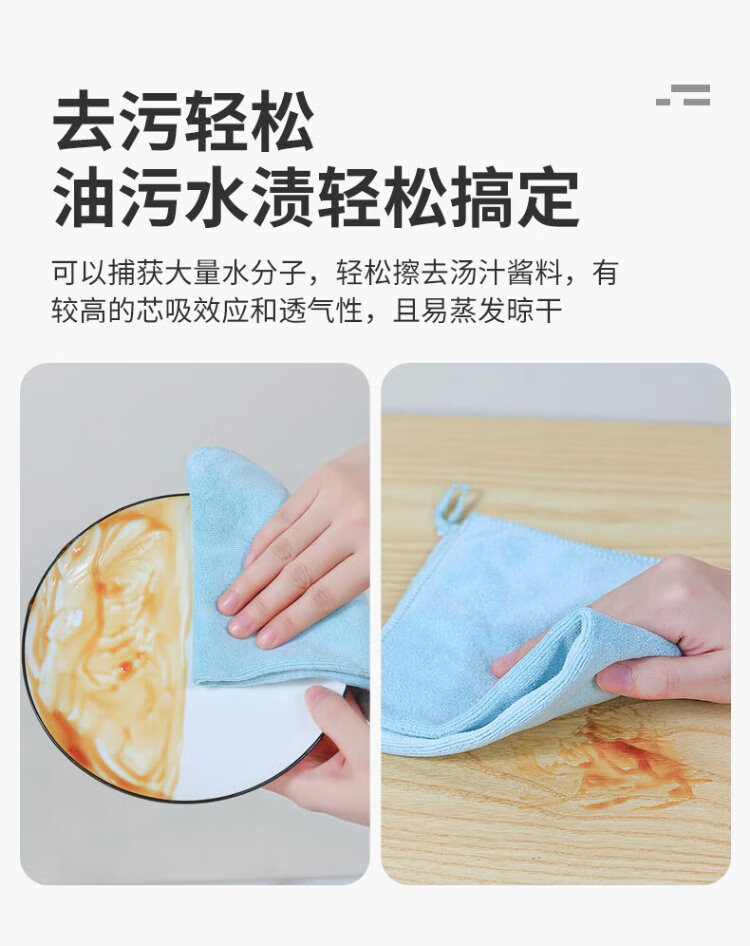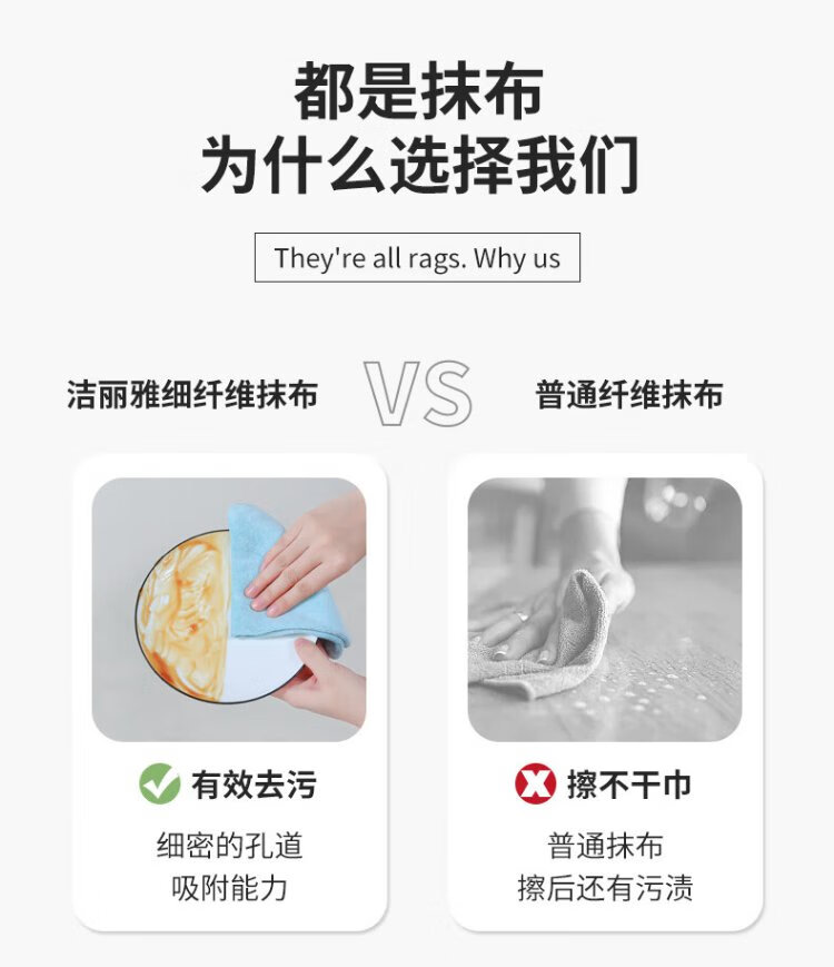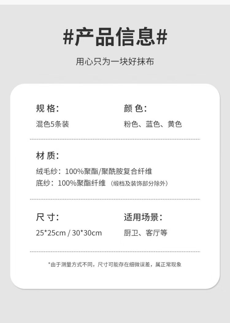 Jialiya kitchen rag, housekeeping, microfiber cleaning cloth, household water-absorbing cleaning and degreasing scouring pad, fine fiber rag, mixed color, 5 pack 25*25cm
