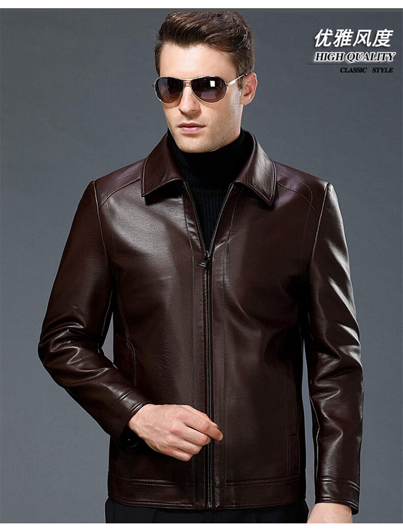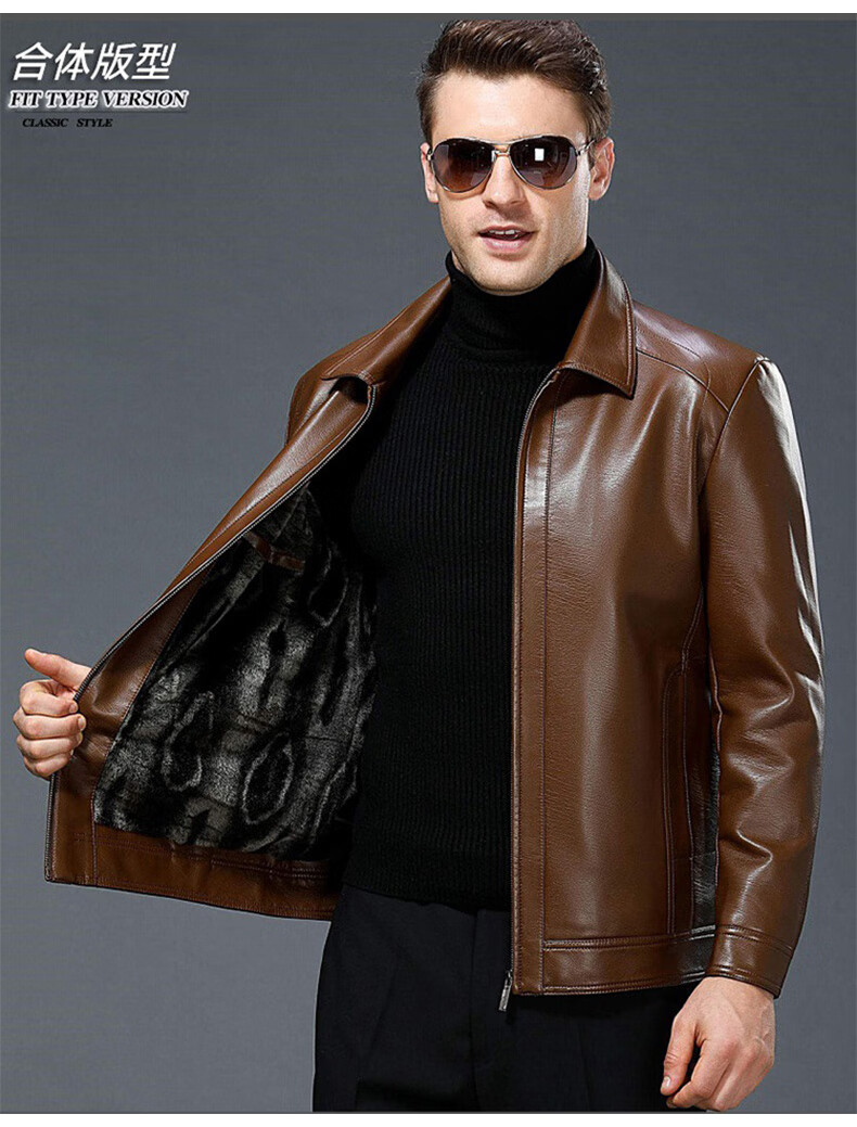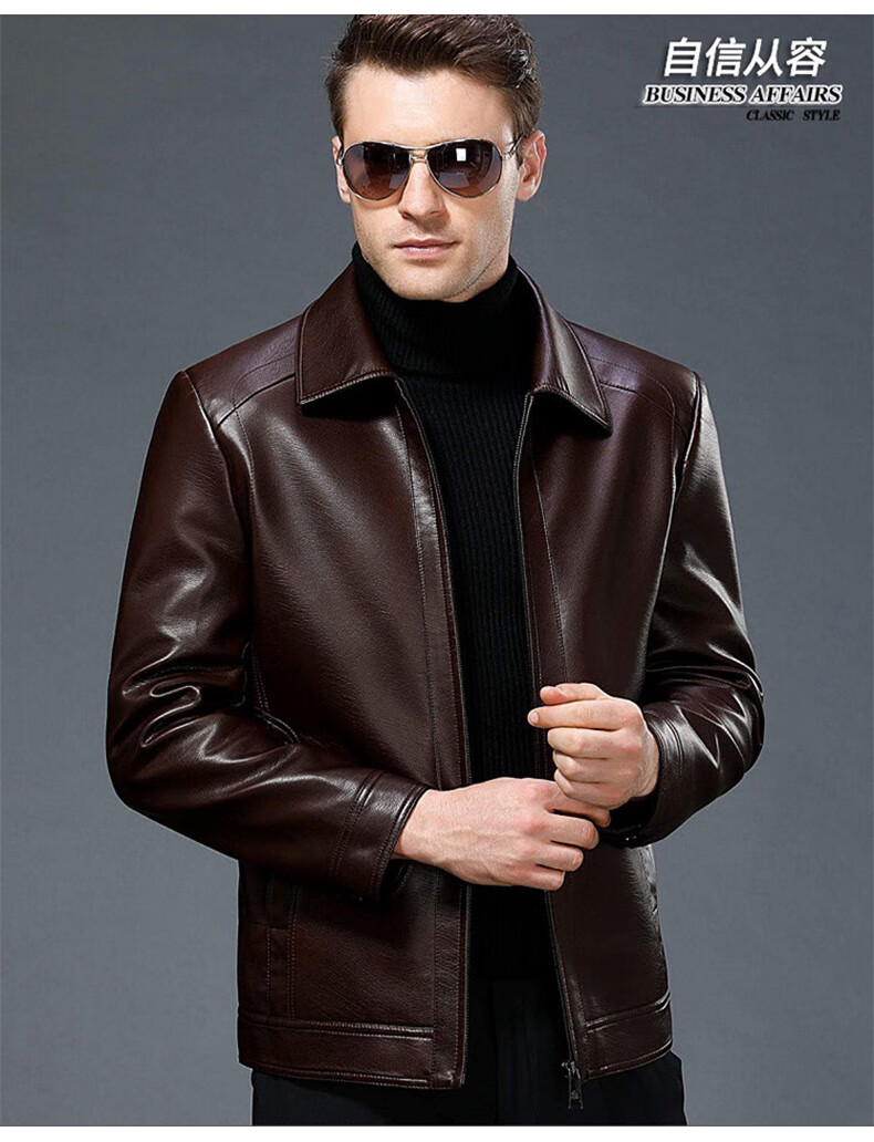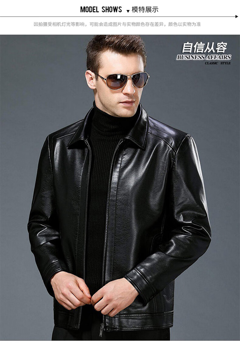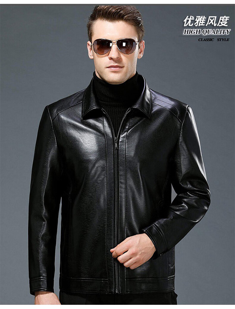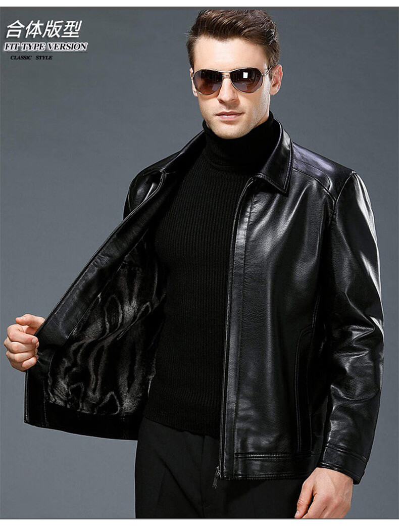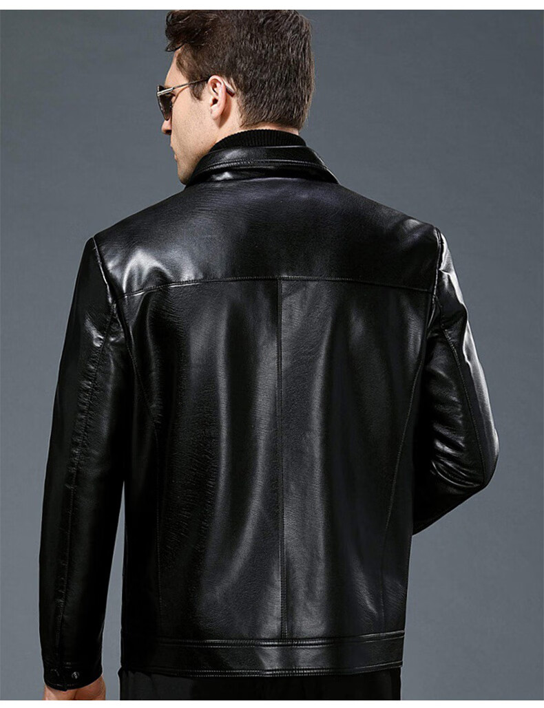 Chaqueta de cuero Luo Meng Chaqueta de cuero engrosada de terciopelo de otoño e invierno para hombres Chaqueta de papá para hombres de mediana edad y ancianos Terciopelo negro L (175)