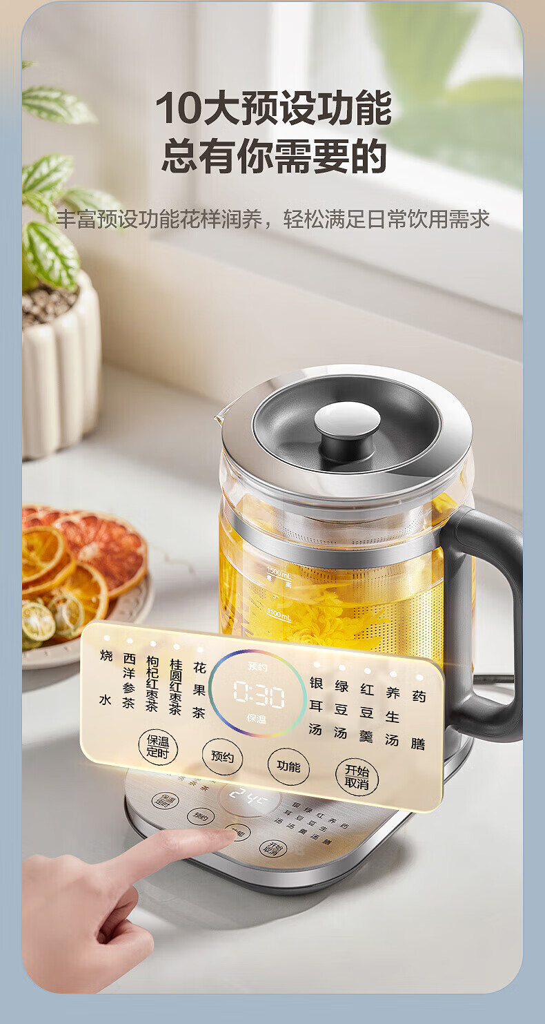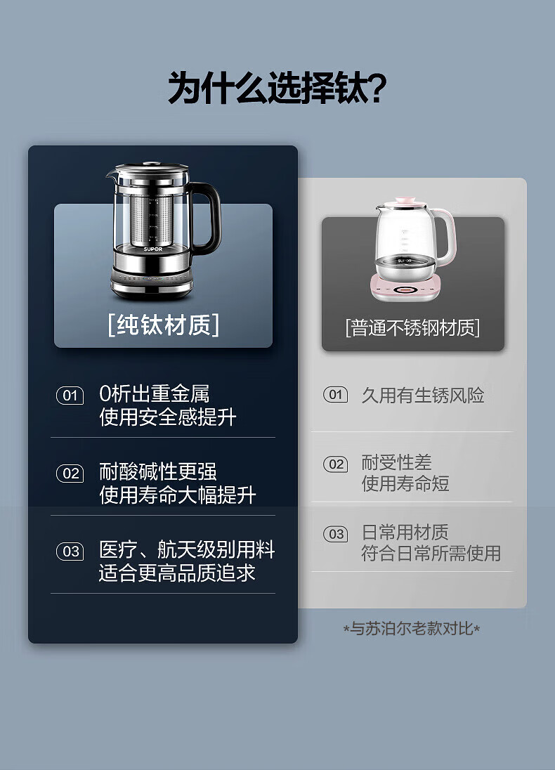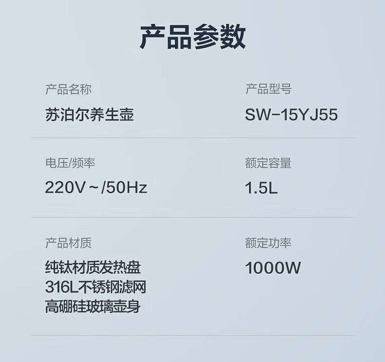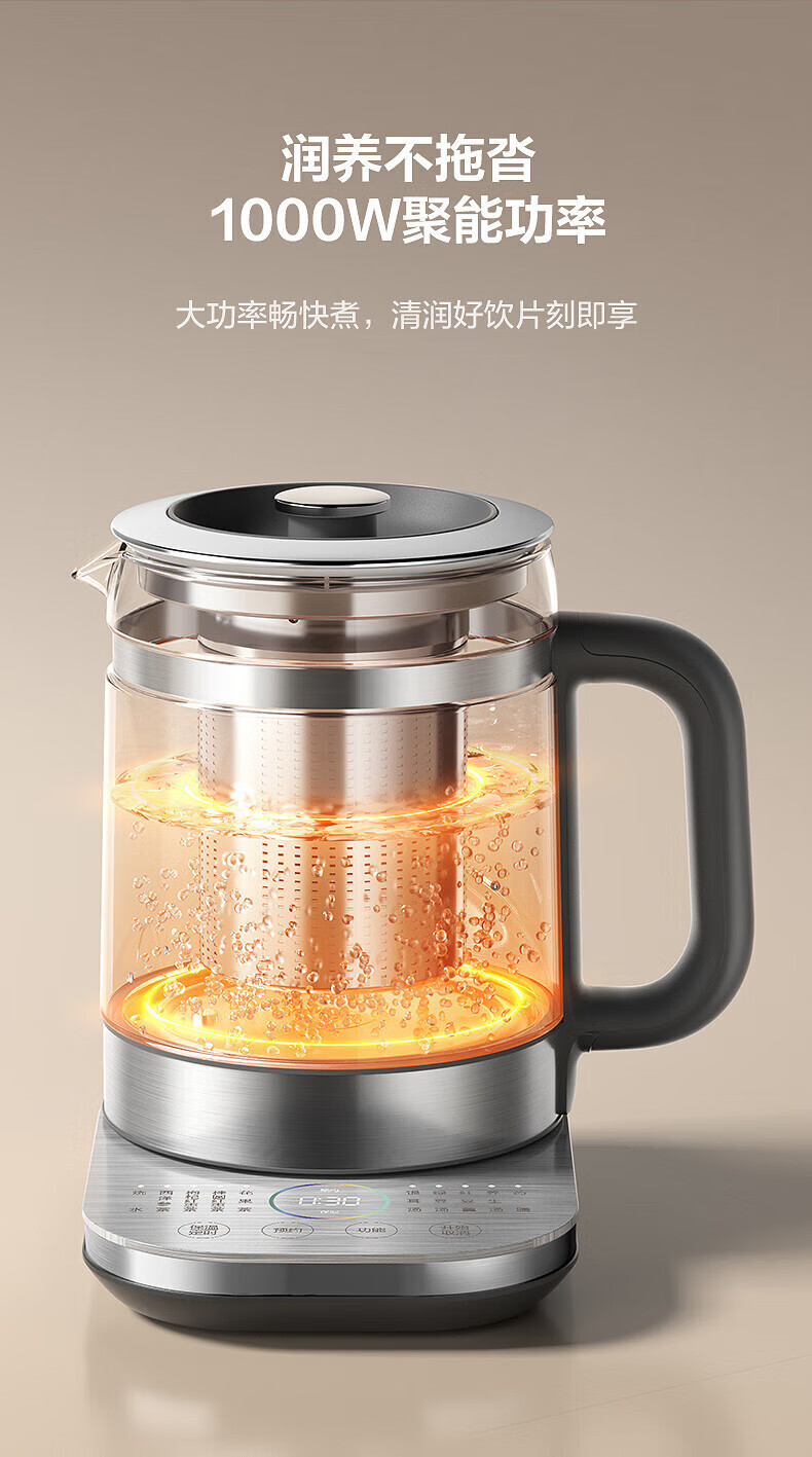 SUPOR has a titanium health kettle, 316L stainless steel thermostatic kettle, tea kettle, pure titanium heating chassis, glass panel kettle, enlarged filter 1.5L, large capacity, multi-stage heat preservation SW-15YJ55 1.5L