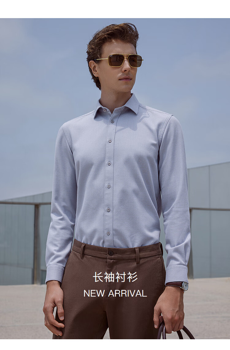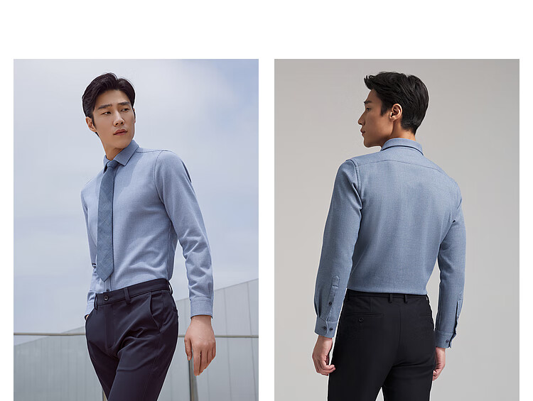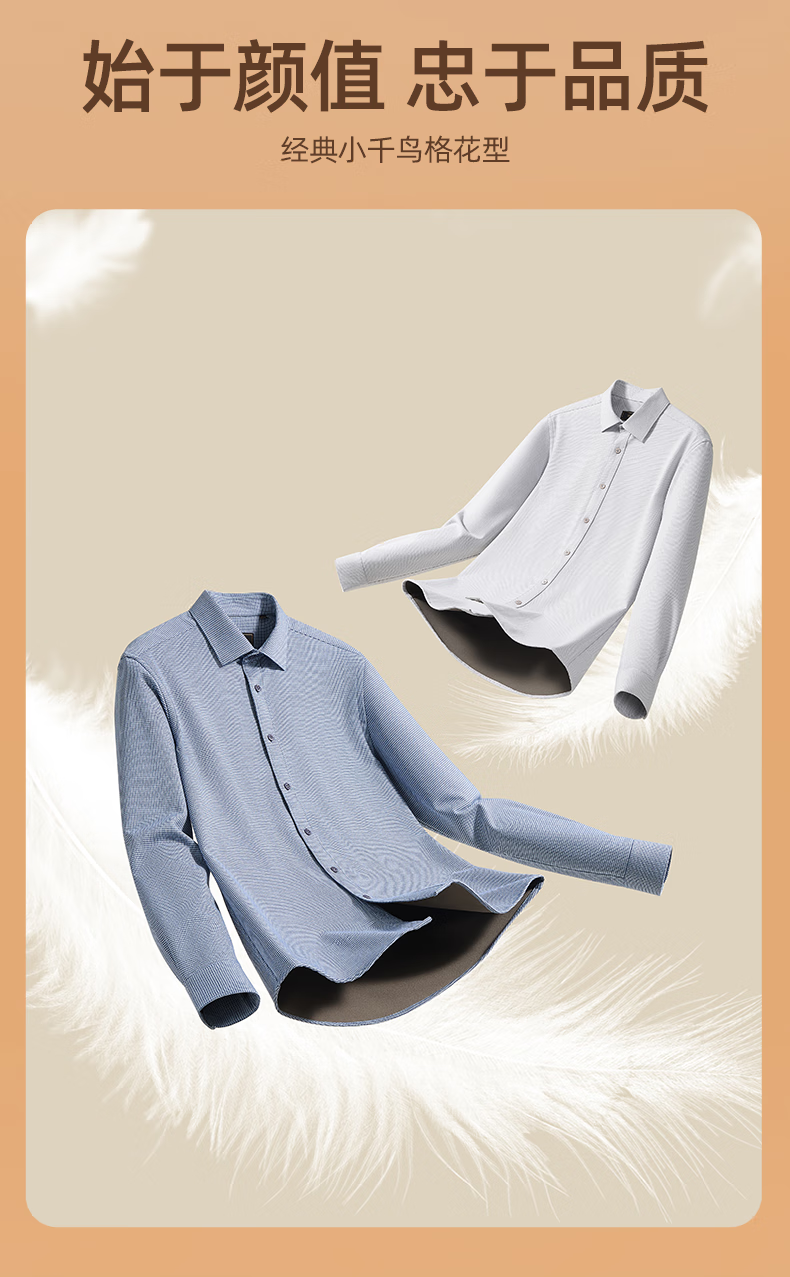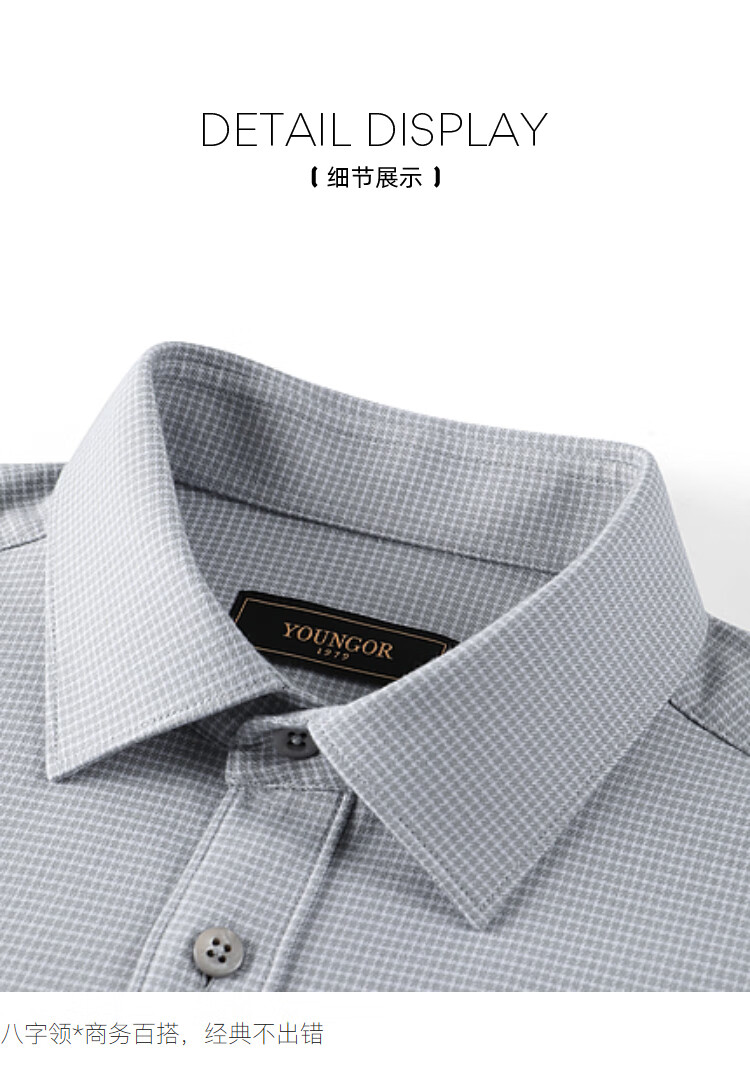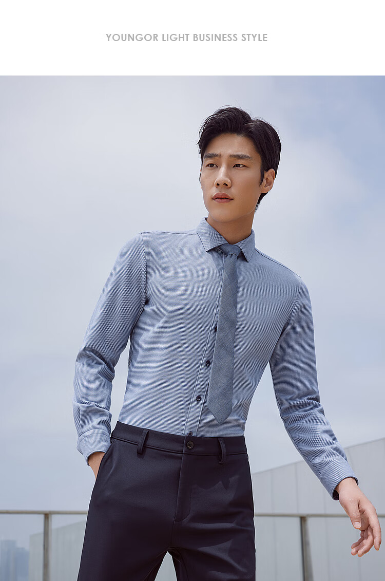 YOUNGOR long-sleeved shirt men's autumn and winter men's thermal shirt composite blended thermal liner warm and comfortable 2 colors blue plaid VLBN119704FBY 42