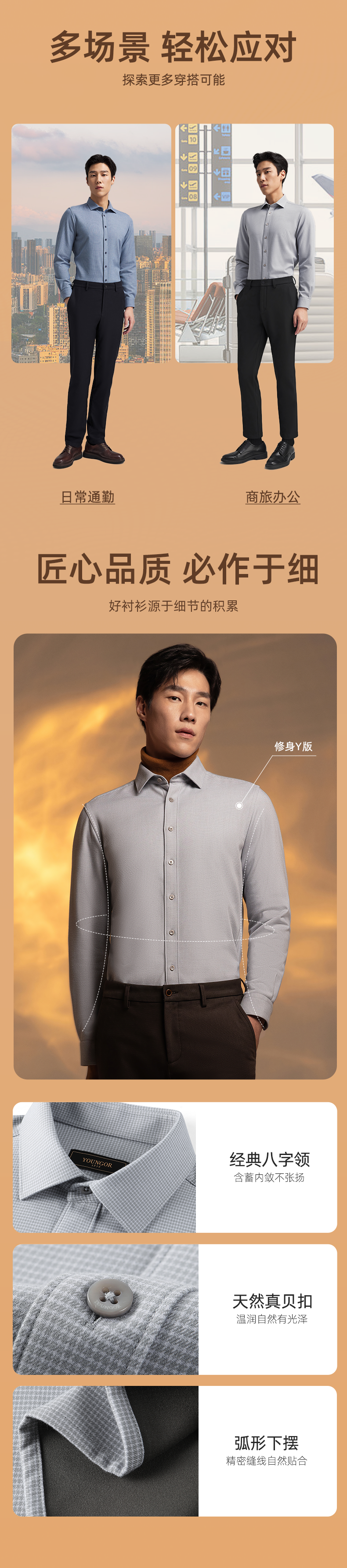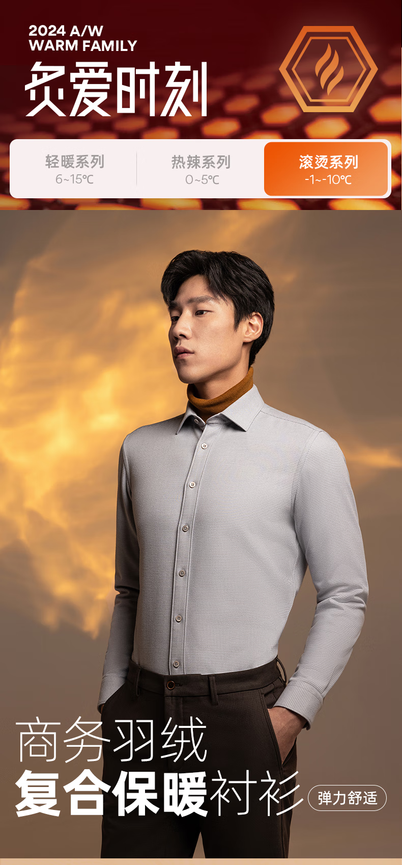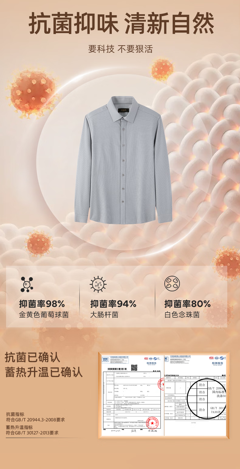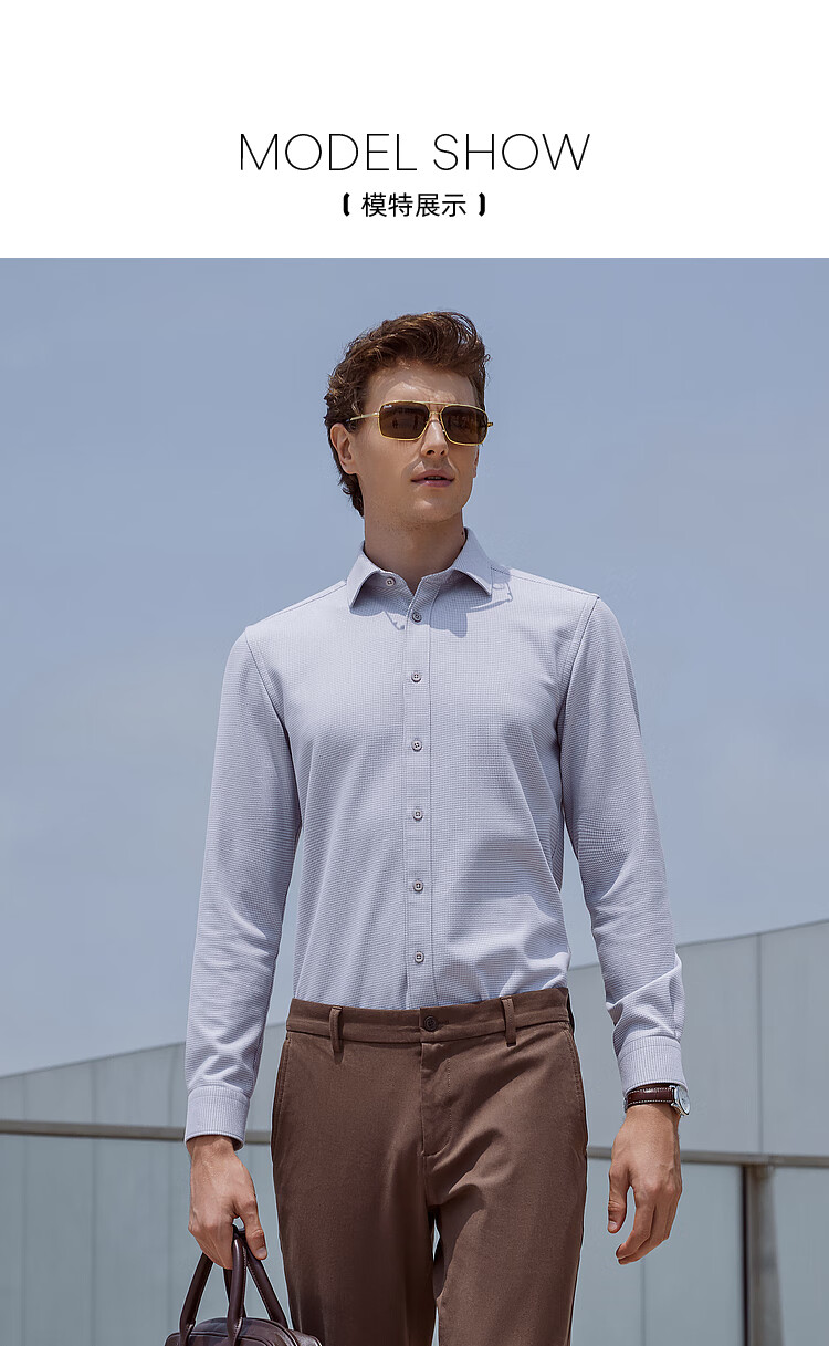 YOUNGOR long-sleeved shirt men's autumn and winter men's thermal shirt composite blended thermal liner warm and comfortable 2 colors blue plaid VLBN119704FBY 42