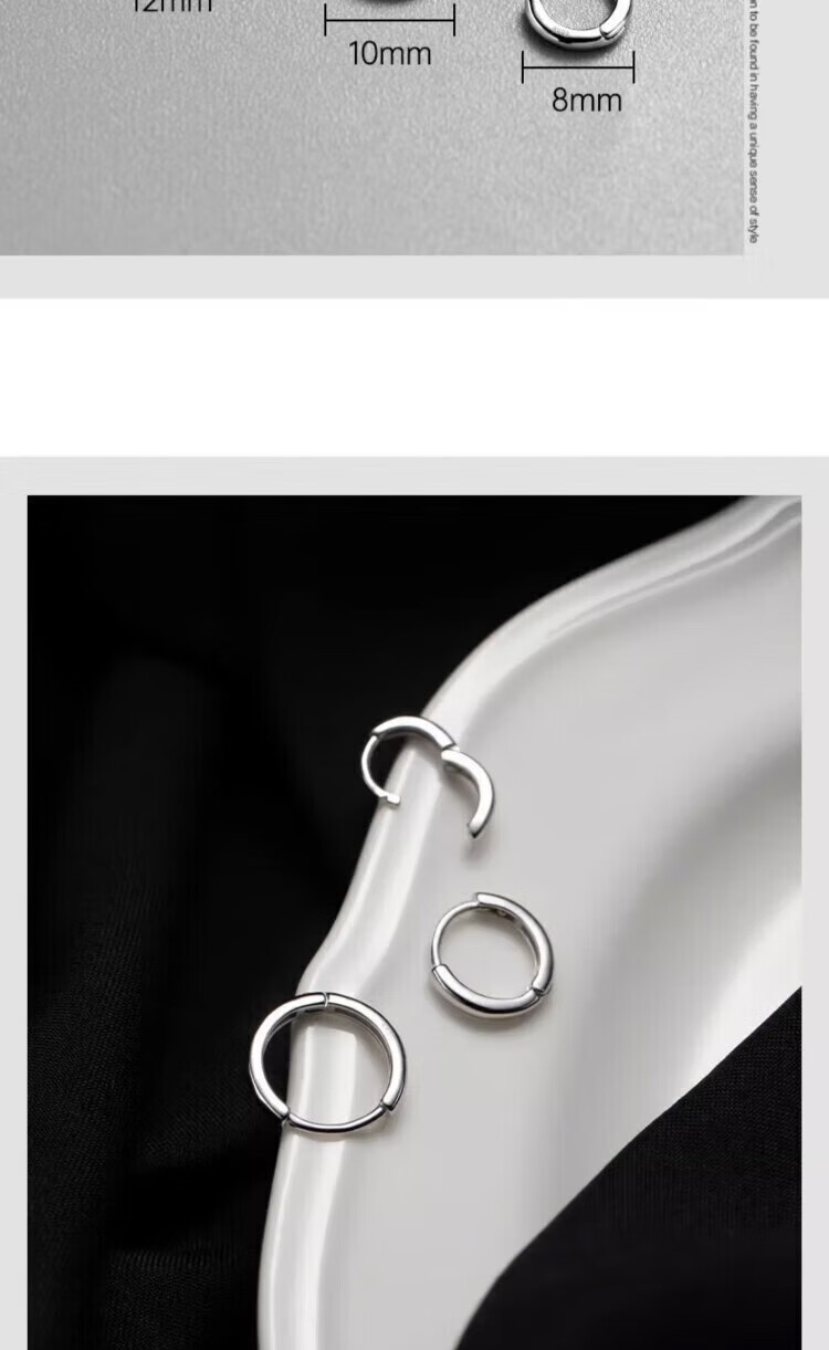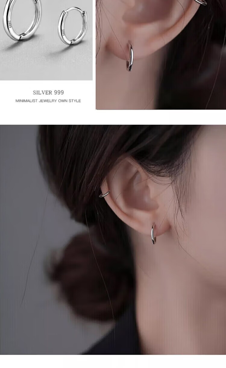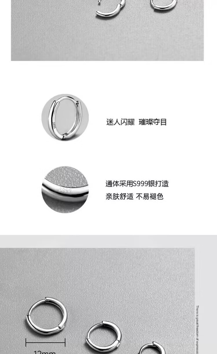 Idel pure silver earrings pure silver 999 earrings for women 2025 new temperament high-end anti-blocking earrings birthday gift 12mm ear piercing plain earrings E3072
