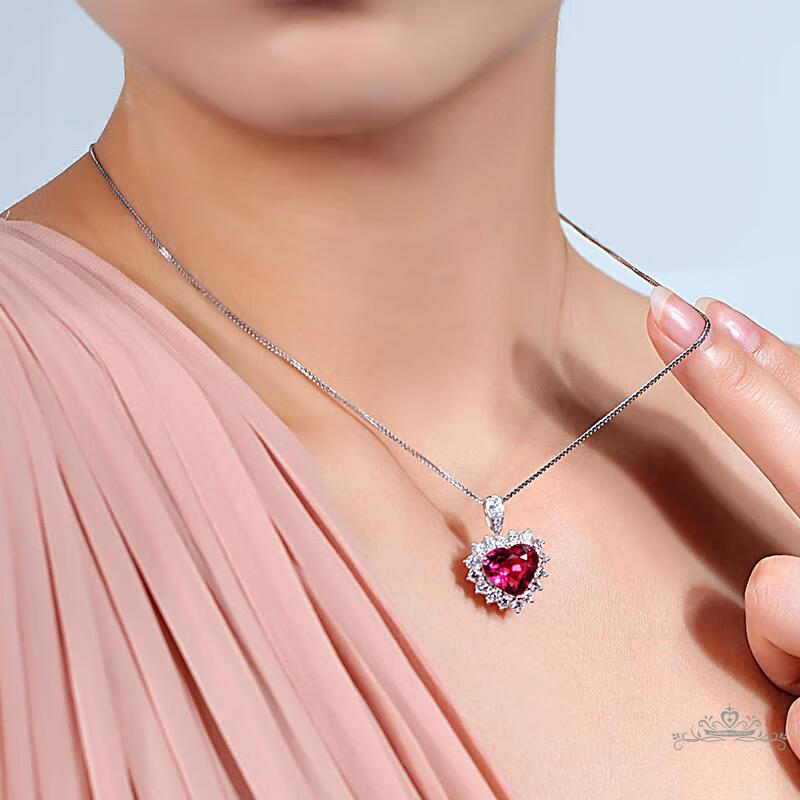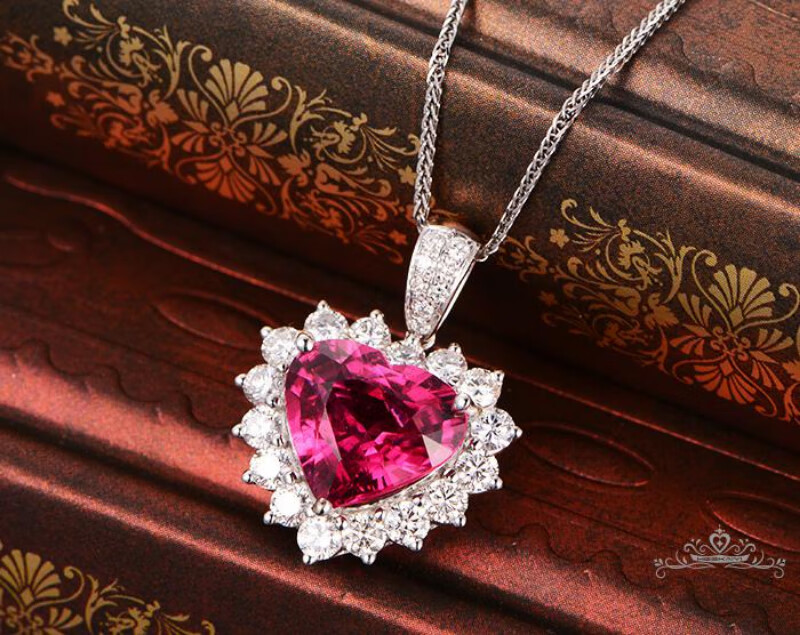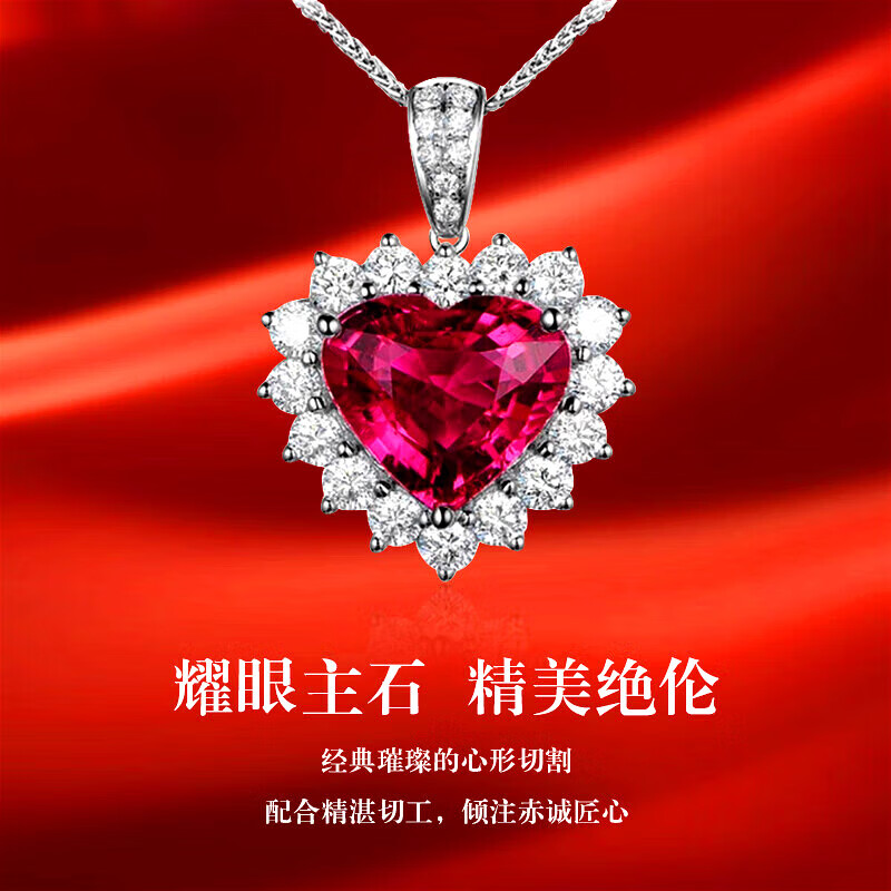 Haikai Necklace Women's Ruby Necklace Luxury Jewelry Valentine's Day Birthday Gift for Wife or Girlfriend 4.45 Carat Pigeon Blood Tourmaline Heart Shape Necklace (/Selected Flawless)
