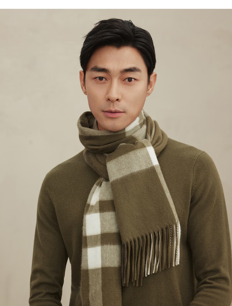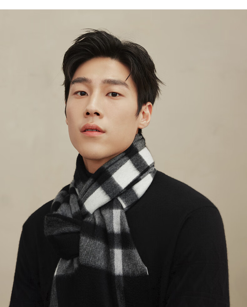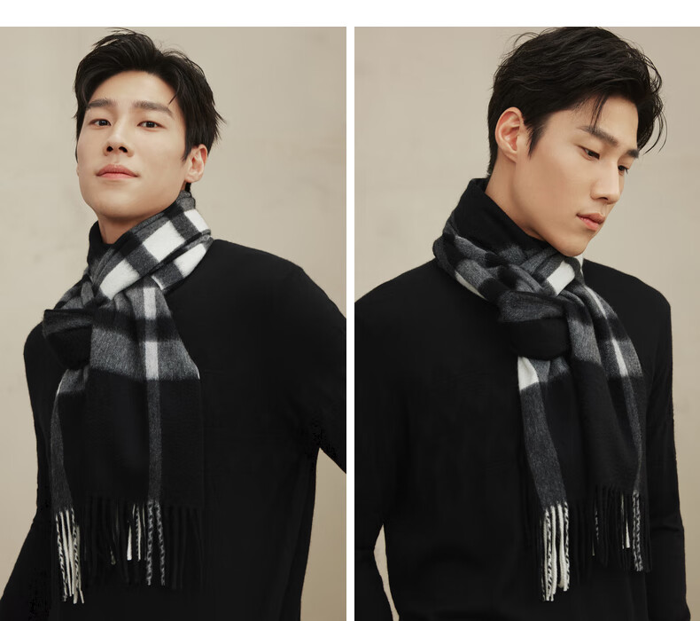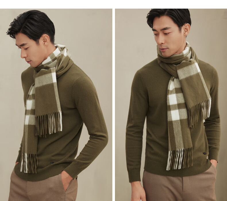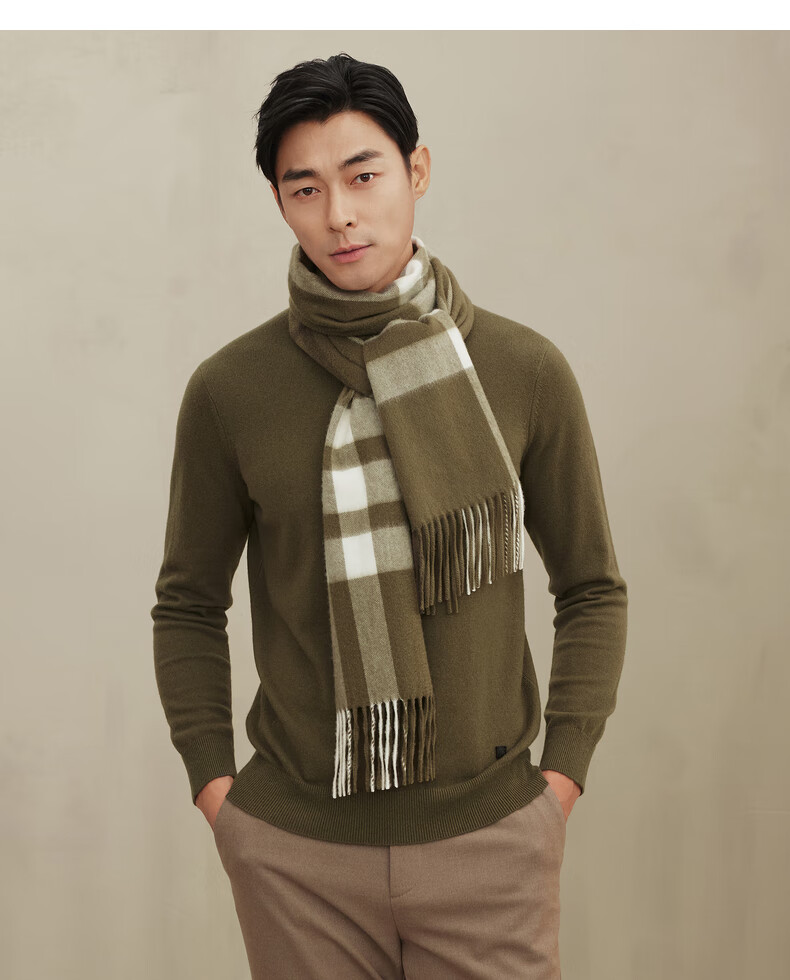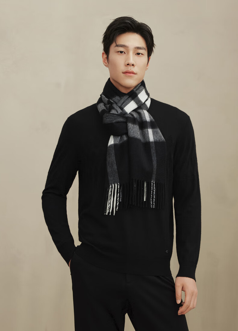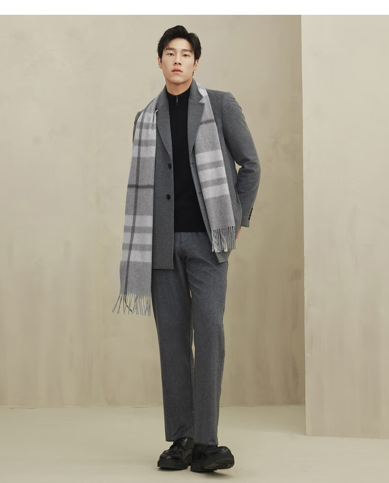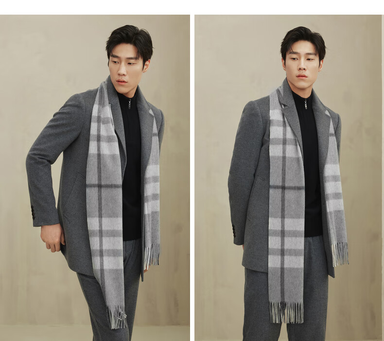 Ordos 1980 autumn and winter pure cashmere water pattern men's comfortable and versatile long scarf, elegant gray 190cmX30cm
