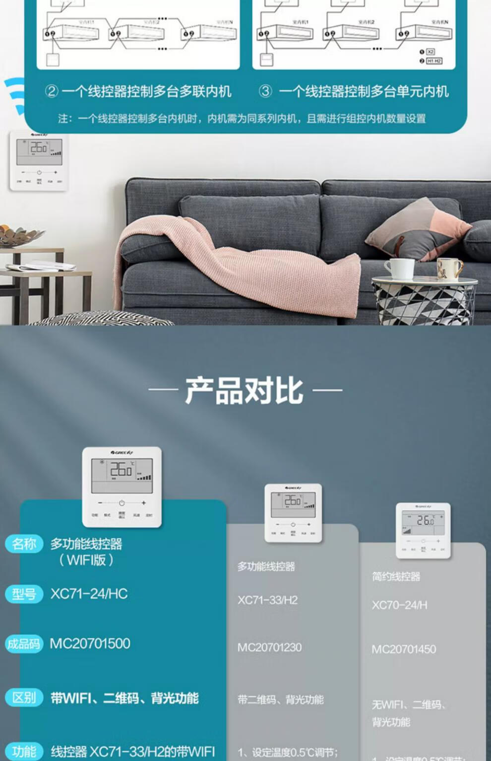 Original Gree wire controller XC71-24/HC mobile phone WIFI remote control C3 duct machine K+ control panel with WIFI with backlight new XC71-24/HCB1