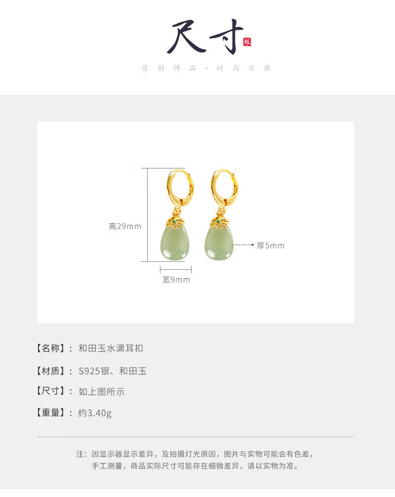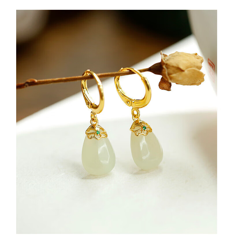 Ancient Hetian Jade Earrings for Women 2025 New Silver Earrings Birthday Gifts for Women Light Luxury Niche High-end and Practical White Jade Water Drops Hetian Jade Silver Earrings-Gift Box