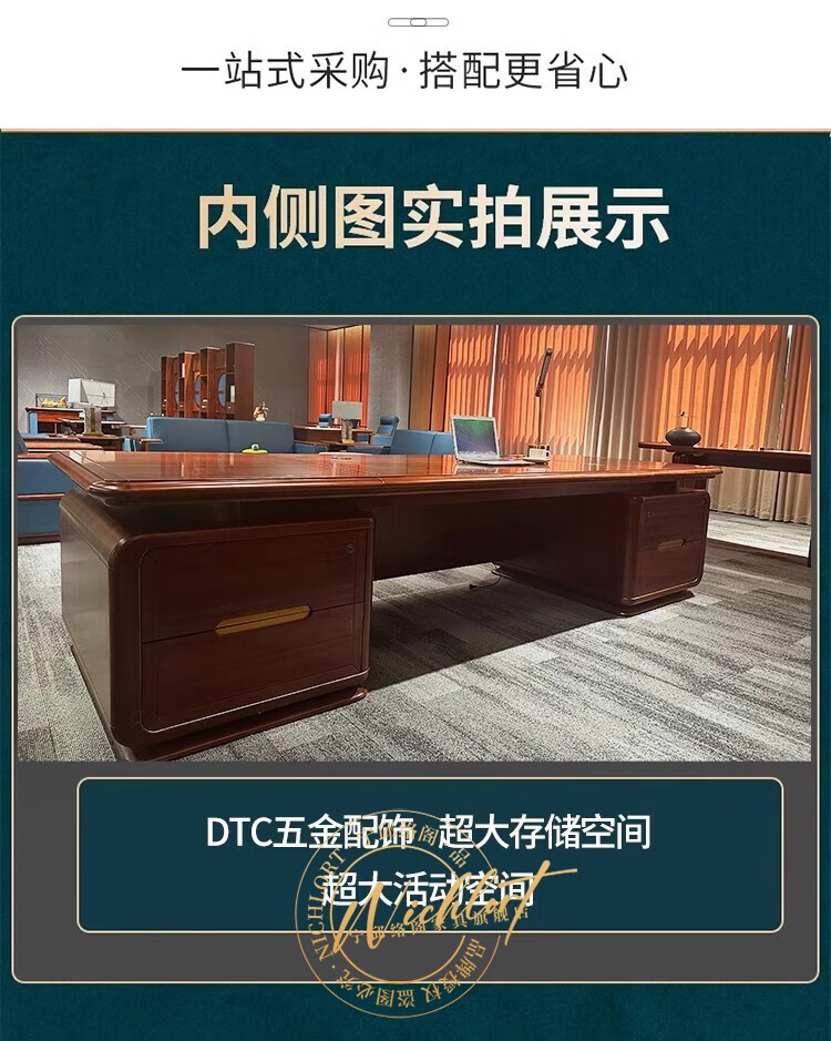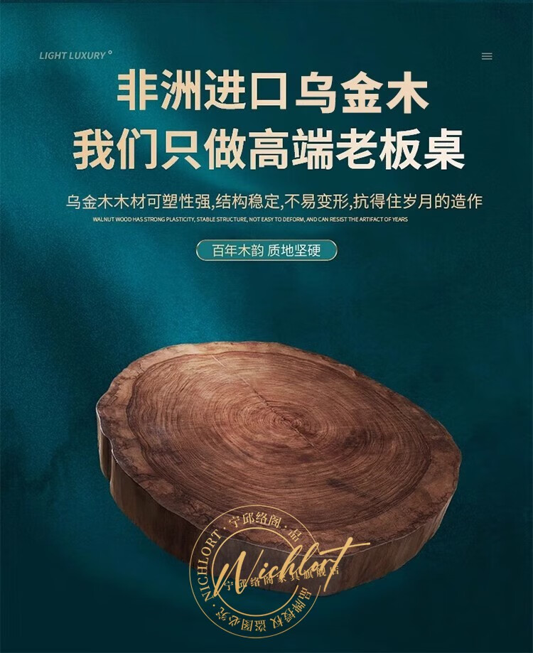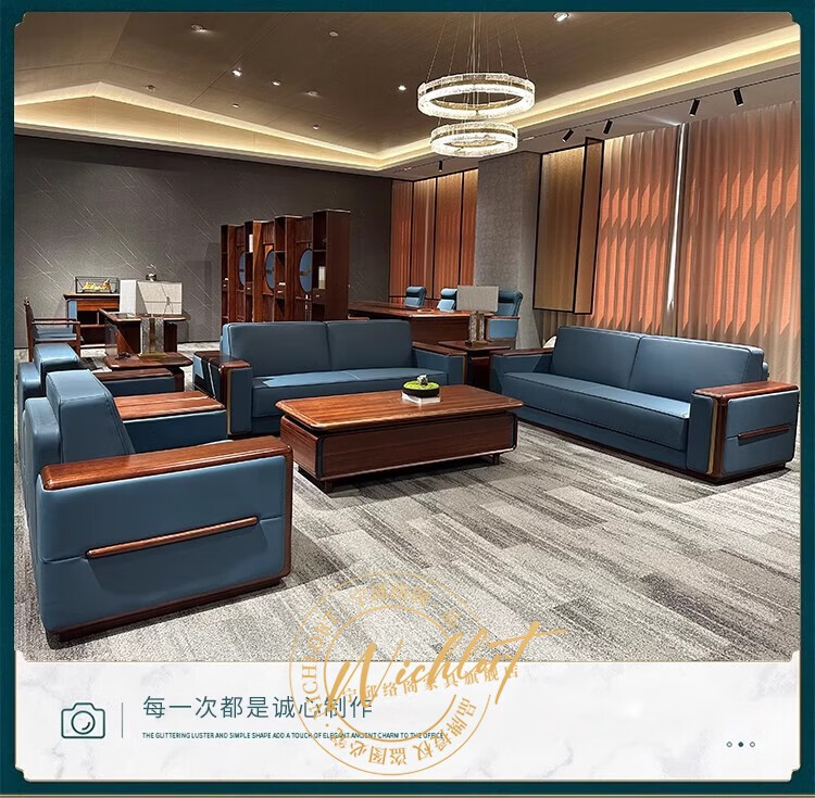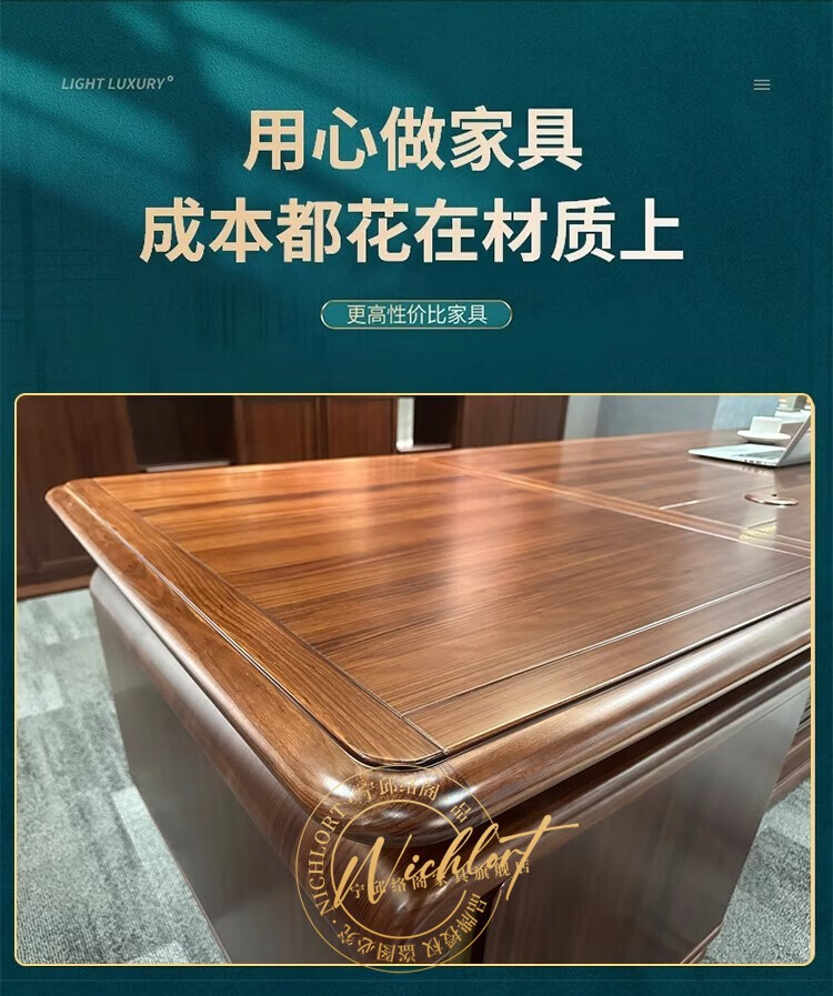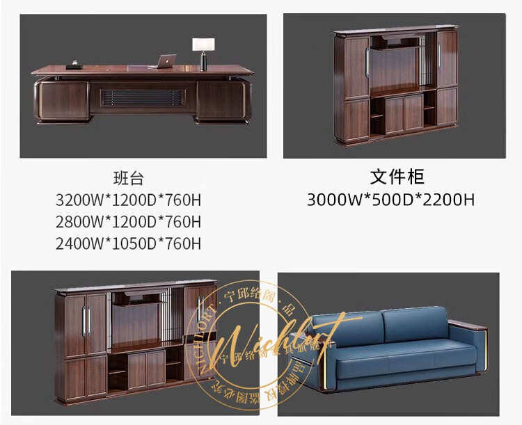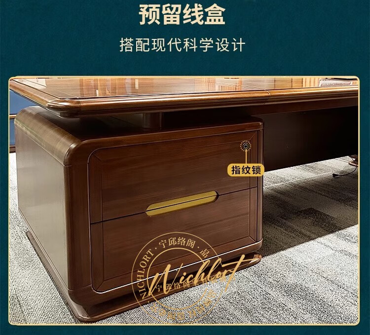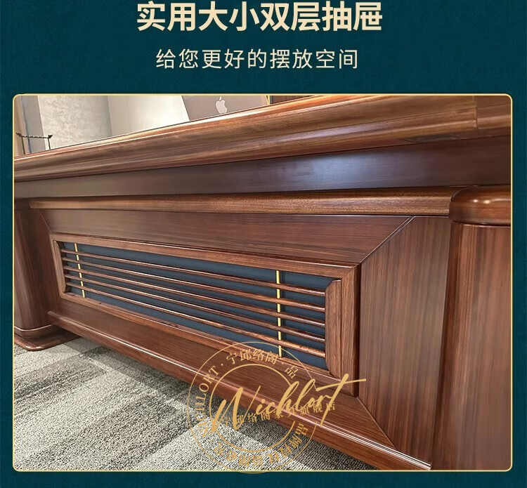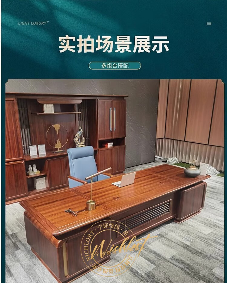 Ningqiu Luoge (NICHLORT) new Chinese style solid wood boss president desk and chair office desk ebony wood frame executive desk tea table table file cabinet sofa boss chair first layer cowhide
