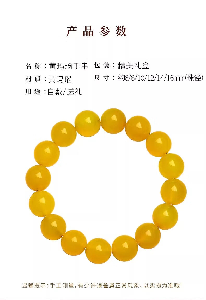 Baoxin Fanrui BOSFRU natural yellow agate bracelet for men and women chalcedony jade loose beads crystal bracelet beads birth year transfer beads gift yellow agate-6mm