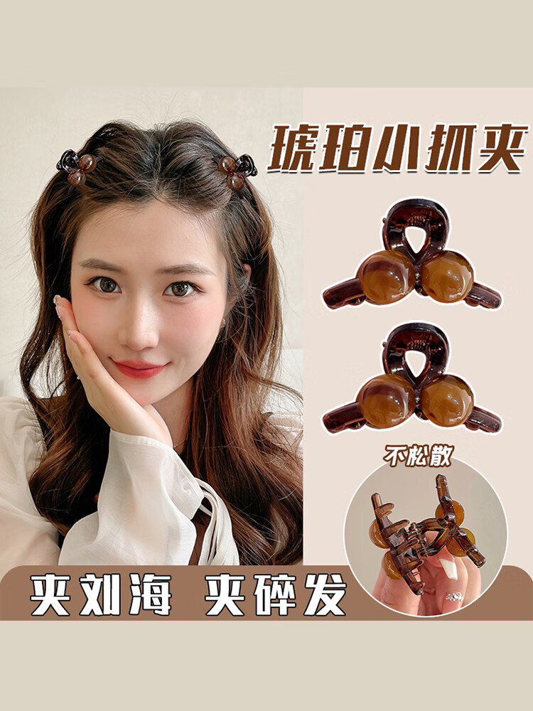 Tang Funi Amber Cherry Small Clip Women's 2024 New Hairpin Princess Head Bangs Clip Broken Hair Clip Shark Clip Hair Accessory Amber Ball Small Clip Pair