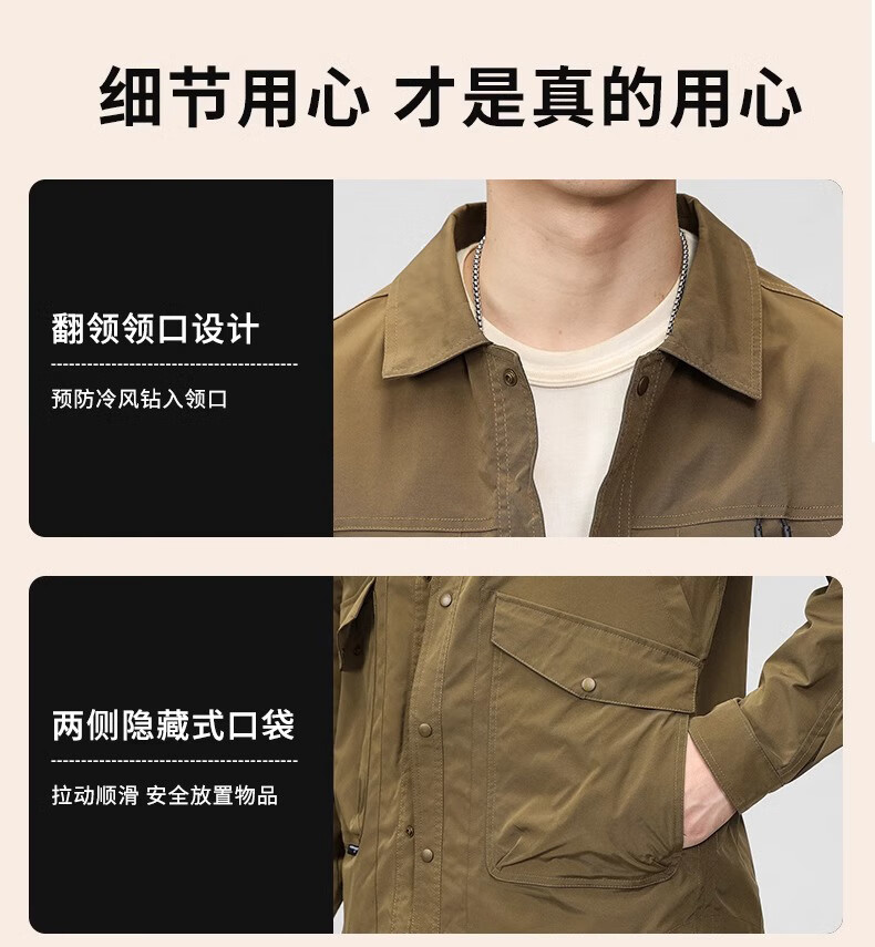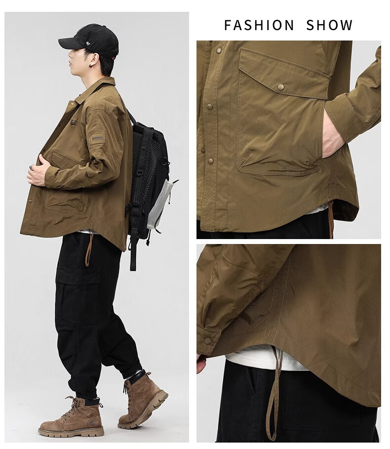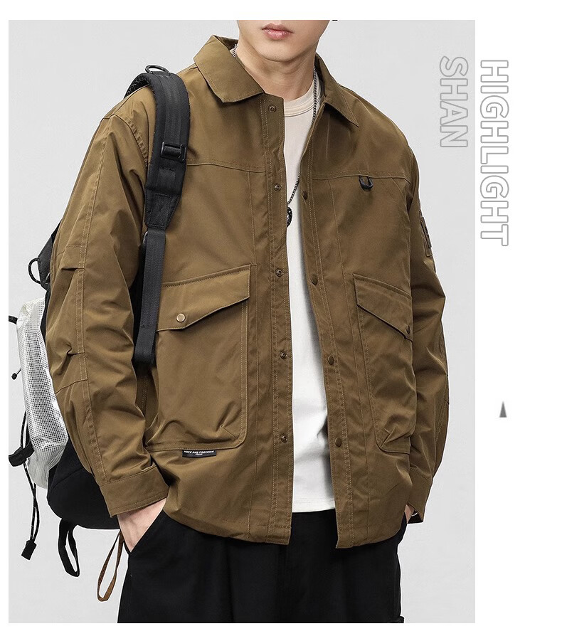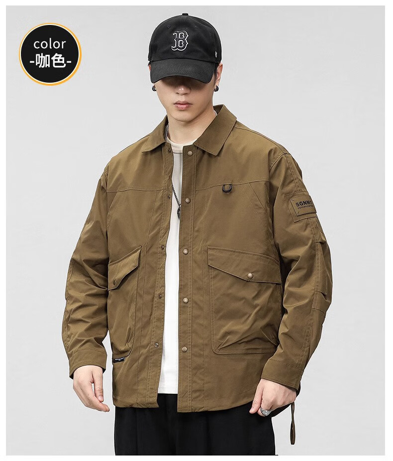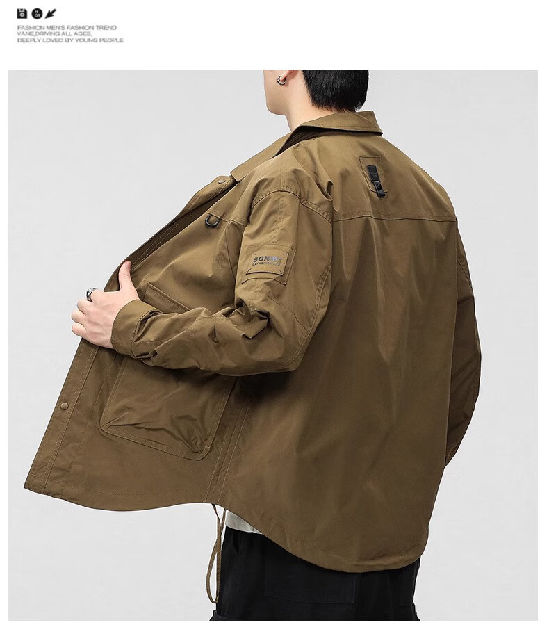 Jeanswest 2025 New Trendy Brand Jacket Men's American Spring and Autumn Workwear Outdoor Autumn Lapel Boys' Jacket BG-61005 Brown XL