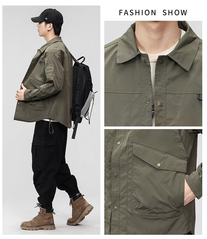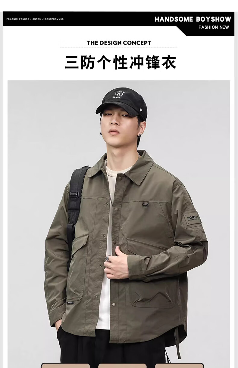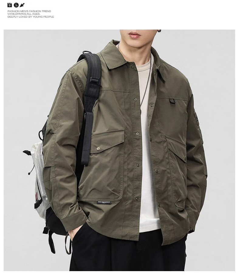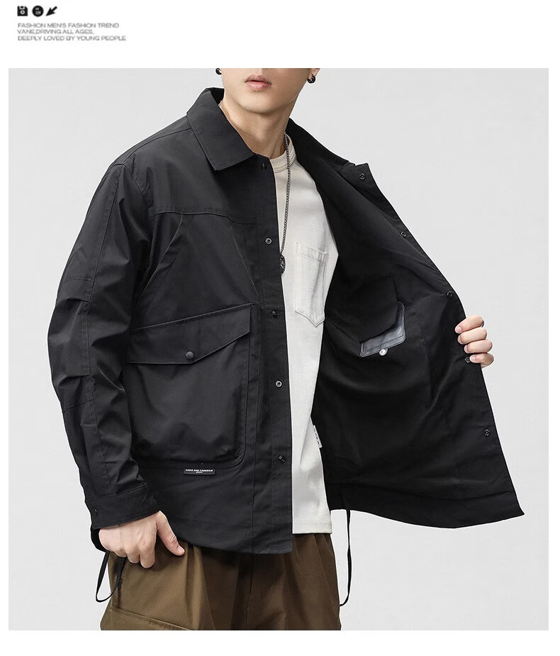 Jeanswest 2025 New Trendy Brand Jacket Men's American Spring and Autumn Workwear Outdoor Autumn Lapel Boys' Jacket BG-61005 Brown XL