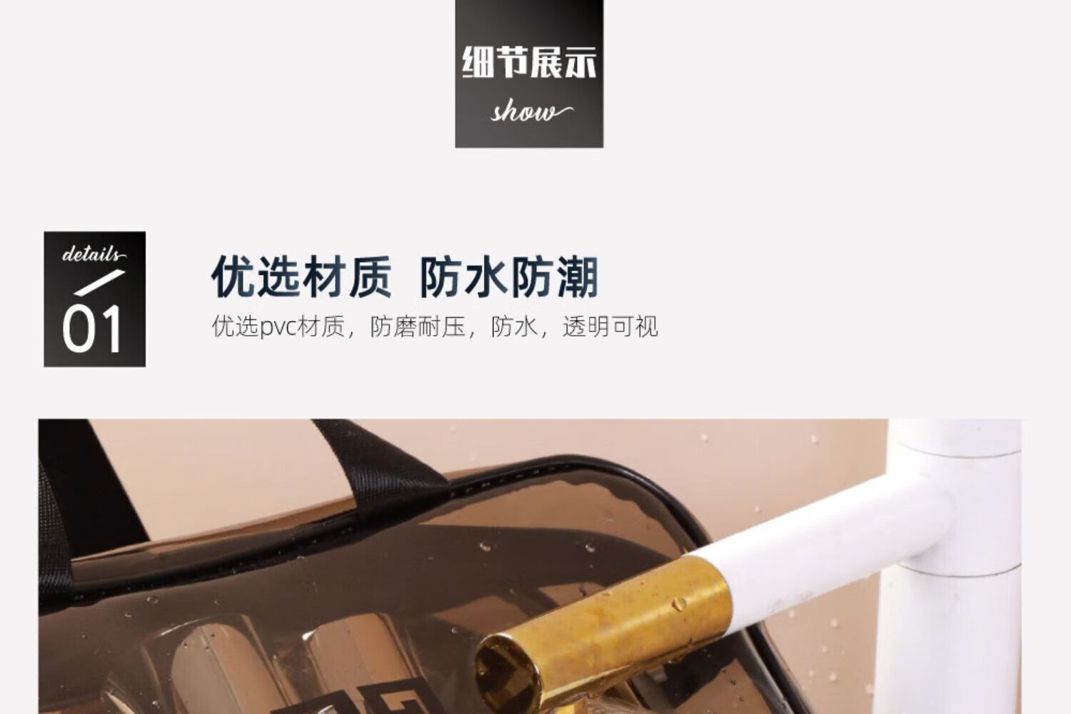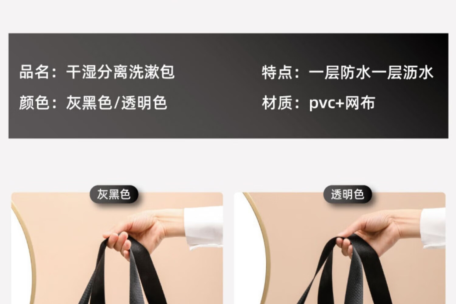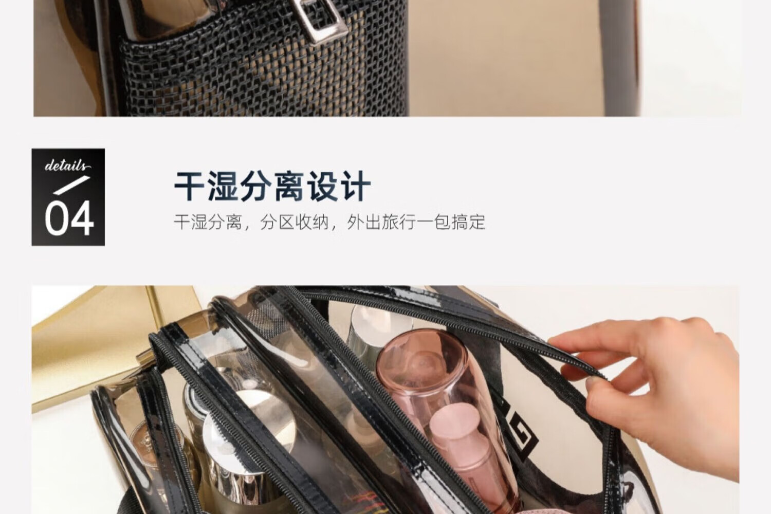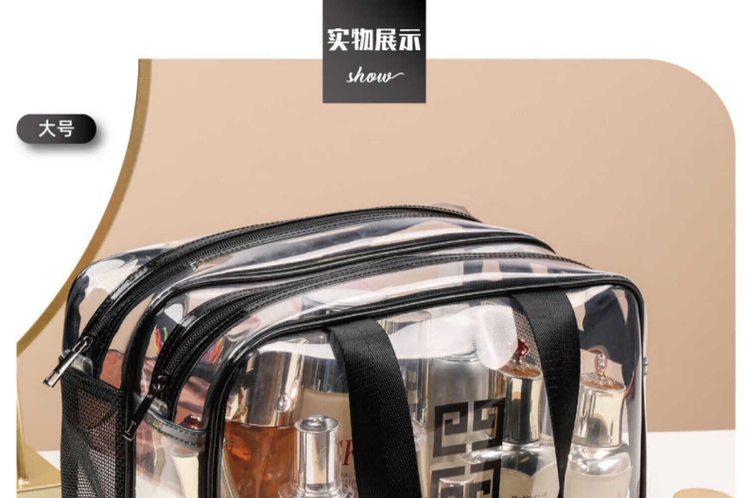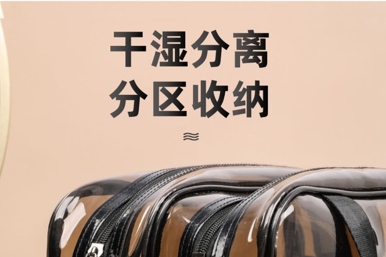 JD Logistics Wet and Dry Separation Swimming Bag PU Waterproof Cosmetic Bag Portable Large Capacity Transparent Travel Wash Bag Single Layer Medium-Transparent