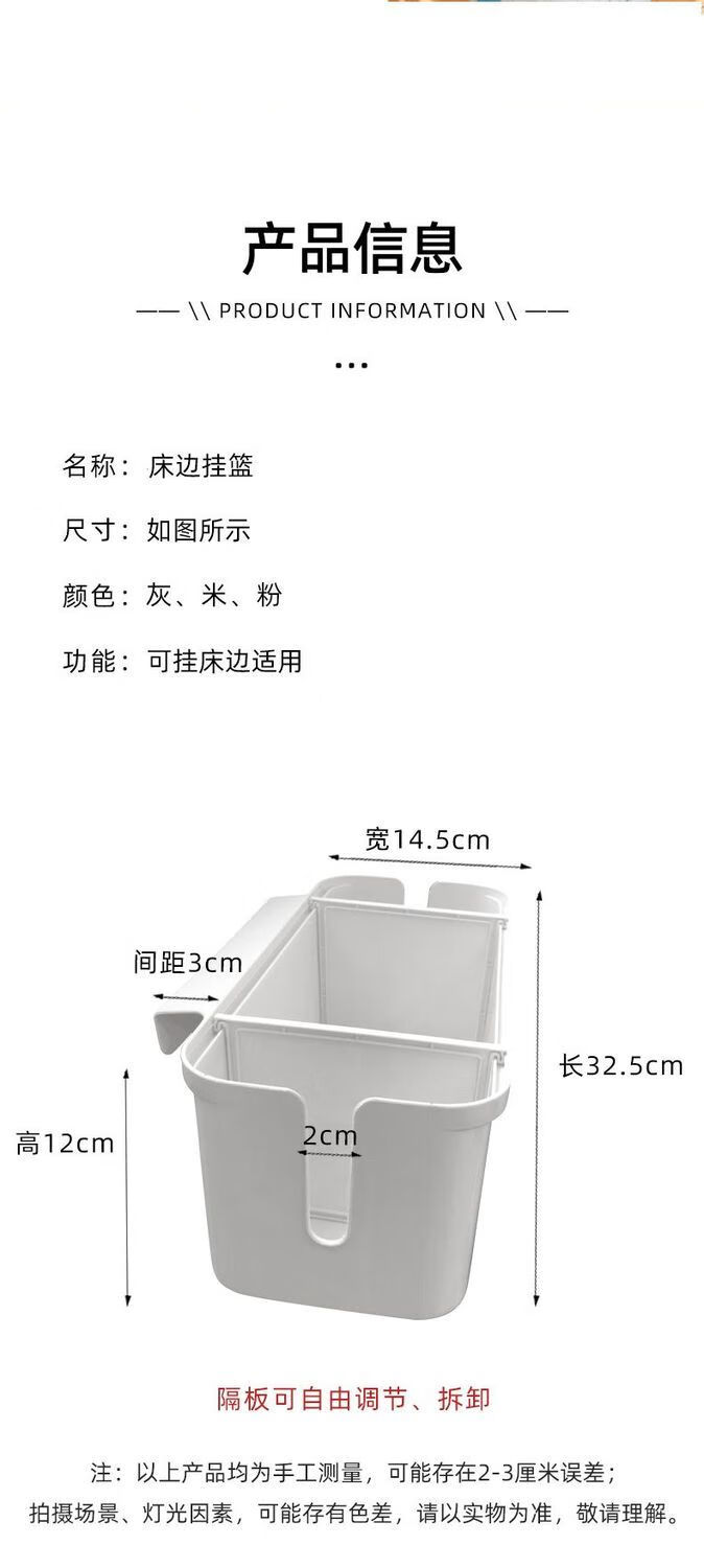 Qingxu crib hanging storage hanging basket diaper bedside diaper storage bag dormitory bed hanging bag bed fence storage box cream white partitions adjustable