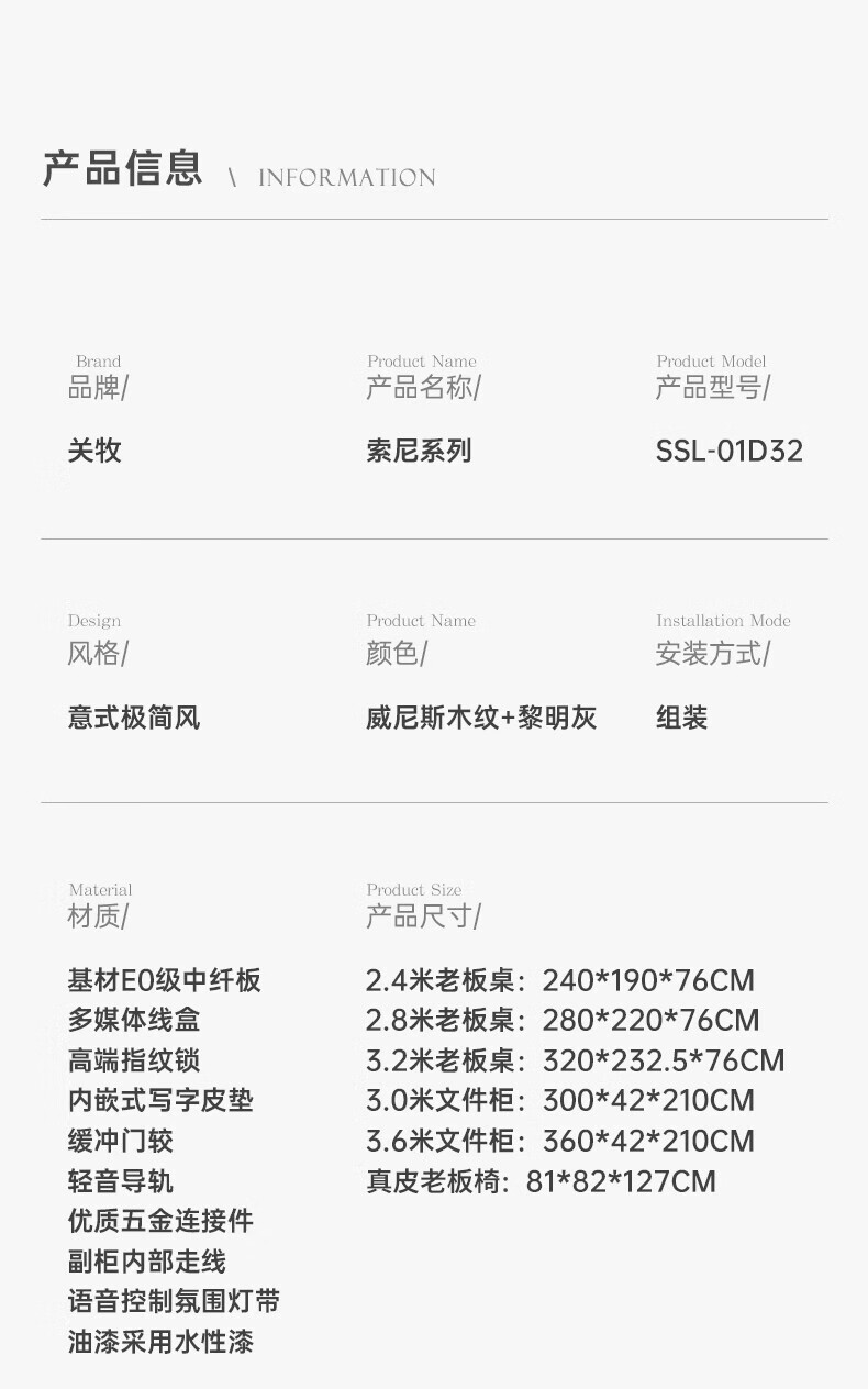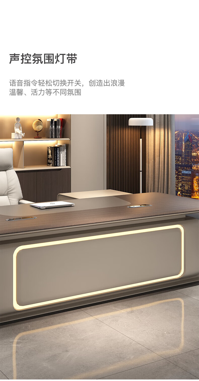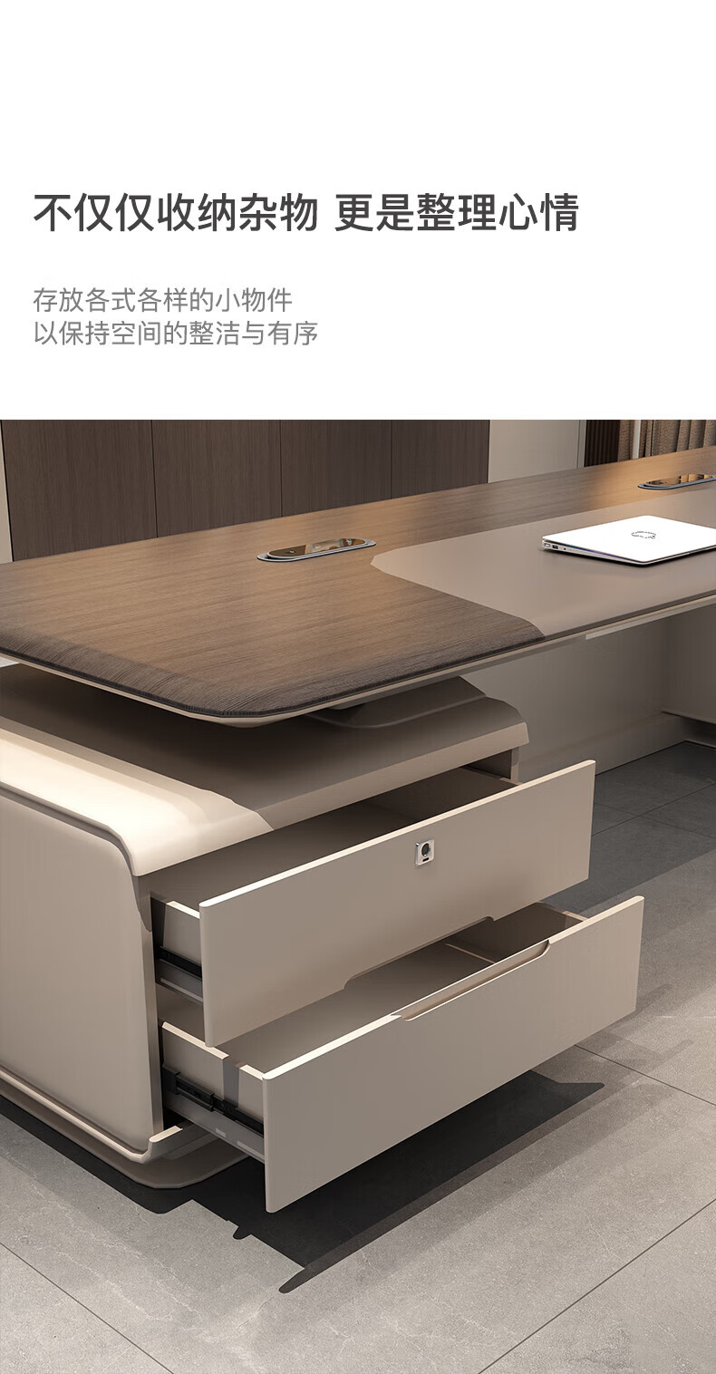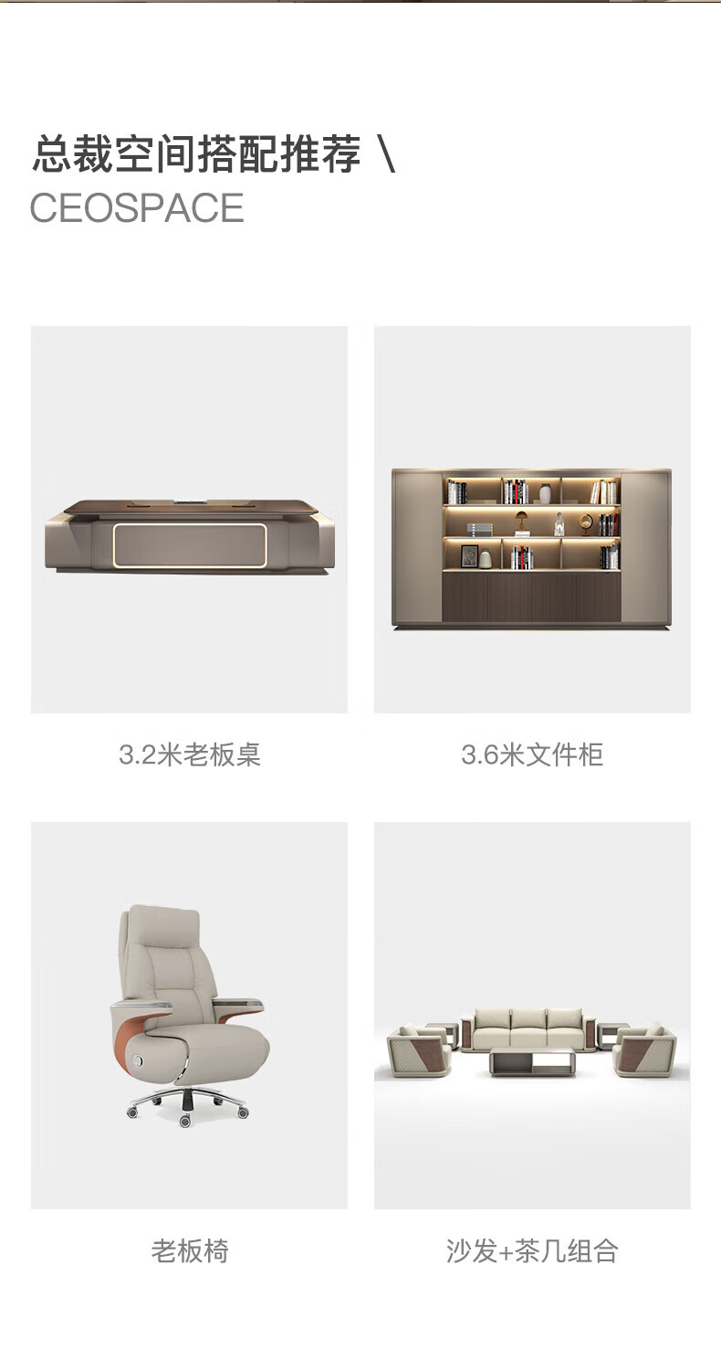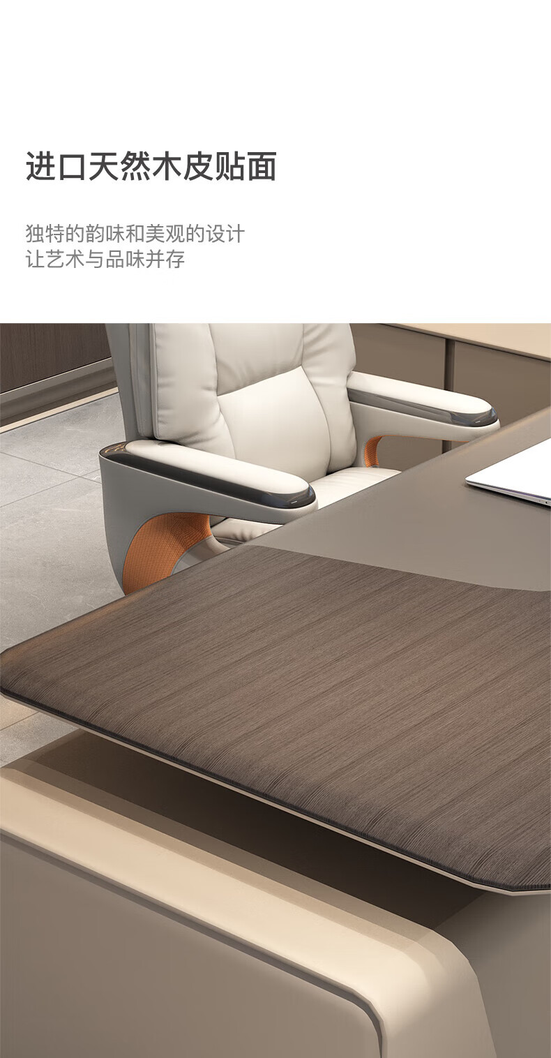 Guan Mu E0 level environmental protection high-end chairman's desk president's desk minimalist boss desk office furniture complete set 2.8 meters table + leather electric chair + 3.6 meters filing cabinet