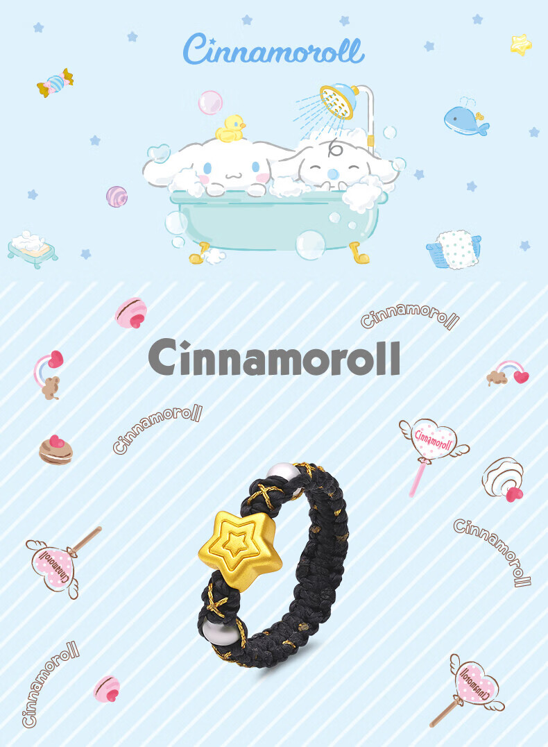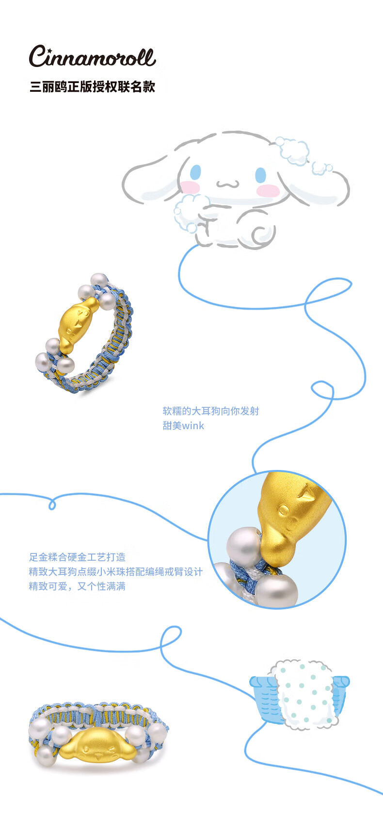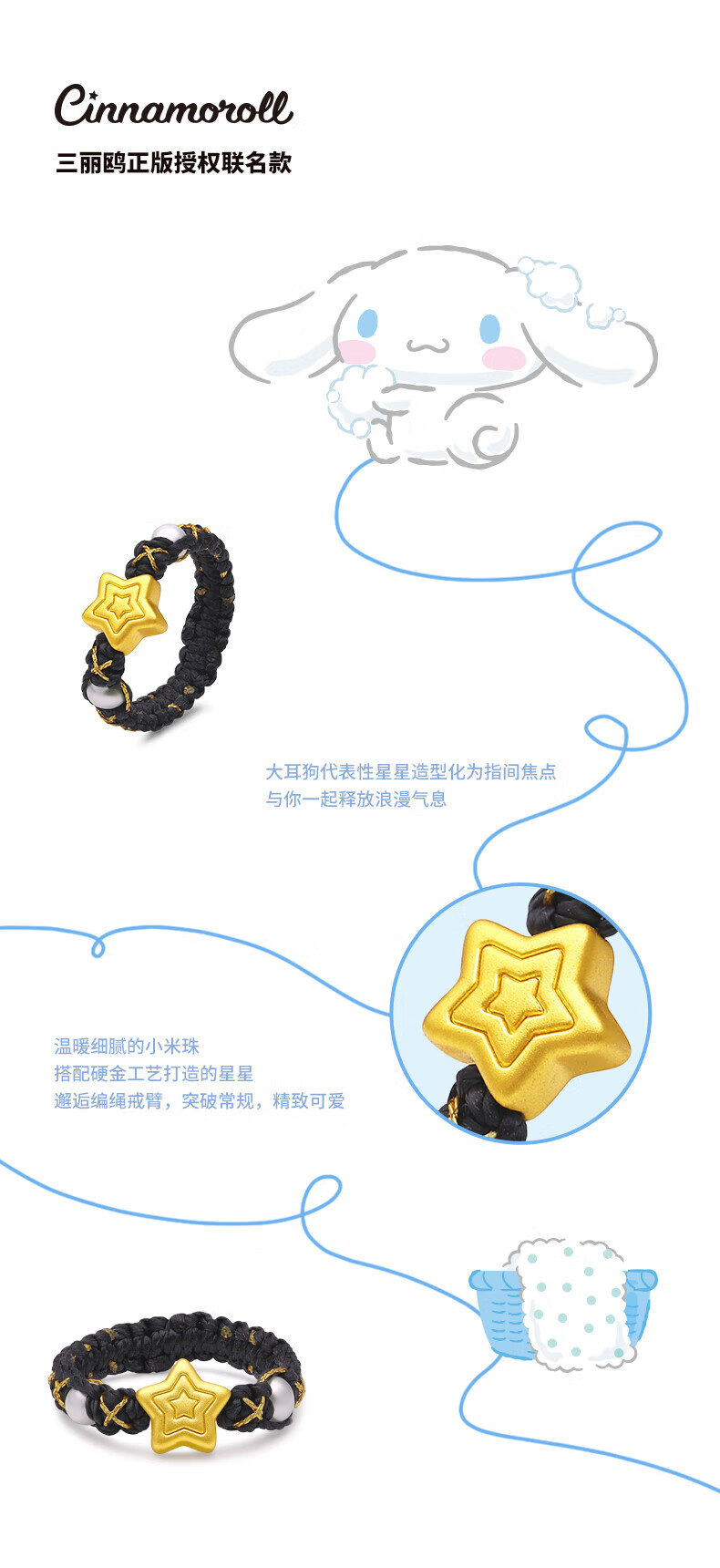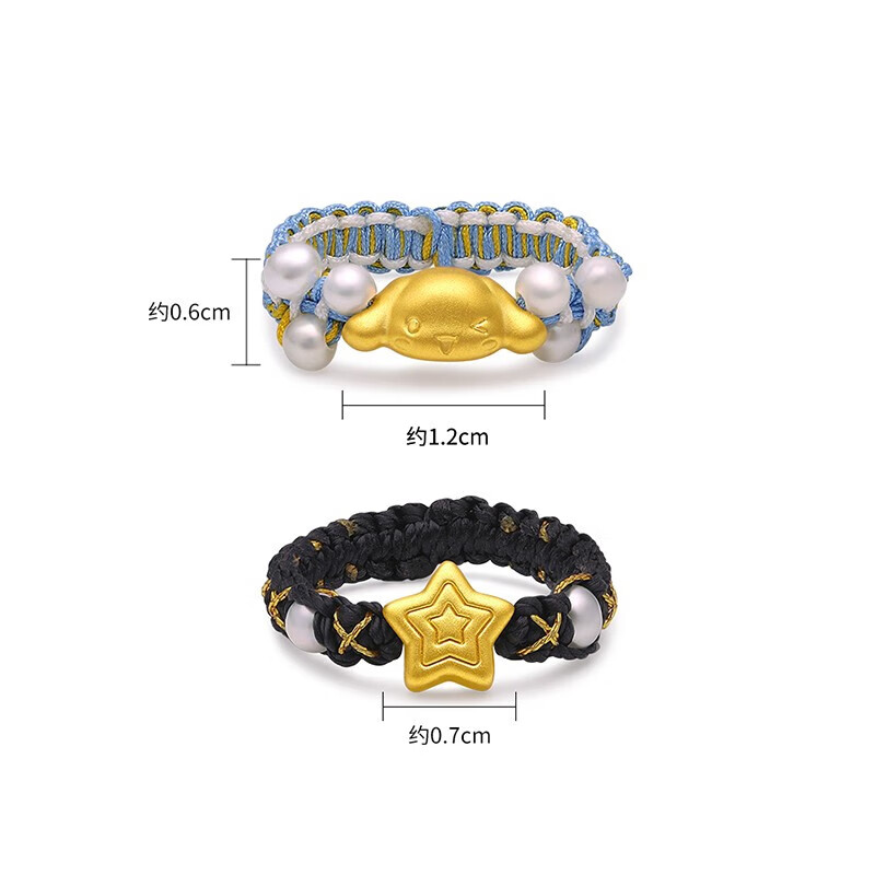 Chao Acer Sanrio big-eared dog gold pearl ring pure gold star ring birthday gift for women star elastic rope