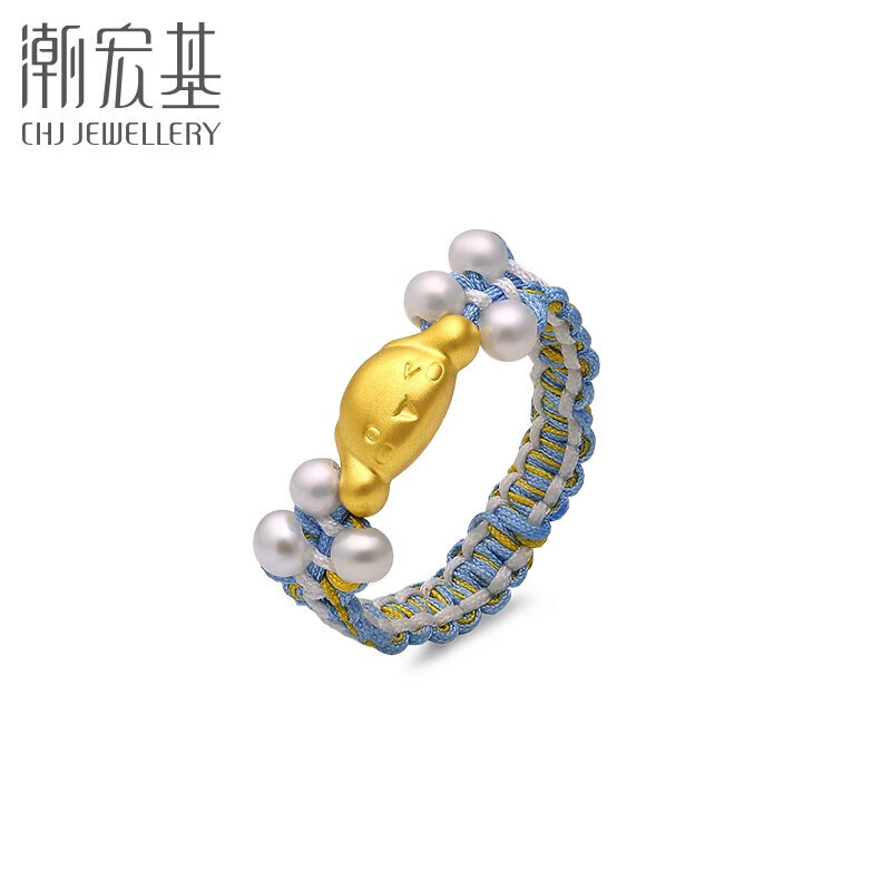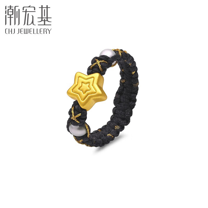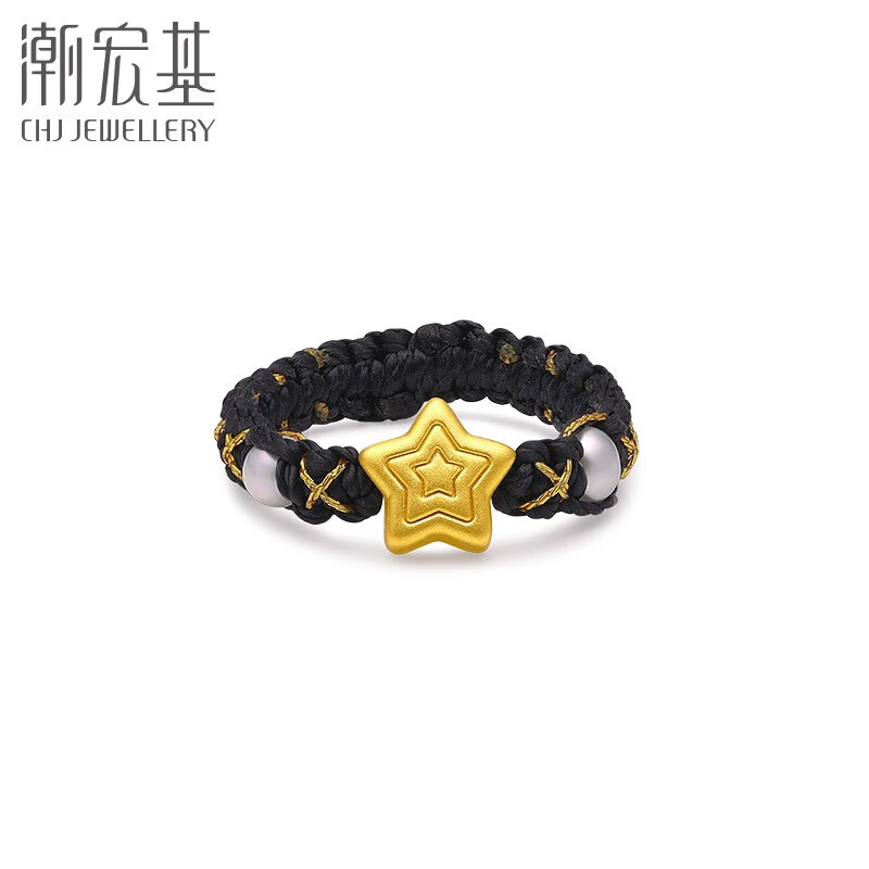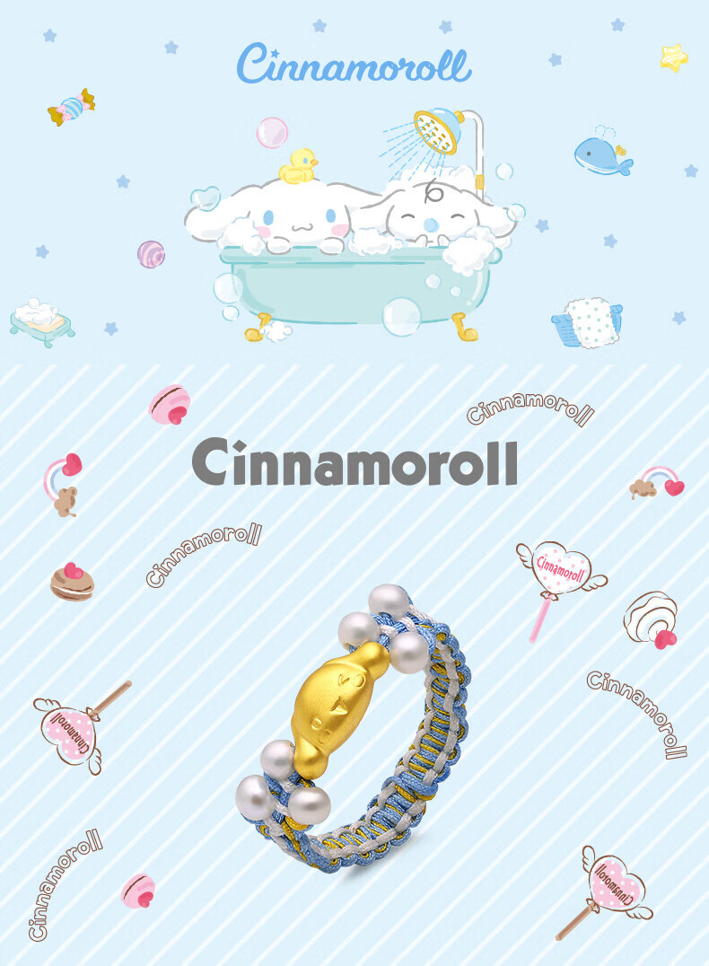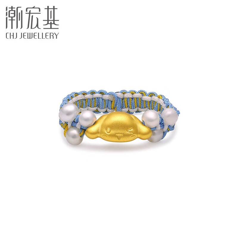 Chao Acer Sanrio big-eared dog gold pearl ring pure gold star ring birthday gift for women star elastic rope
