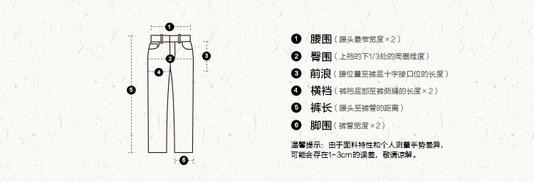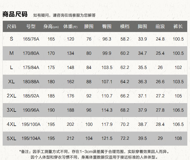 Outseam (cm) 99 cm 101.5 cm 104 cm 106.5 cm 109 cm