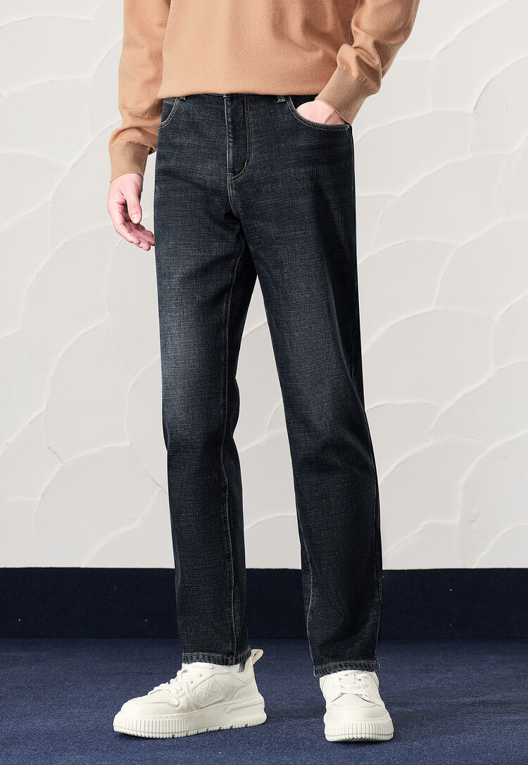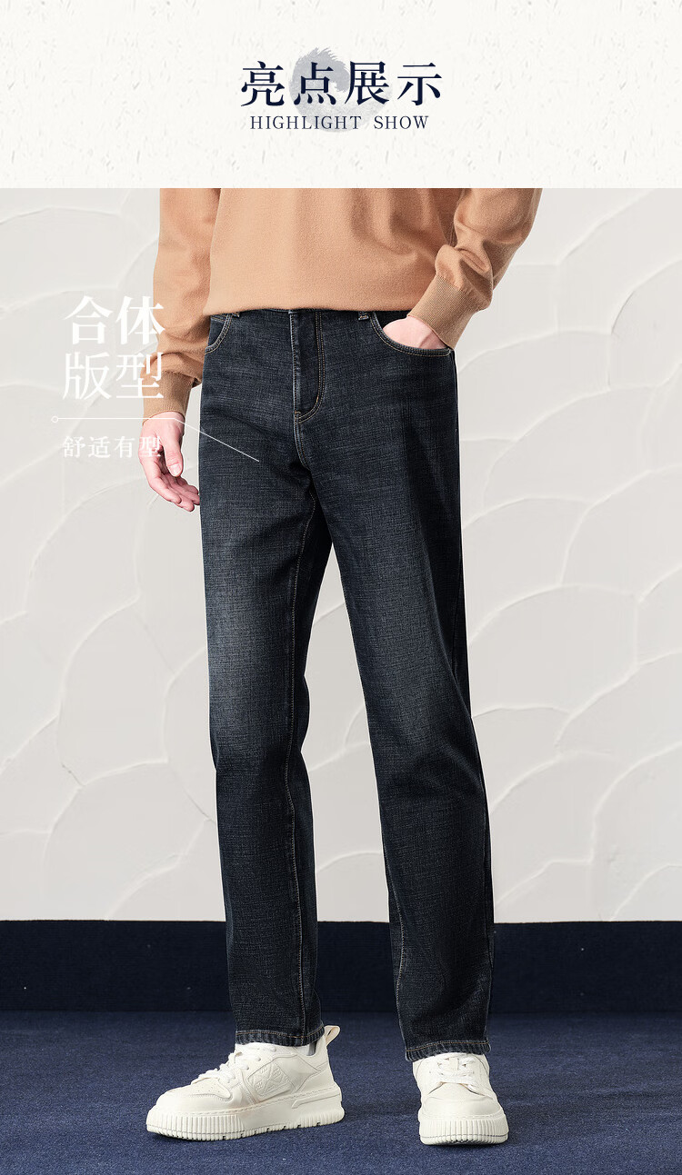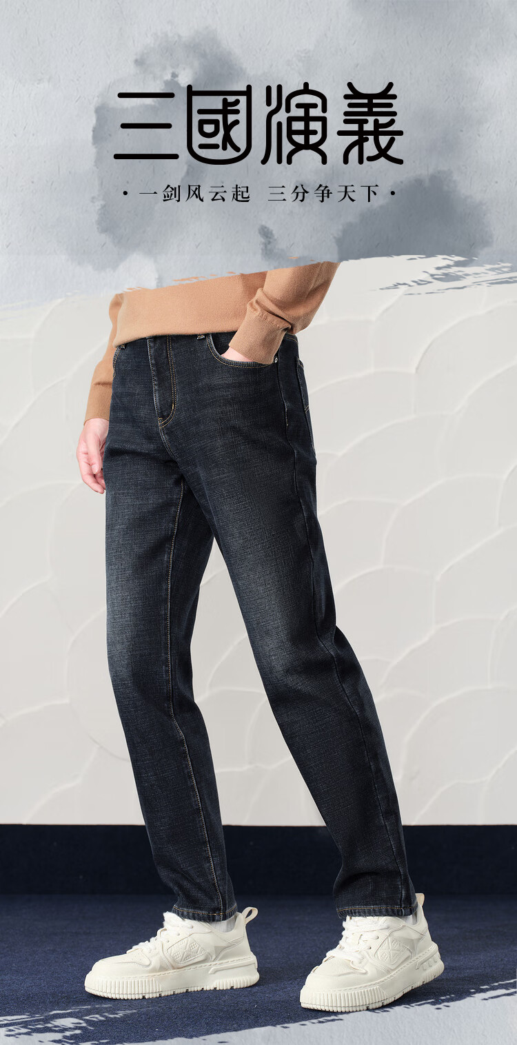 Heilan House (HLA) velvet jeans for men, Romance of the Three Kingdoms, five-pocket warm pants for men, spring and autumn, new retro revival, denim blue transition color (dark) 4F L 175/84A recommended 135~148Jin Jin equals 0.5 kg