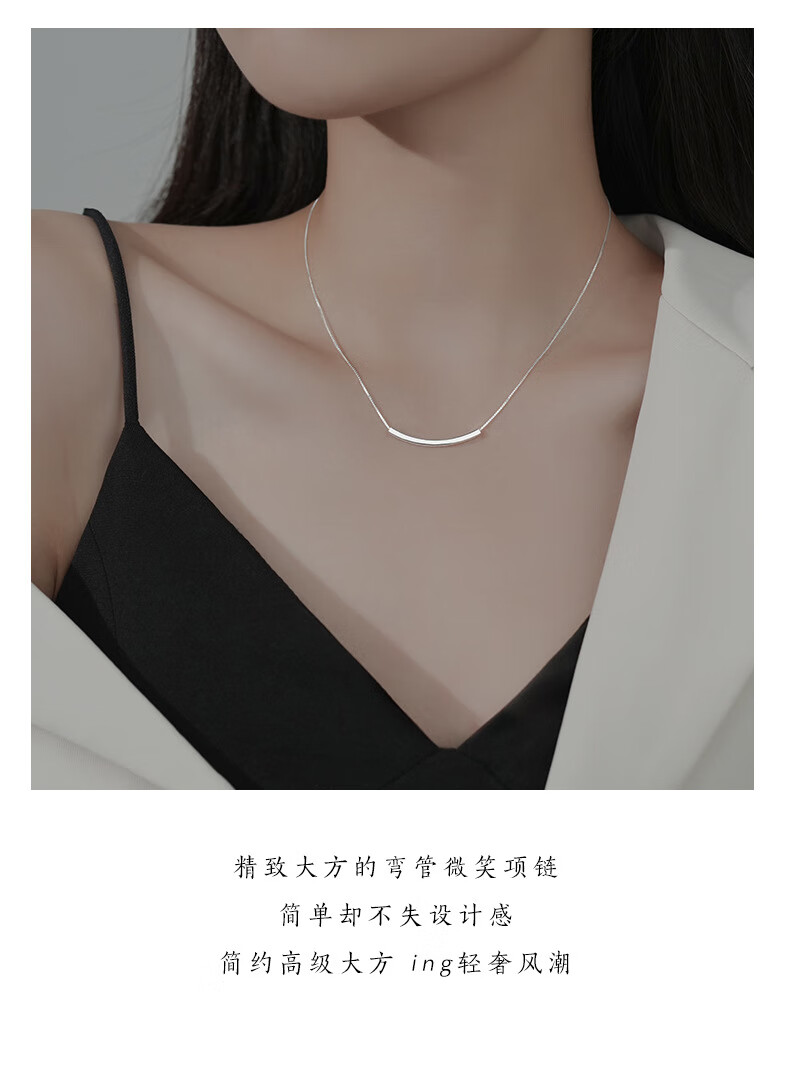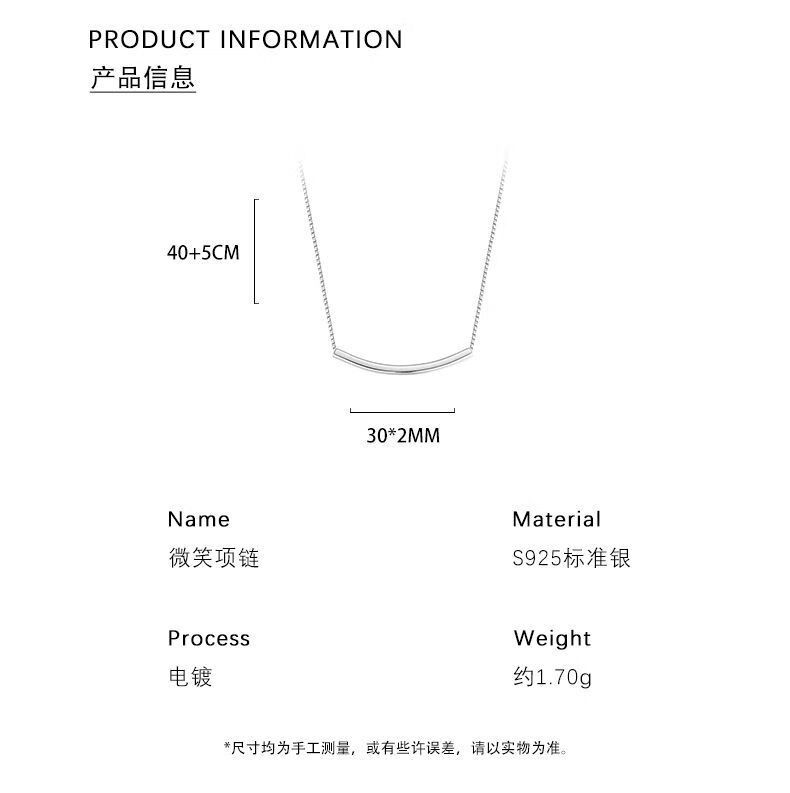 YaoYiZun Smile Sterling Silver Necklace Women's Birthday Gift for Wife Light Luxury Niche High-Level Valentine's Day Gift for Girlfriend S925 Silver Smile Necklace