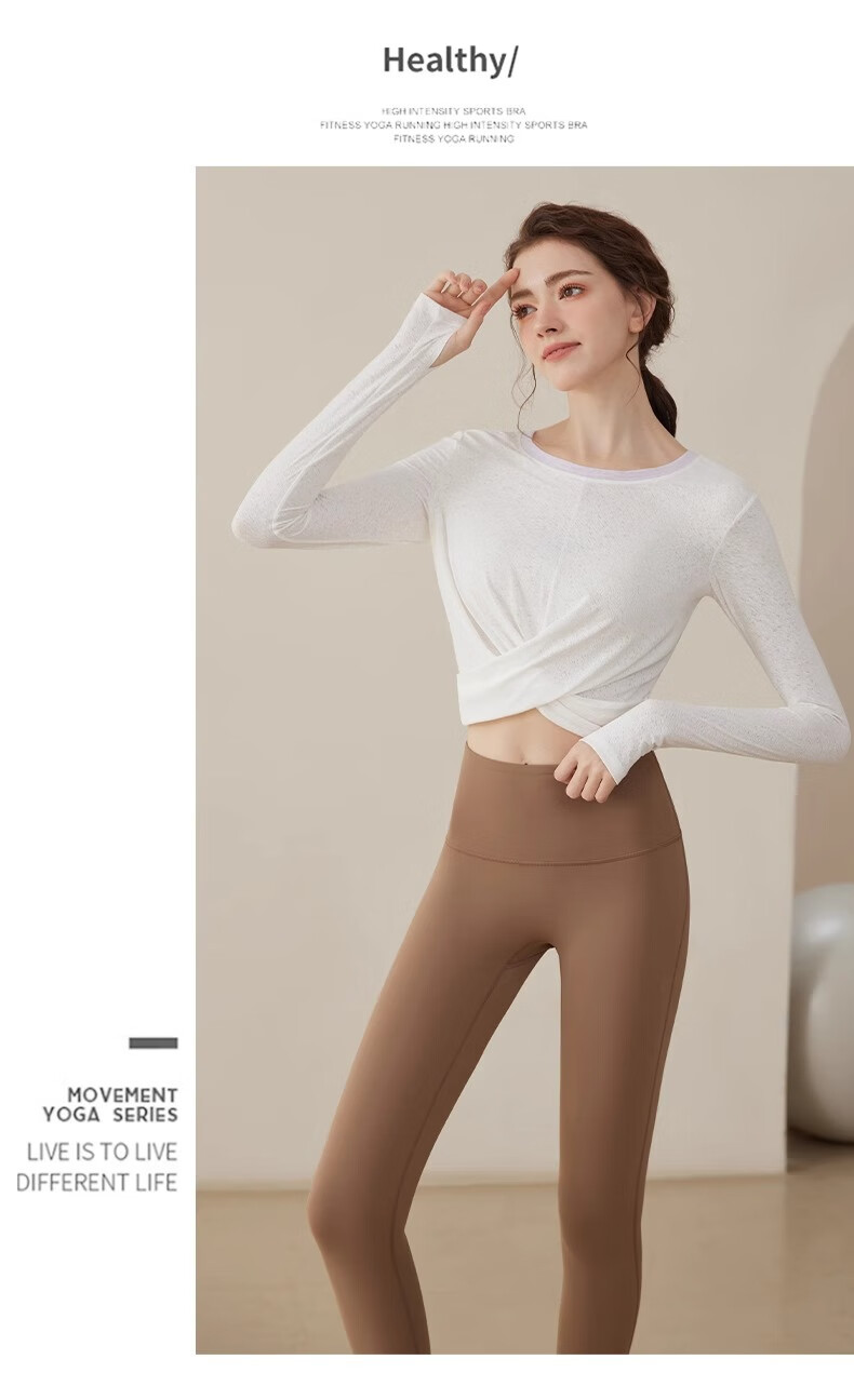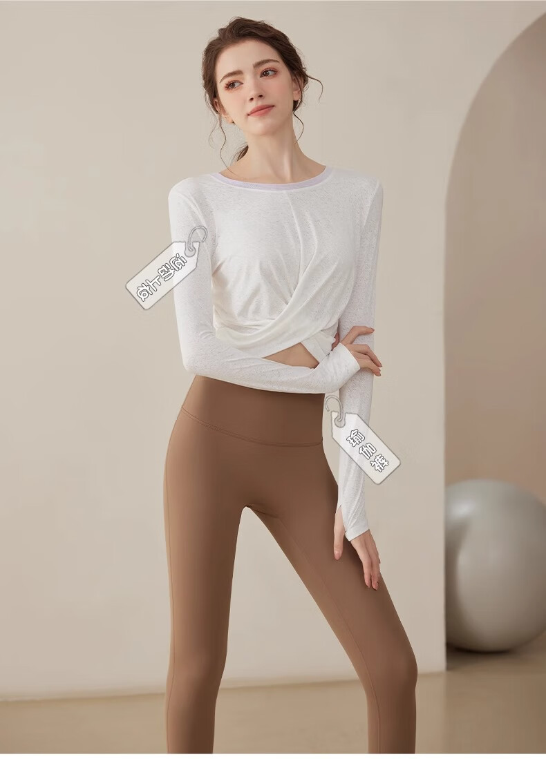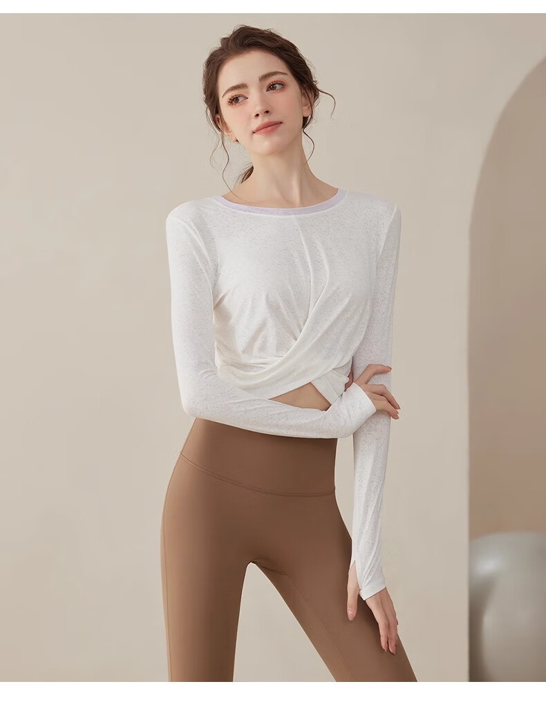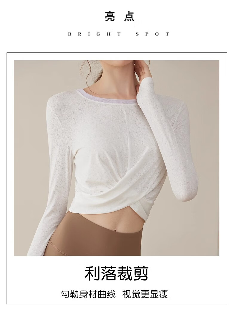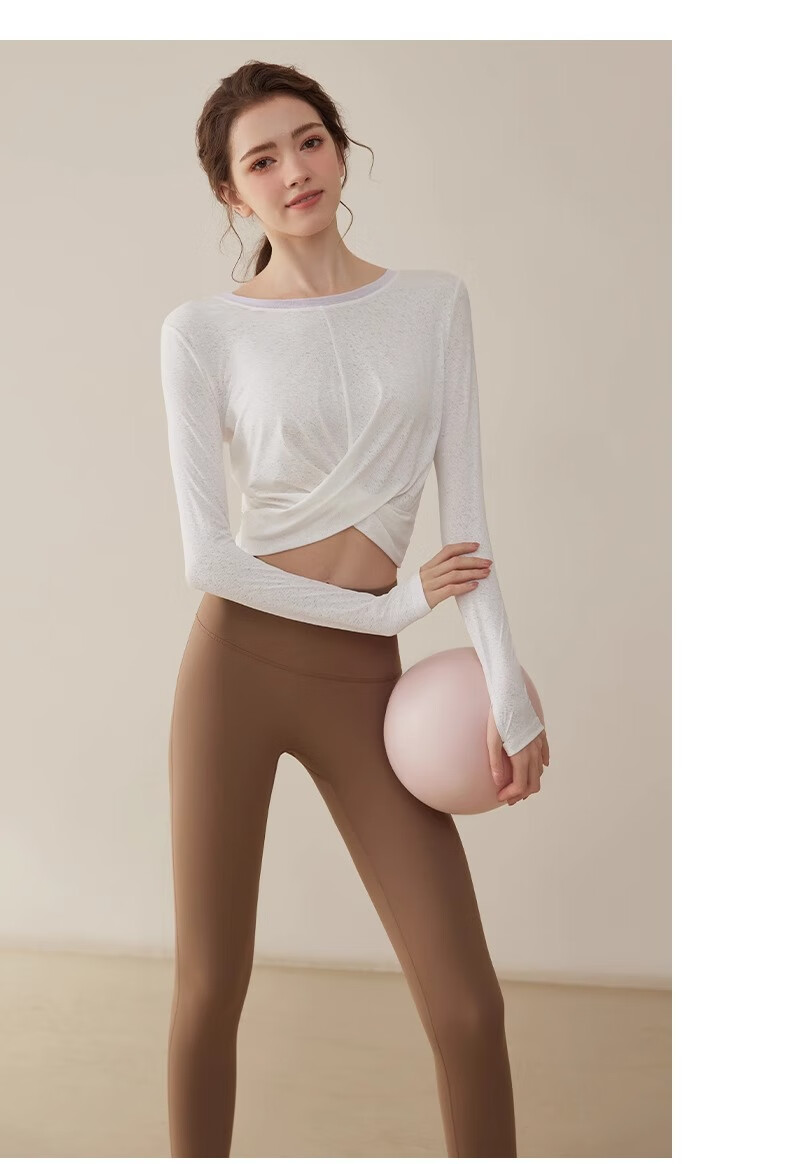 LULUUVTTOH Yoga Wear Suit Women's Fashion Pilates Training Wear Fitness Running Sports Quick-Drying Breathable Long-Sleeved Top Women White Top M