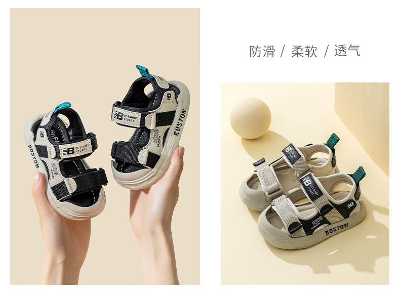 JOYNCLEON baby toe-toe sandals summer new boys toddler soft-soled functional shoes non-slip girls beach sandals black inner length 15cm