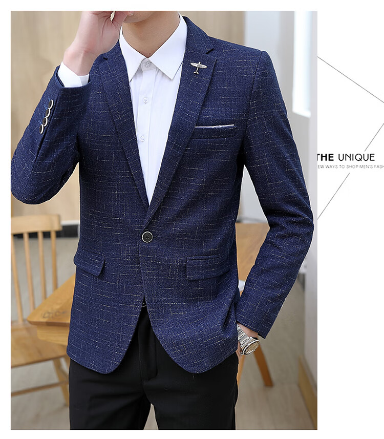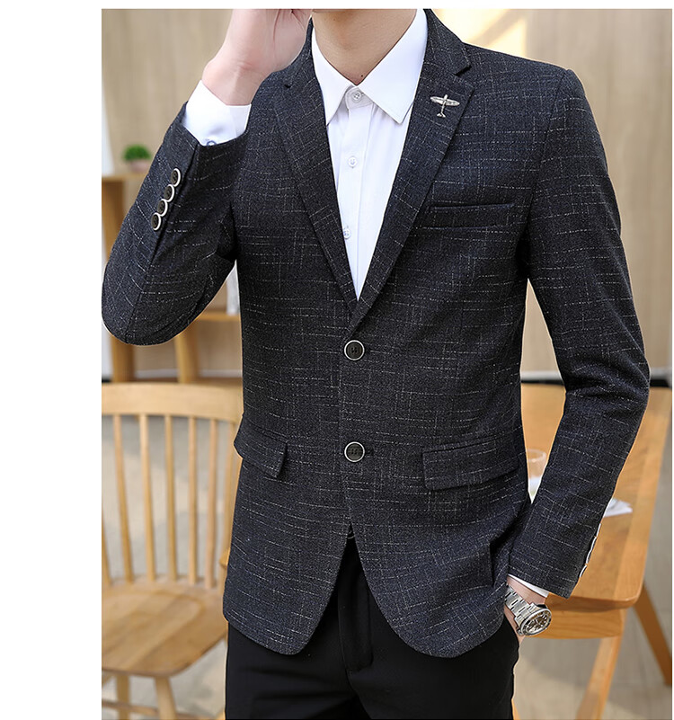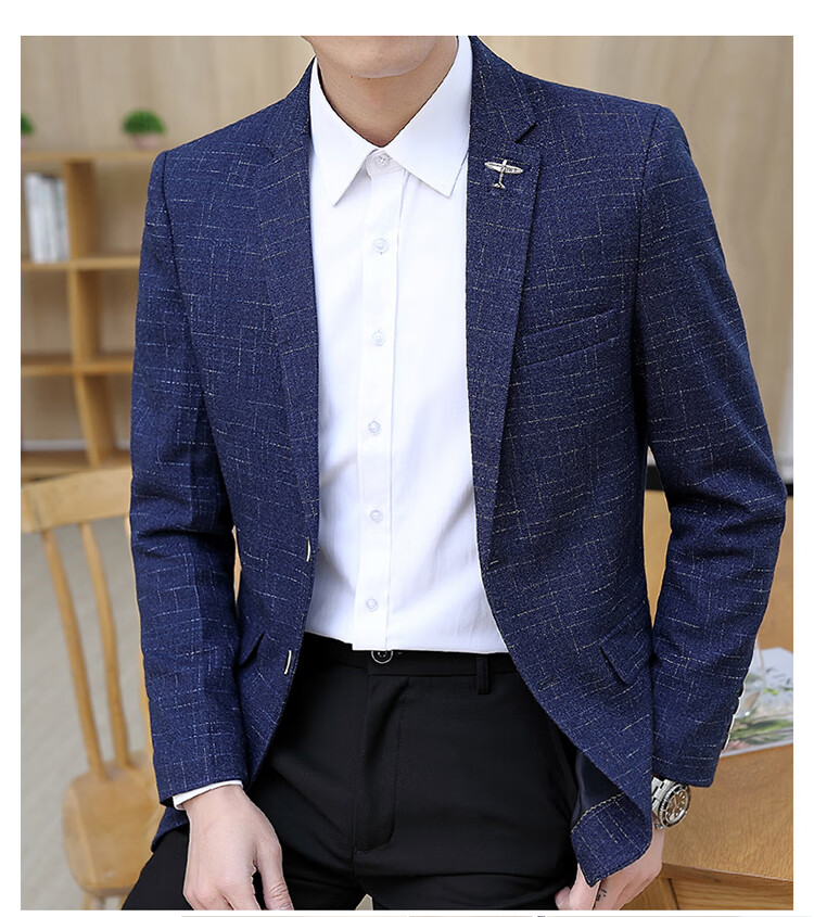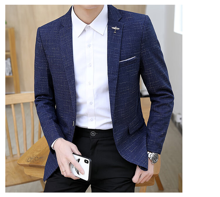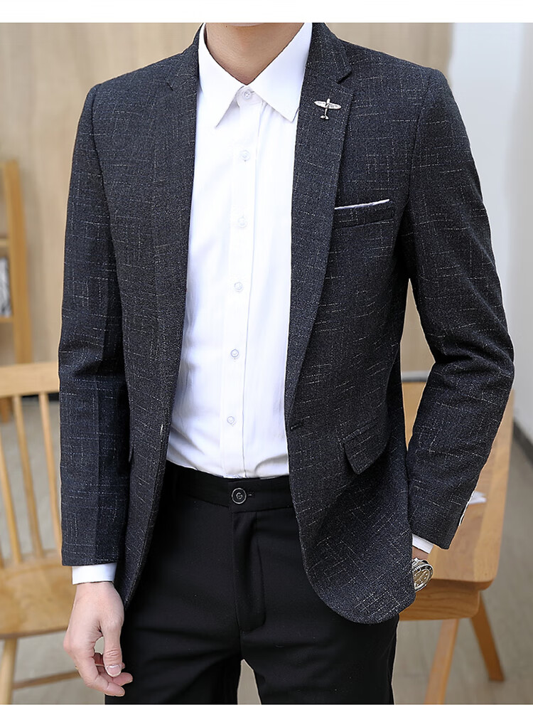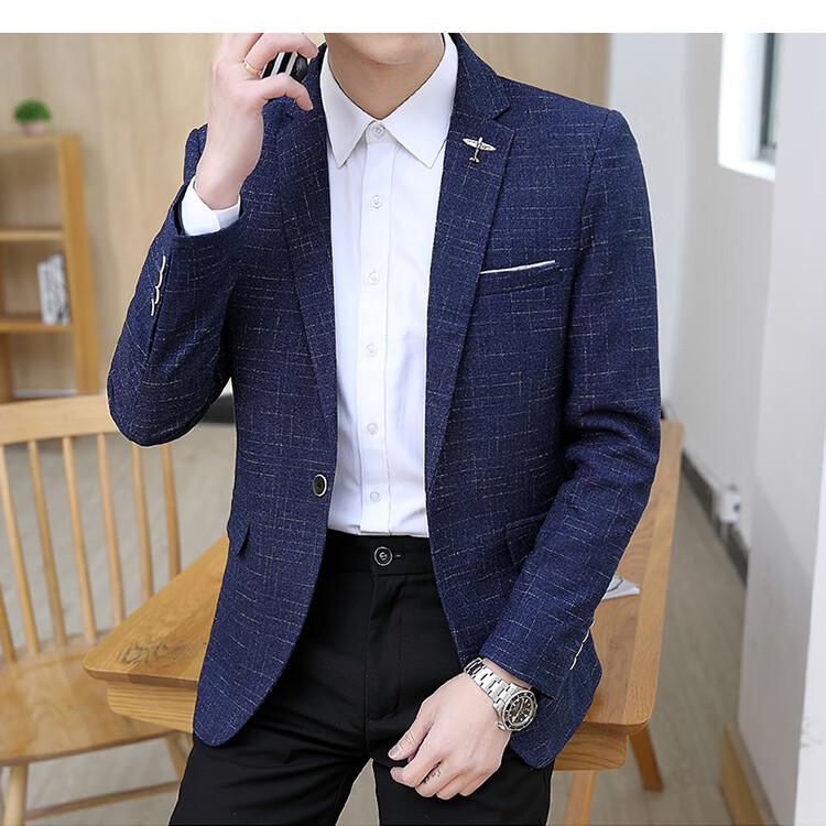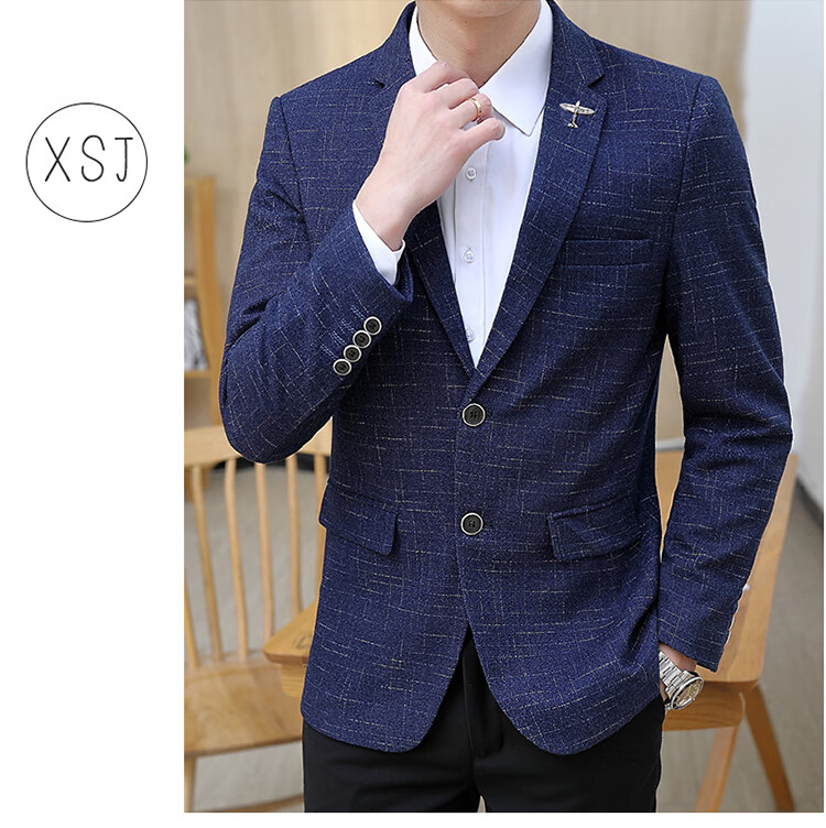 ROMON Small Suit Men's Autumn and Winter Korean Slim Jacket High Quality Casual Suit Top Handsome and Trendy Spring and Autumn Dark Pattern 1817 Navy (Two Buttons) 3XL Suitable for 146-155 Jin Jin equals 0.5 kg