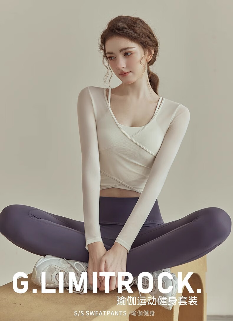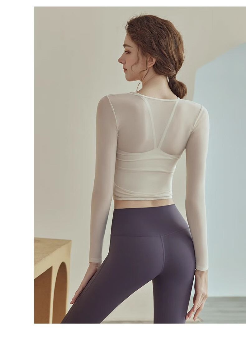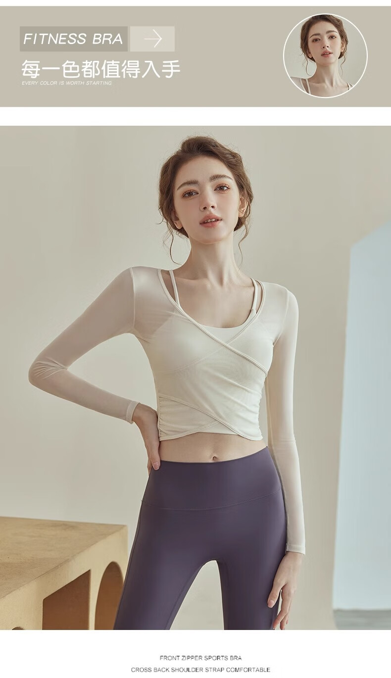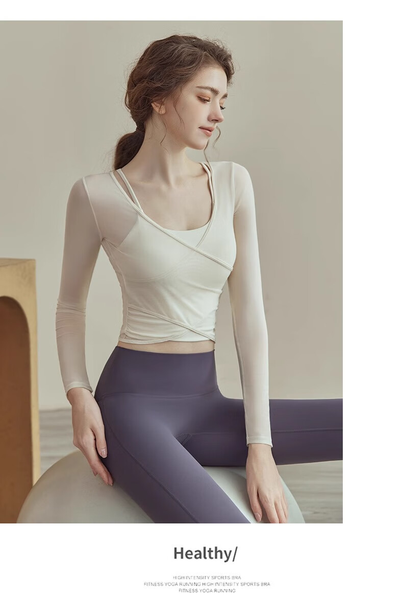 LULUUVTTOH Yoga Wear Women's Suit Summer New Sexy Tight Pilates Training Wear Fitness Sports Long Sleeve Top Off-White Top Detachable S