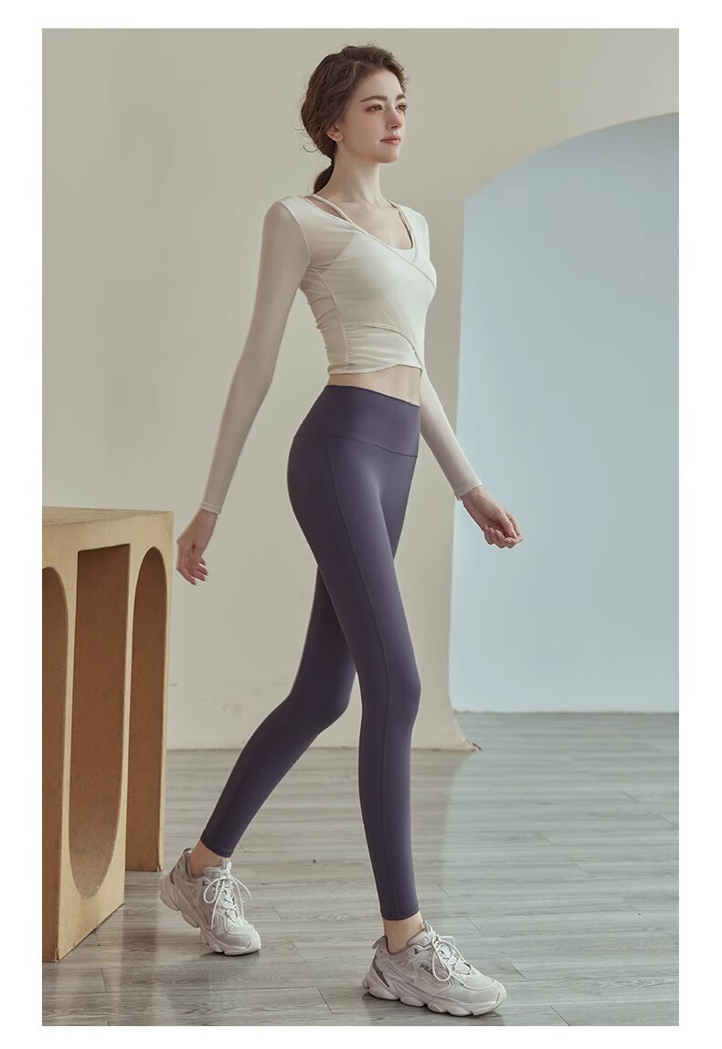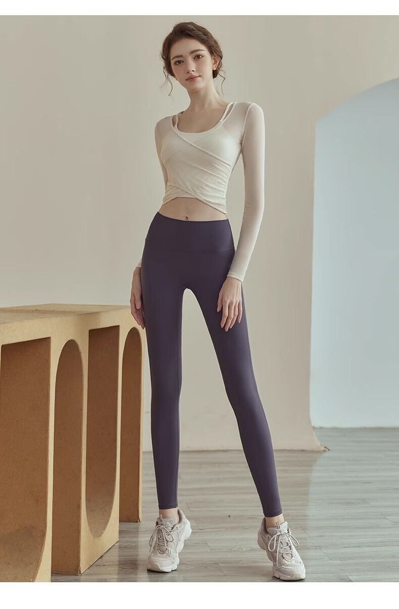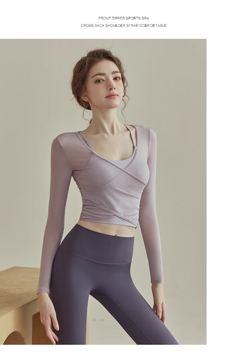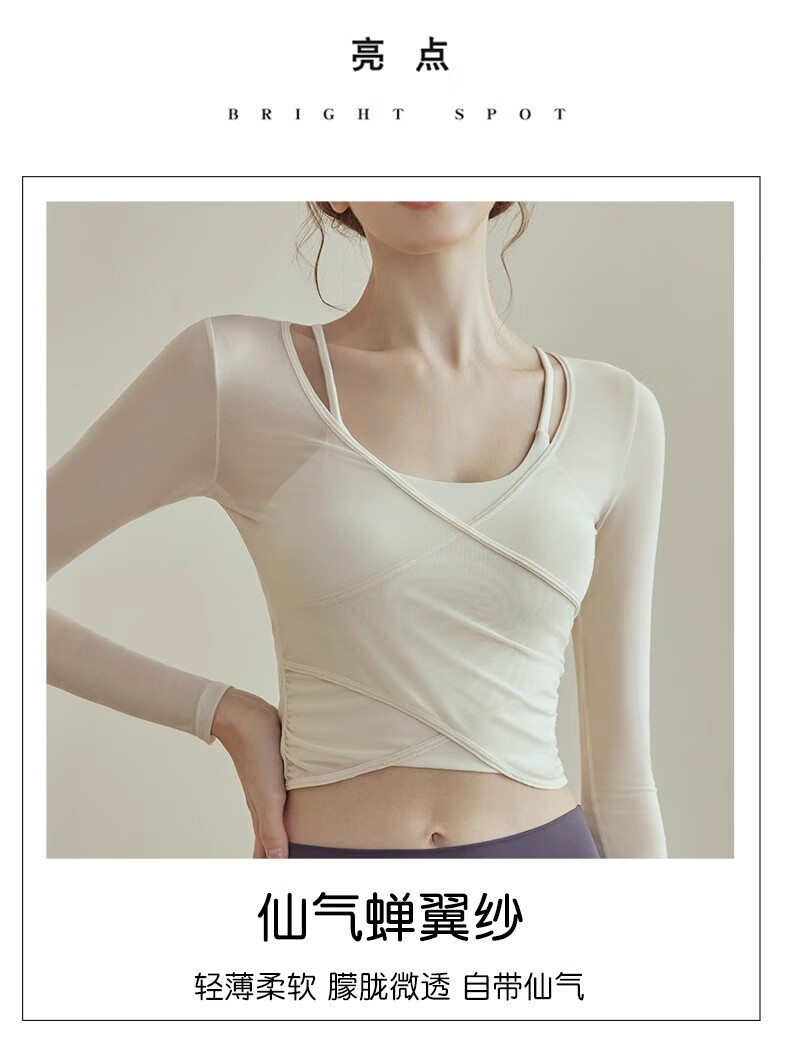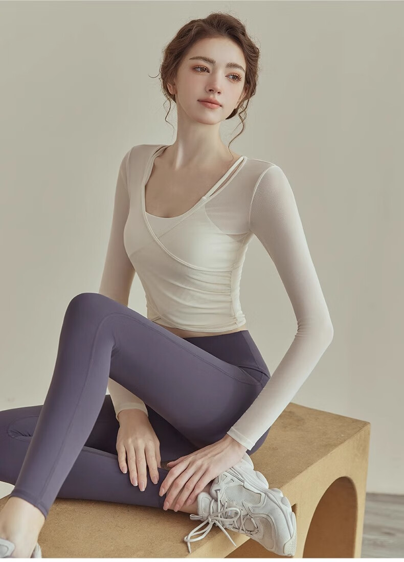 LULUUVTTOH Yoga Wear Women's Suit Summer New Sexy Tight Pilates Training Wear Fitness Sports Long Sleeve Top Off-White Top Detachable S