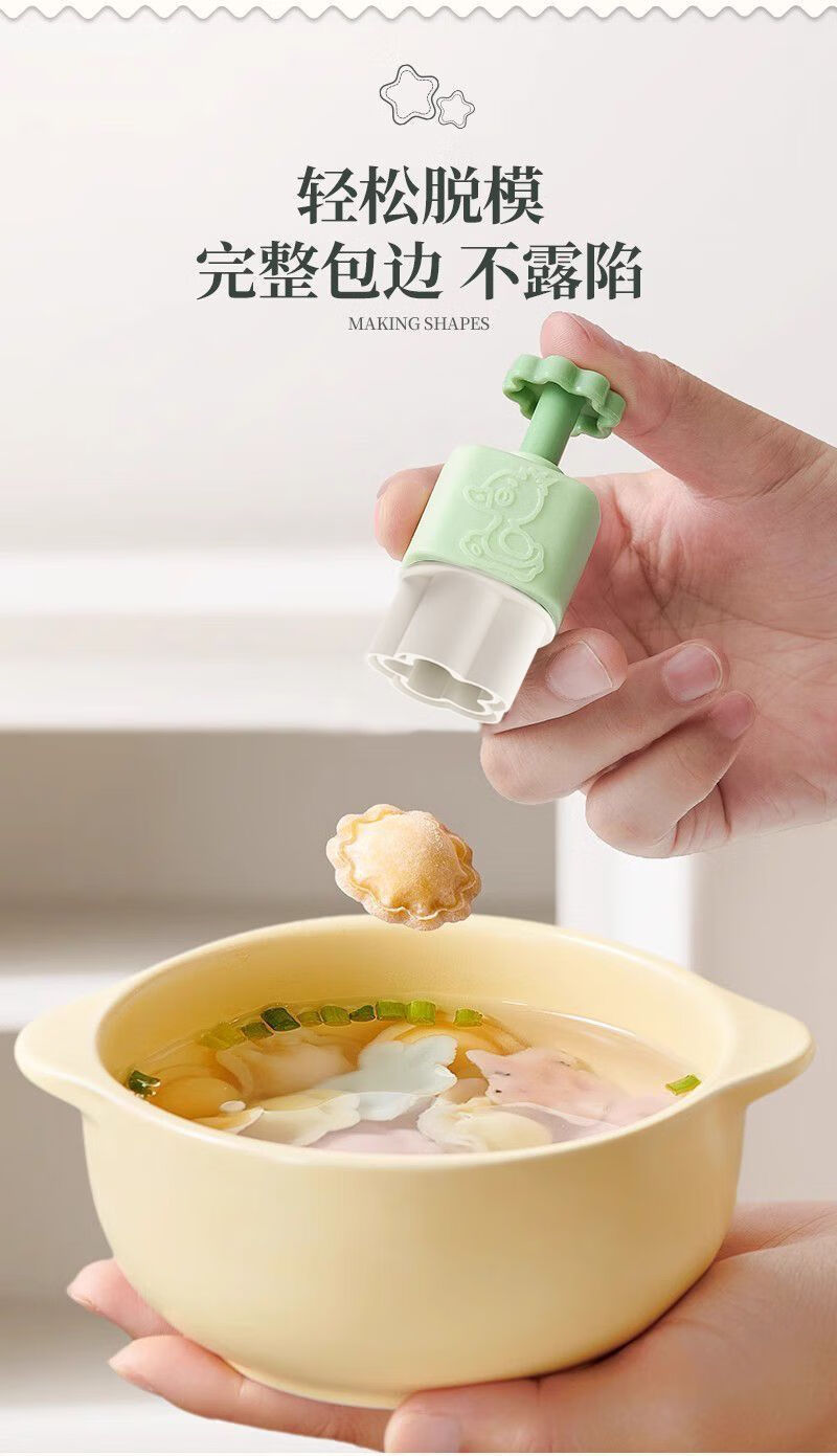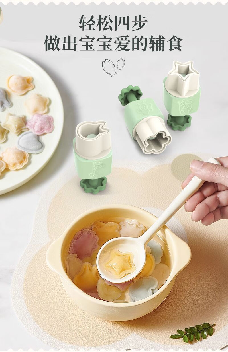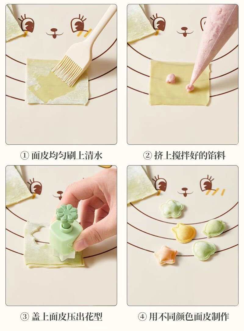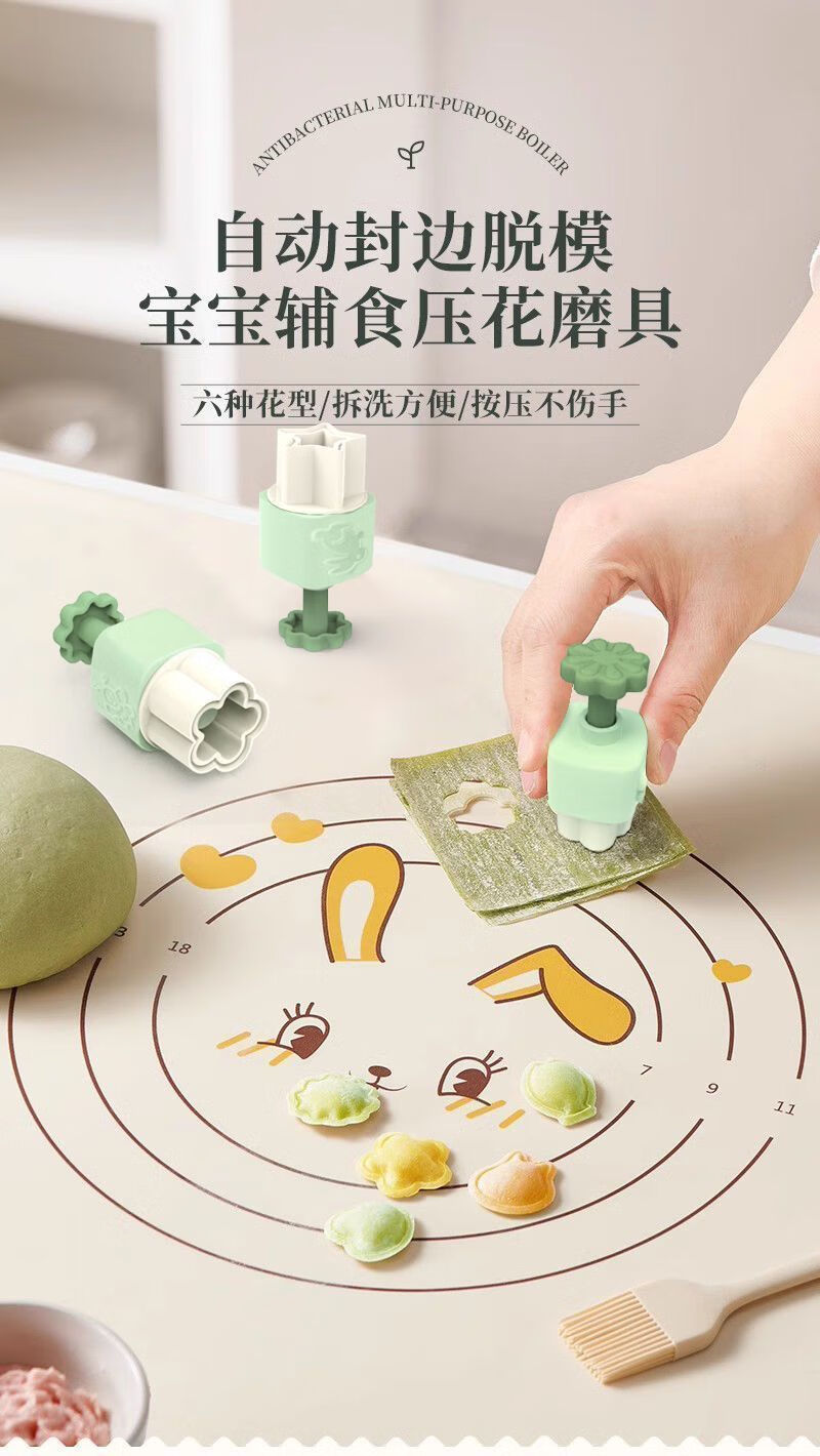 Yuexin Ke Food Grade Food Complementary Mold Automatic Edge Sealing Baby Butterfly Noodle Won Stew Household Embossing Grinding Tool One-click Demold Upgraded Automatic Edge Sealing Model Fish + Rabbit + Heart + Flower + Star Wonton Mold + 10 Decorating Bags + Oil Brush