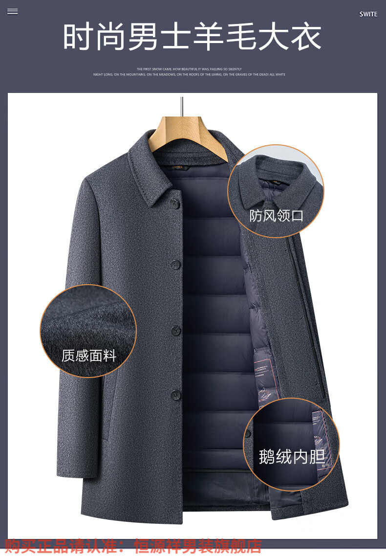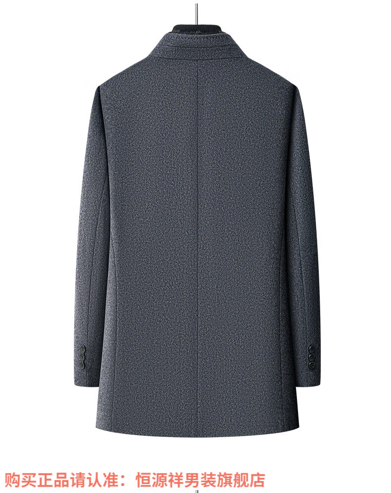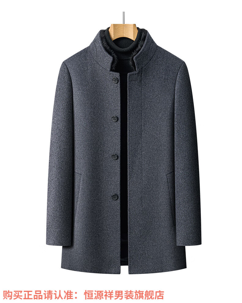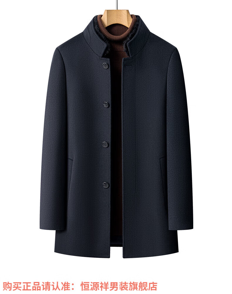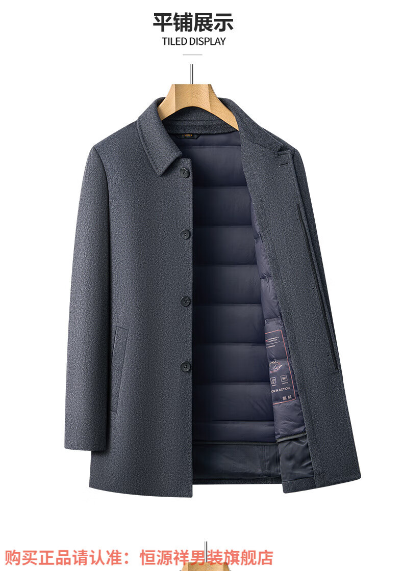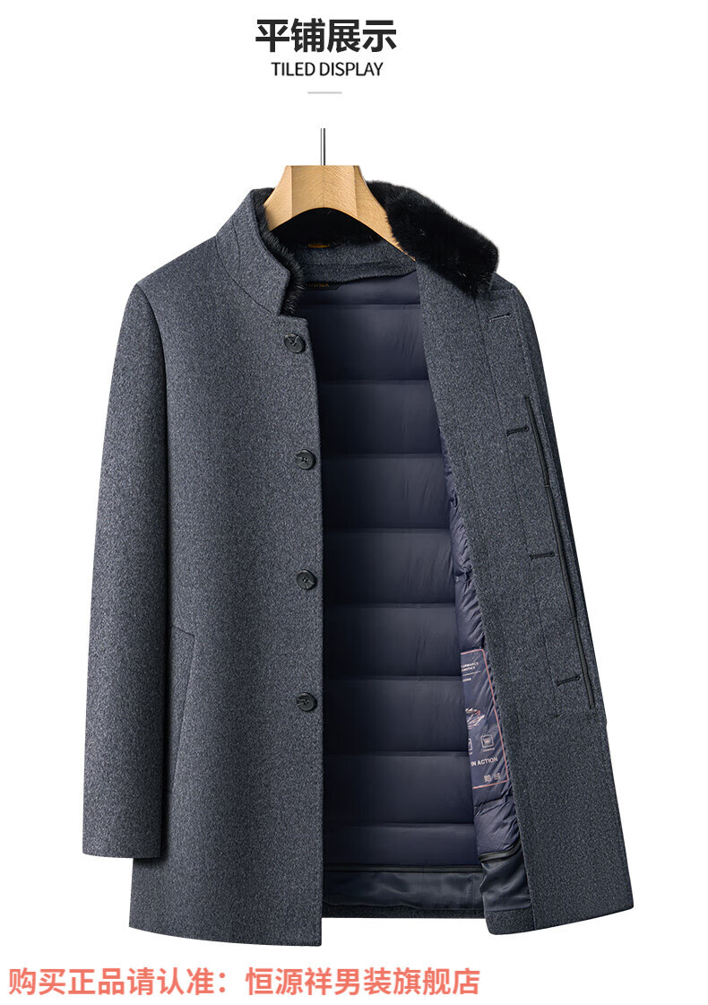 Hengyuanxiang high-end mulberry silk cashmere coat for men, medium-length woolen woolen coat, middle-aged goose down lining, thickened and warm, stand-up collar XMR8827 upper green, goose down lining M 170