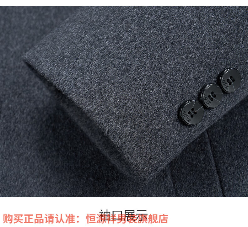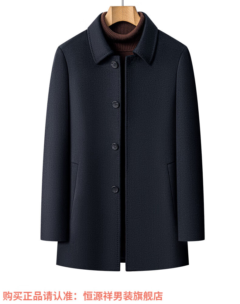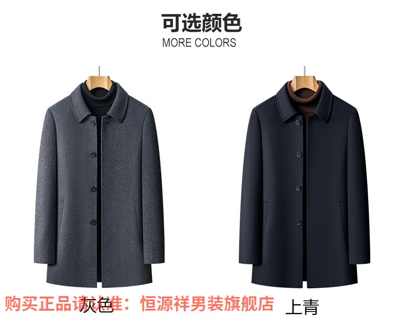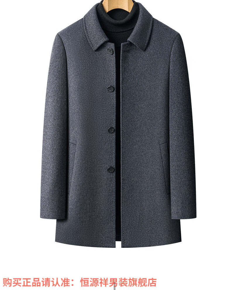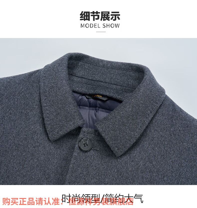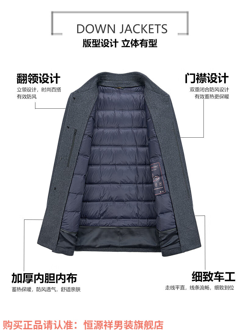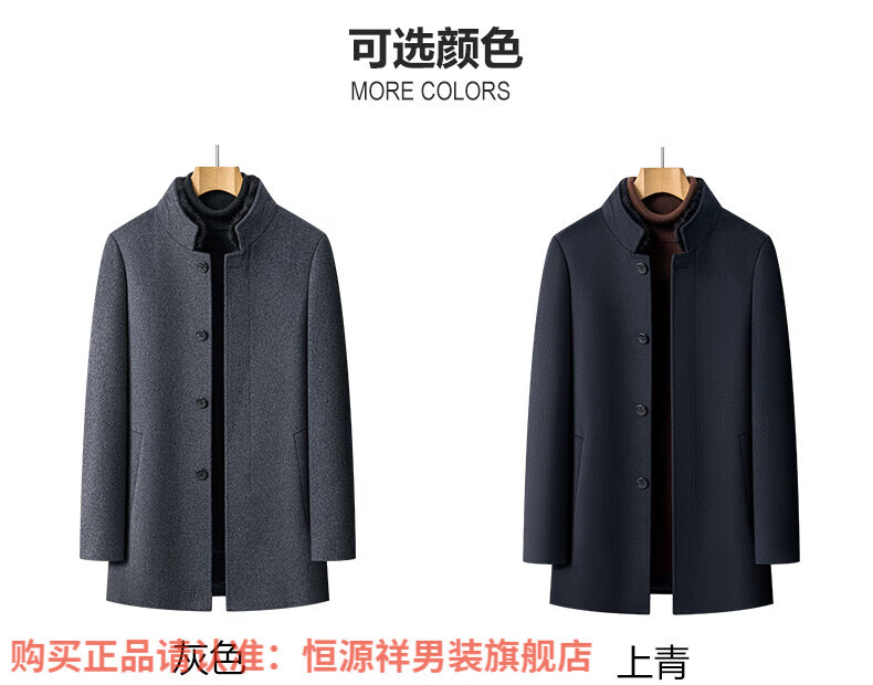Hengyuanxiang high-end mulberry silk cashmere coat for men, medium-length woolen woolen coat, middle-aged goose down lining, thickened and warm, stand-up collar XMR8827 upper green, goose down lining M 170