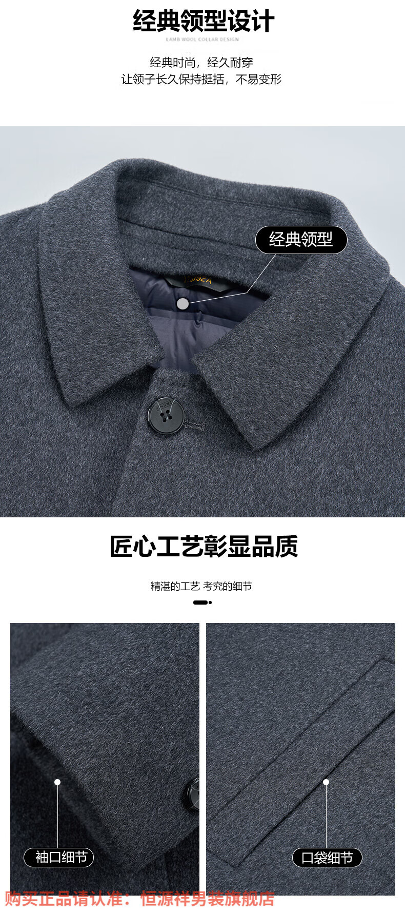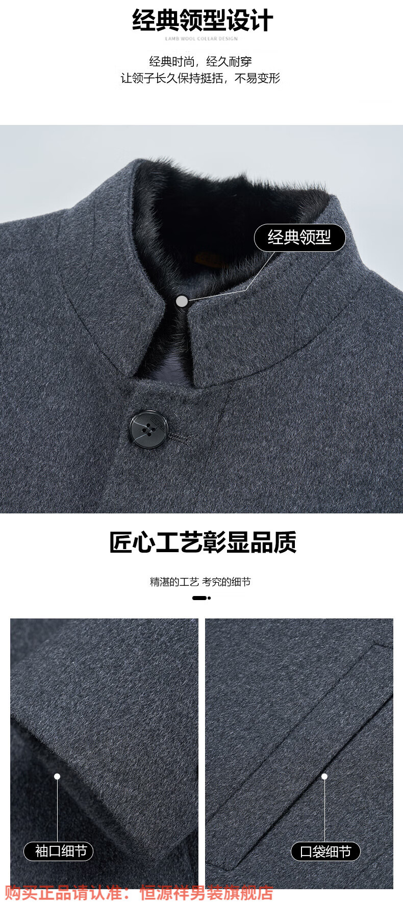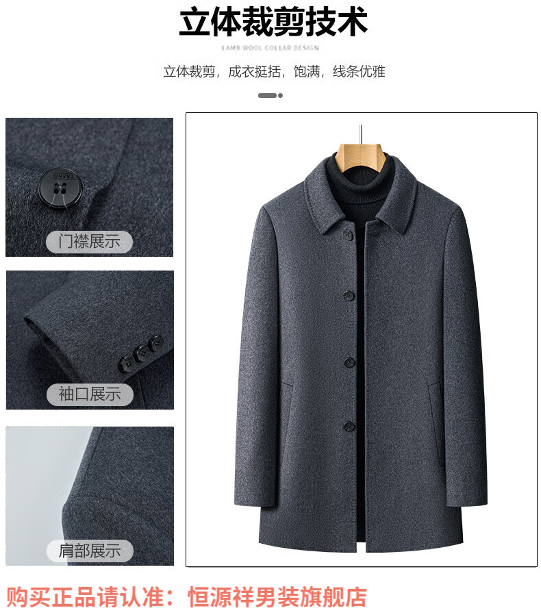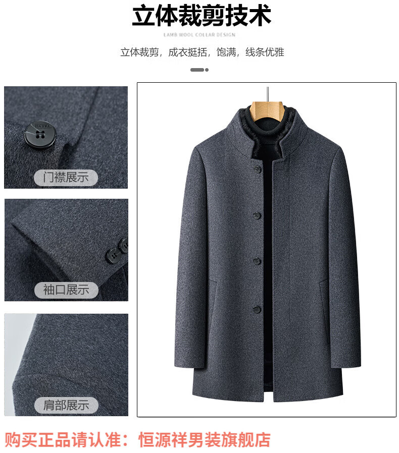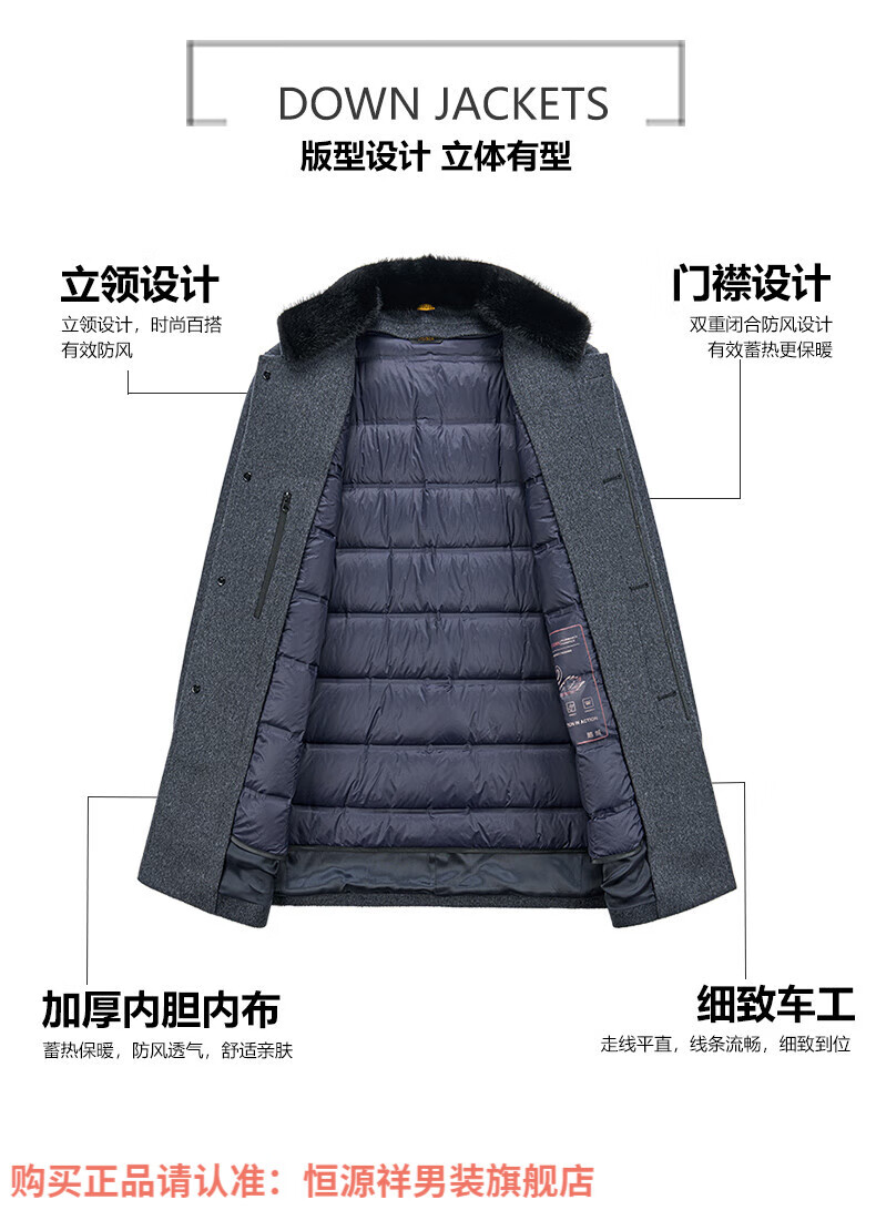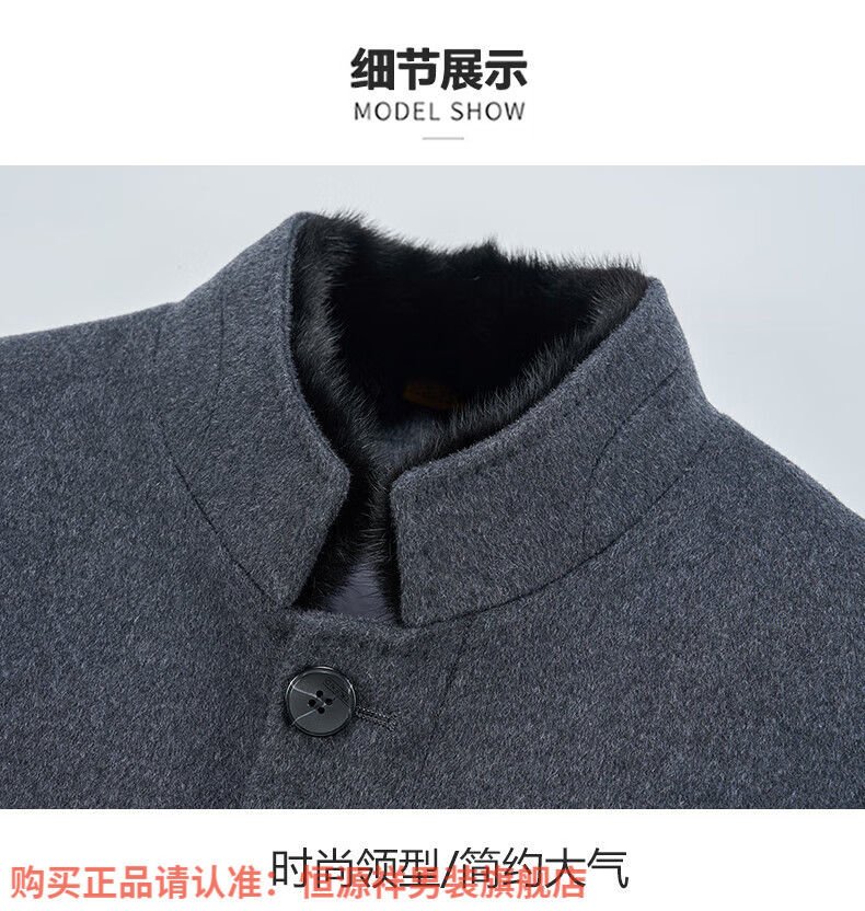 Hengyuanxiang high-end mulberry silk cashmere coat for men, medium-length woolen woolen coat, middle-aged goose down lining, thickened and warm, stand-up collar XMR8827 upper green, goose down lining M 170