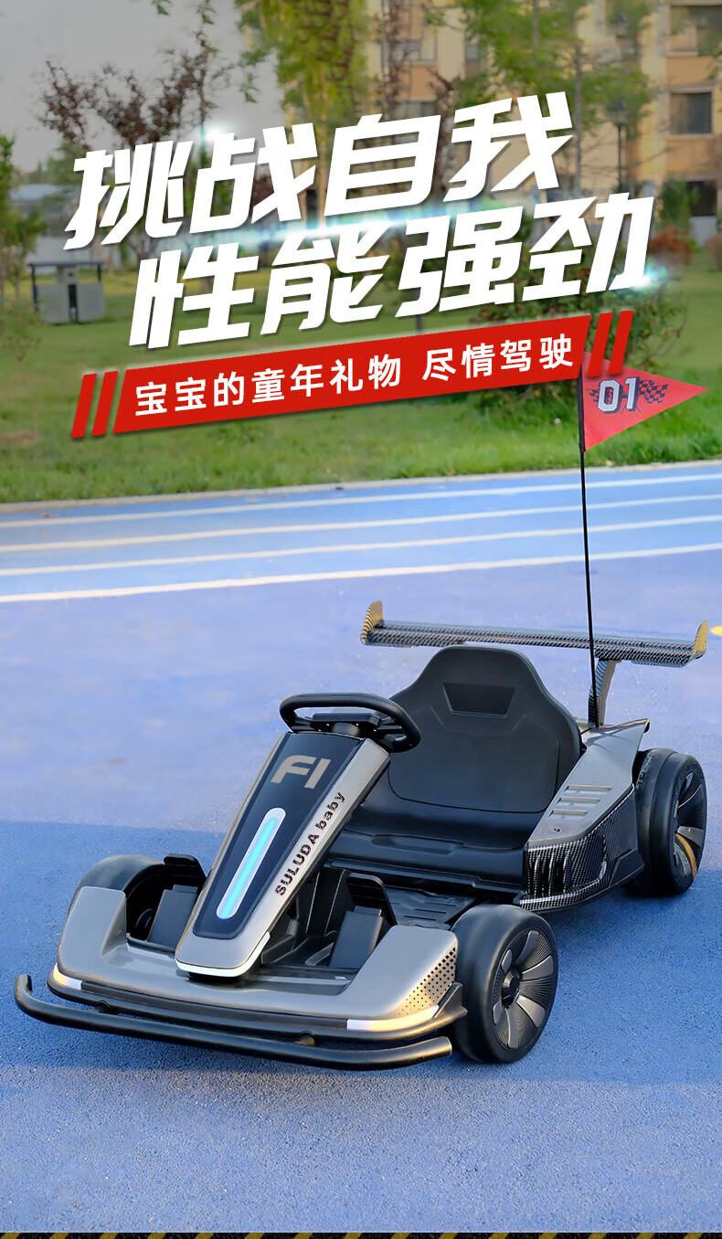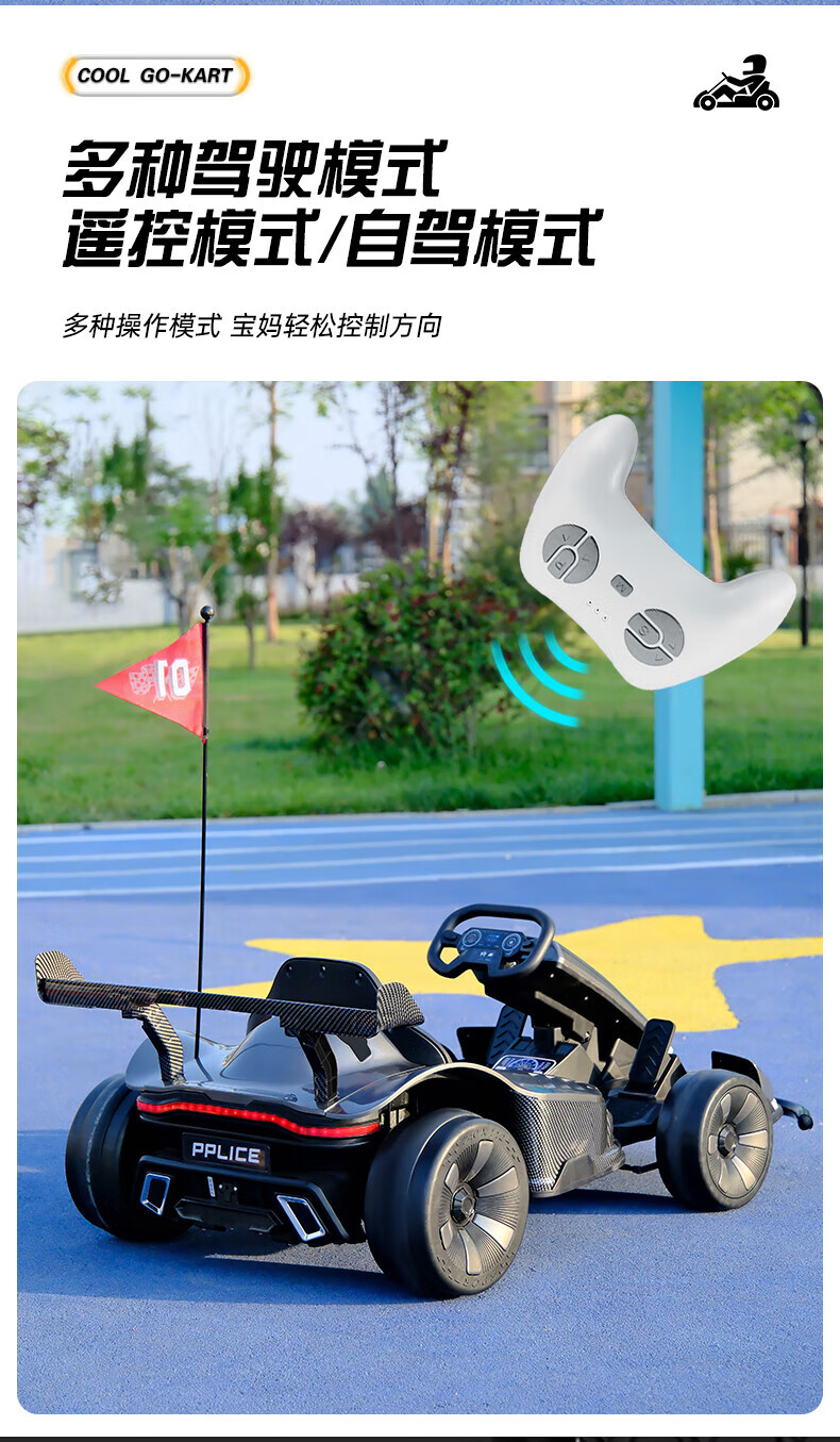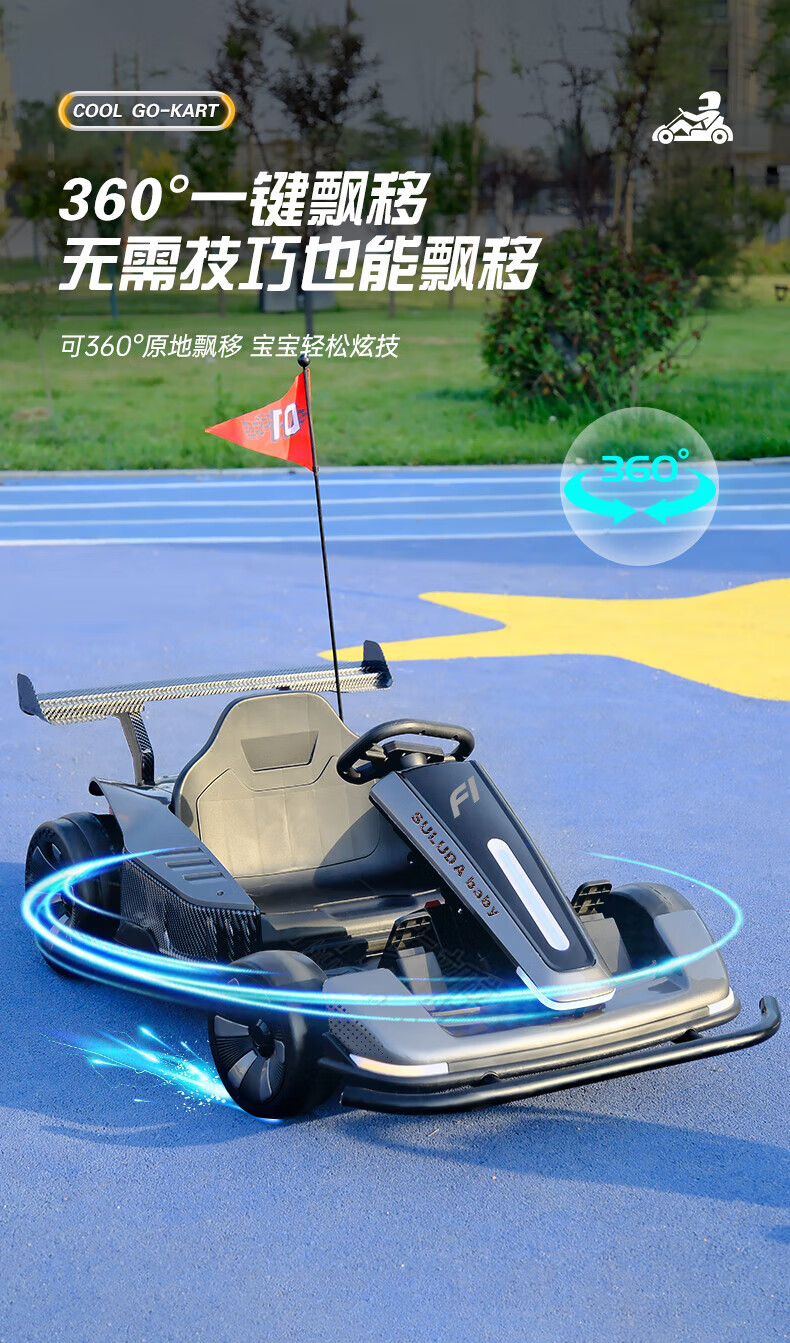 Aibei'ao children's kart drift parent-child double electric car can sit on four wheels for adults, men and women, babies and children over 10 years old, roasted ash 24V battery + elegant bass motor