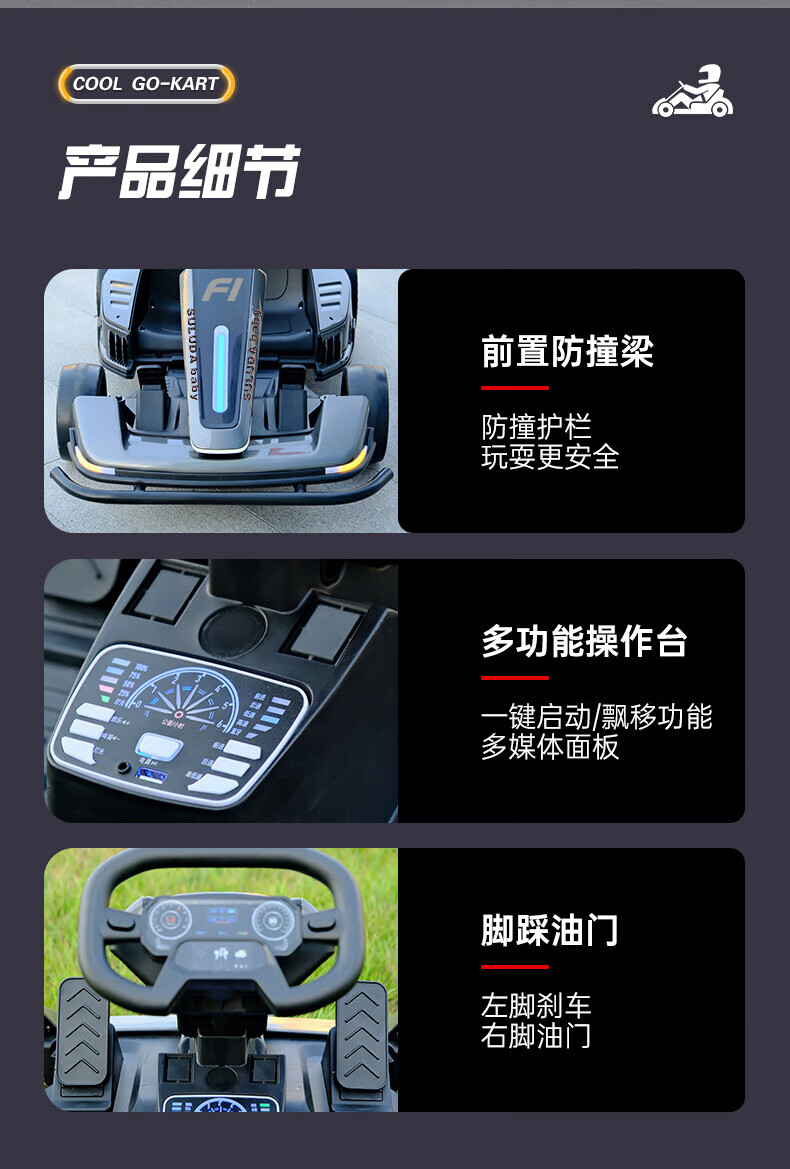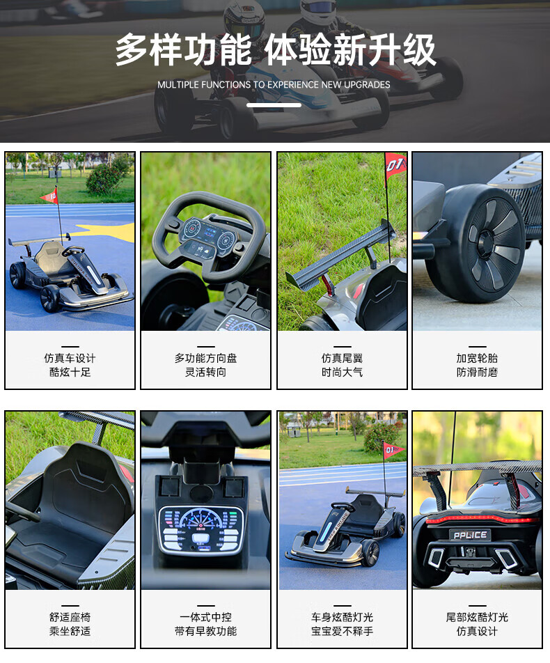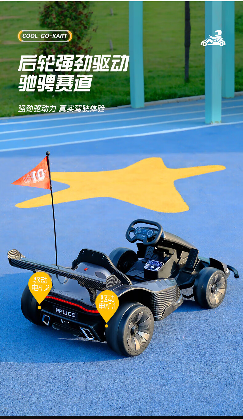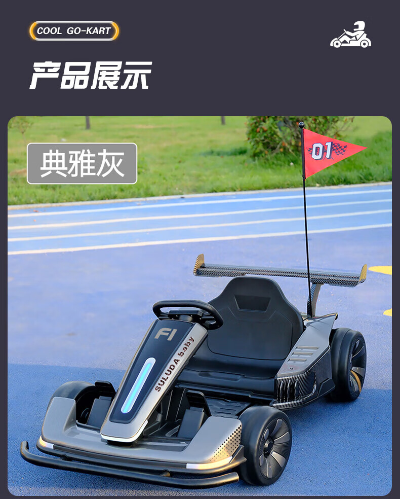 Aibei'ao children's kart drift parent-child double electric car can sit on four wheels for adults, men and women, babies and children over 10 years old, roasted ash 24V battery + elegant bass motor