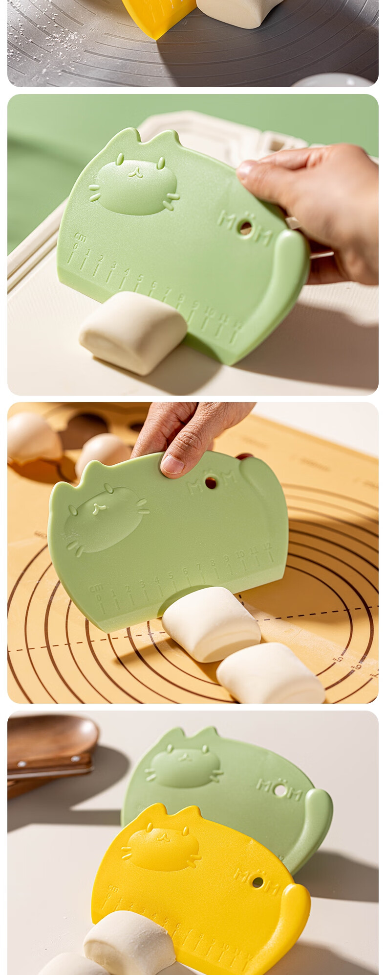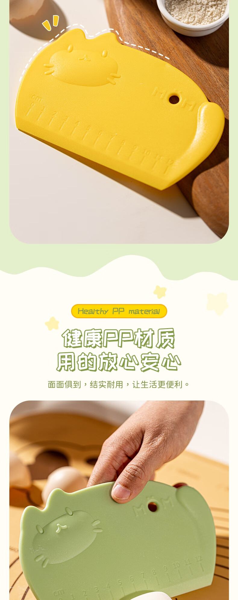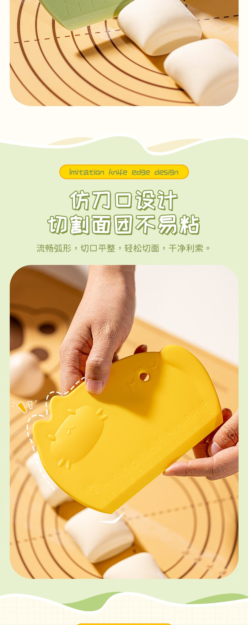 Detif Pasta Slicing Knife Food Grade Silicone Scraper Baking Special Scraper Tool Plastic Panel Cutting Rice Roll Pasta Mat 2 Pack Huobao Green-Food Grade PP Material